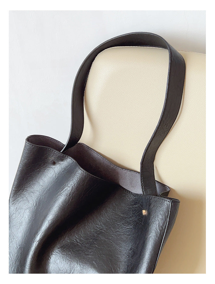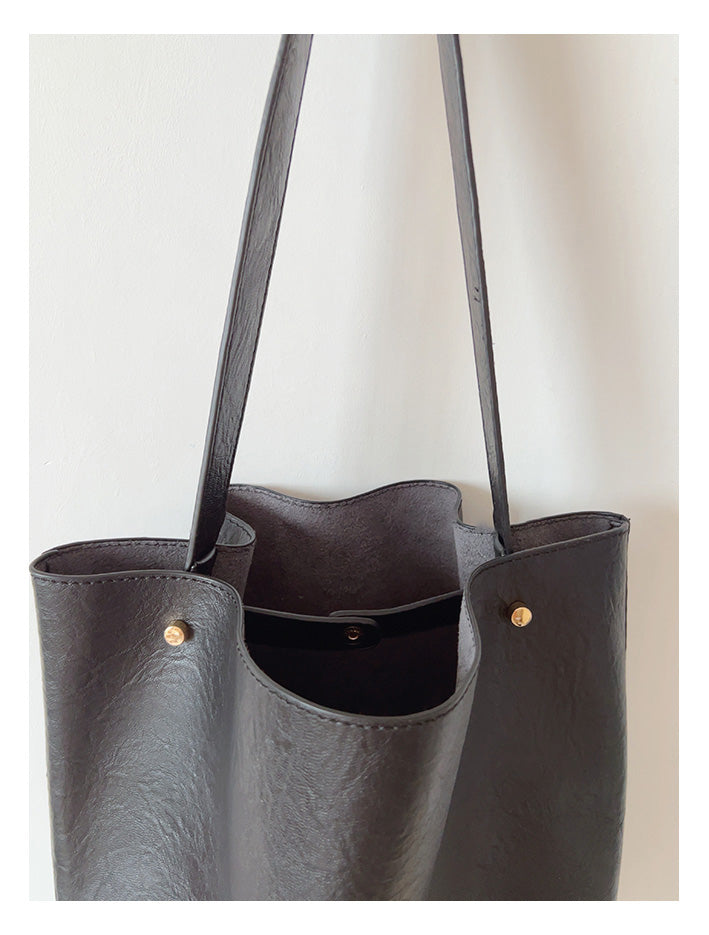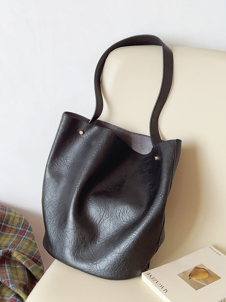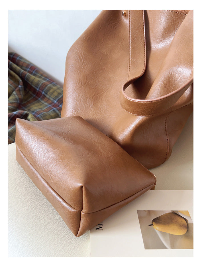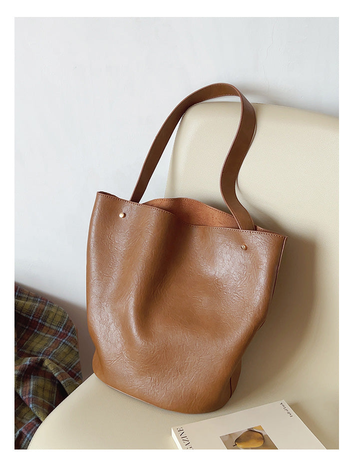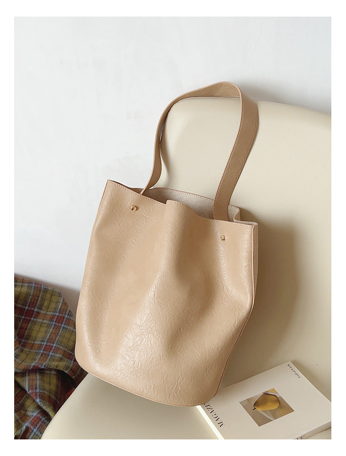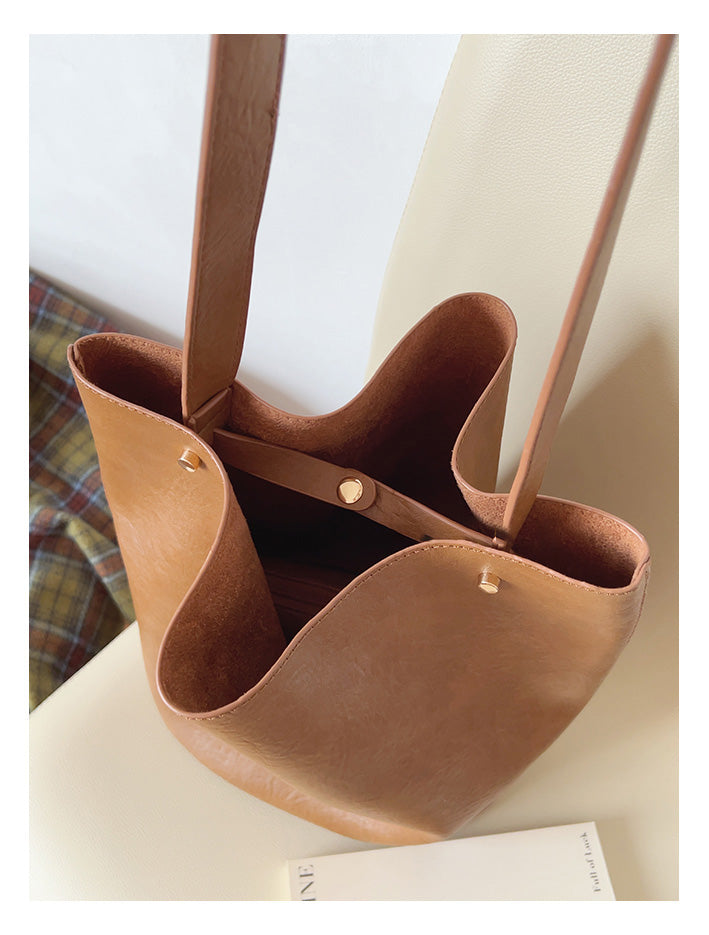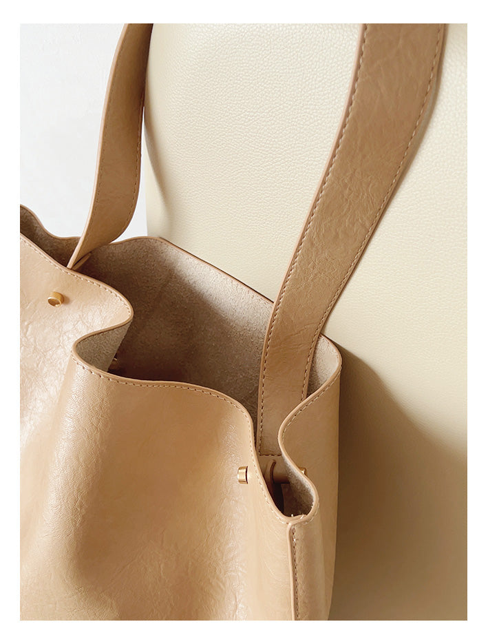 Chic Bucket Leather Bag with Shoulder Strap and Inner Pouch, Women's Everyday Handbag