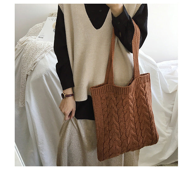 Cotton Knitted Shoulder Bag, Women's Fashion Bag