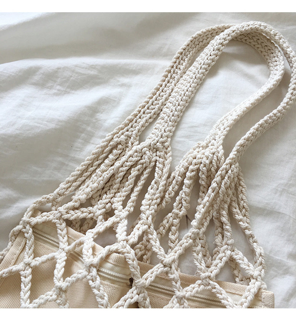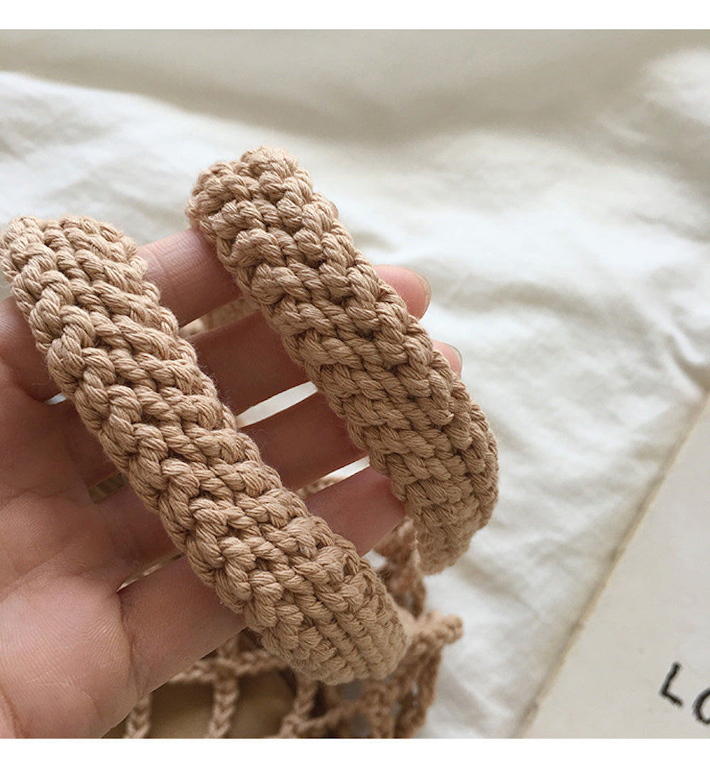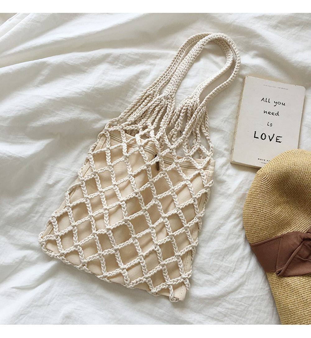 Crochet Medium Cotton Knitted Top Handle Bag with Fishnet Design