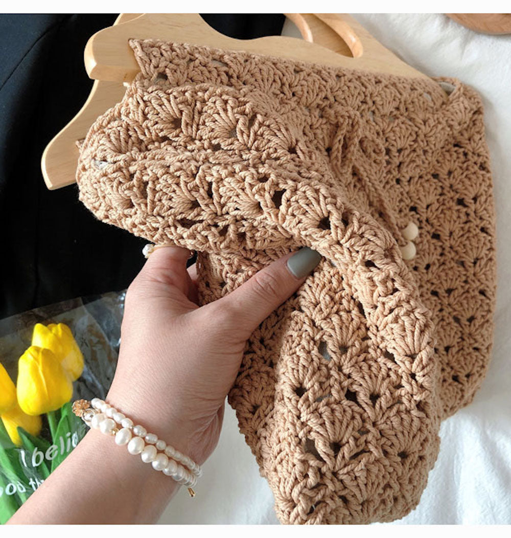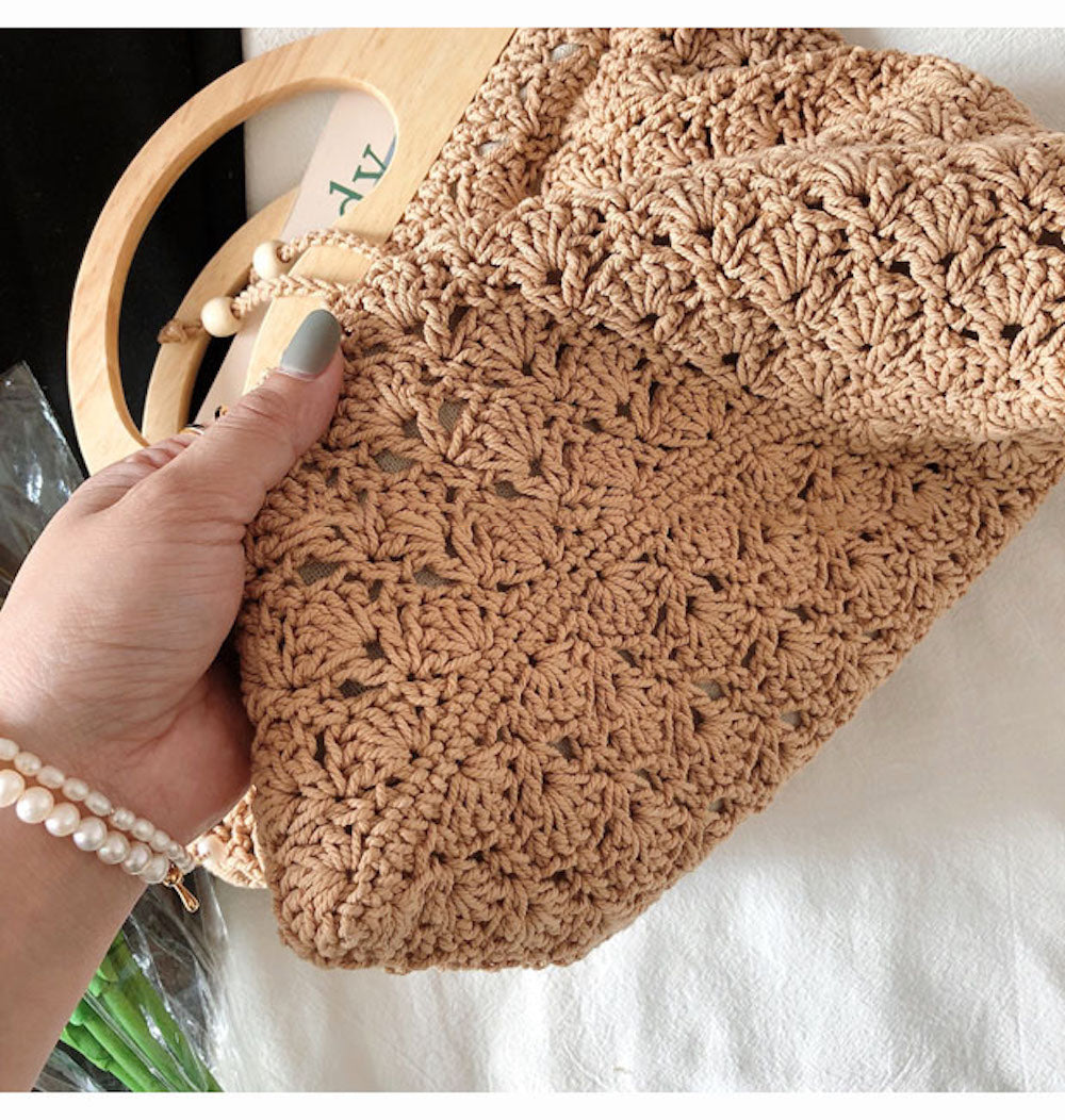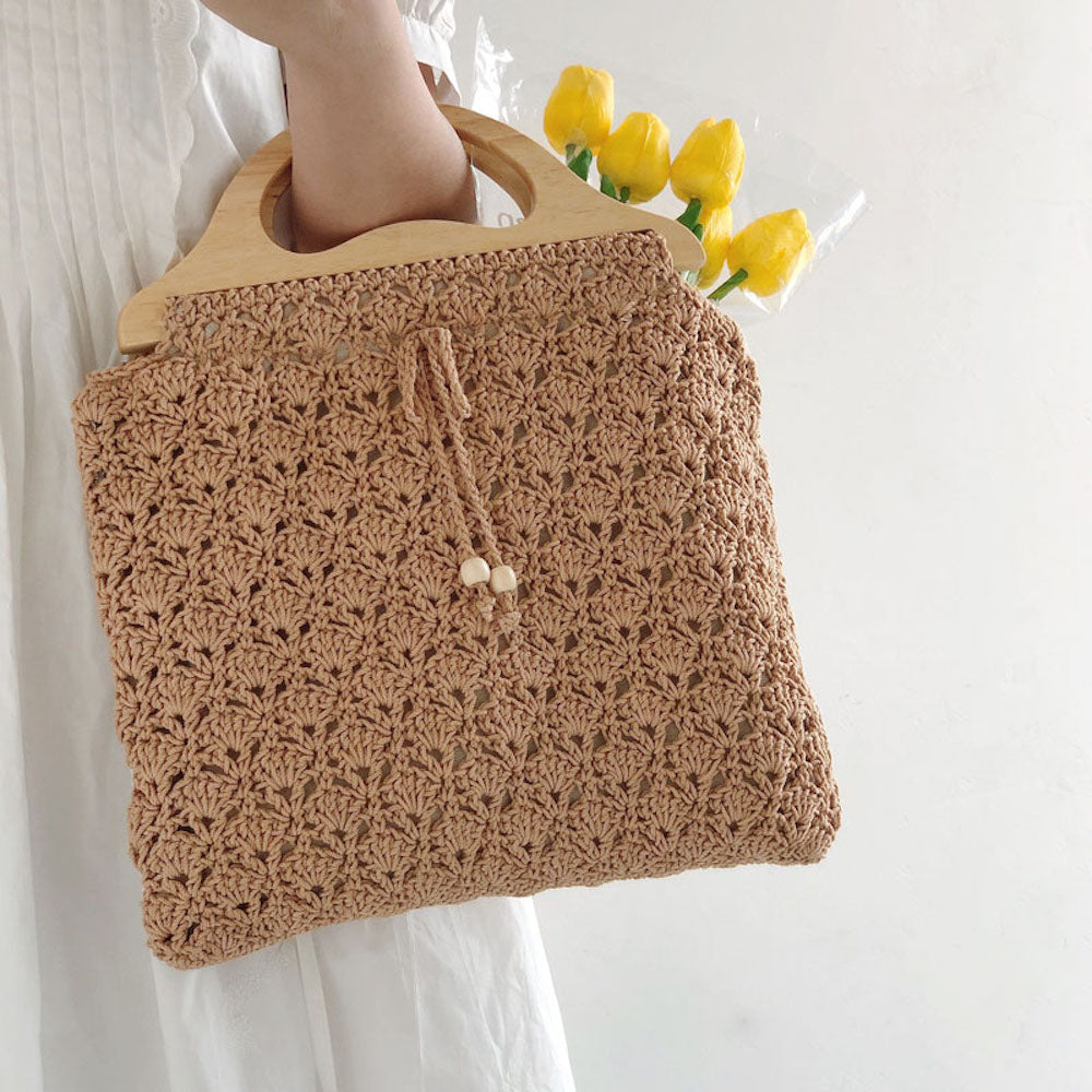 Crochet Harajuku Style Cotton Knitted Top Handle Bag, Hand Woven, Fashion Casual Bag, Gift for Her, Women's Bag