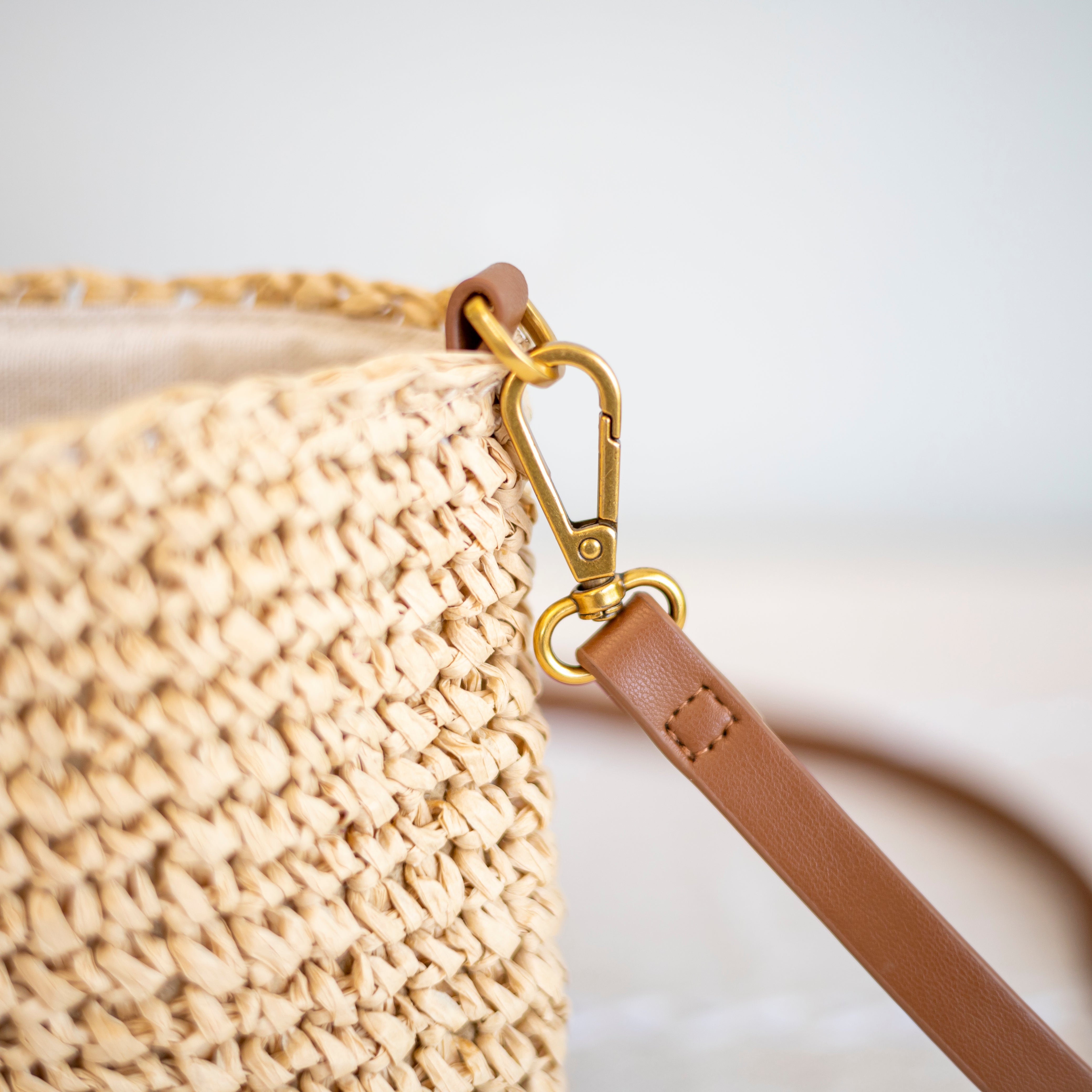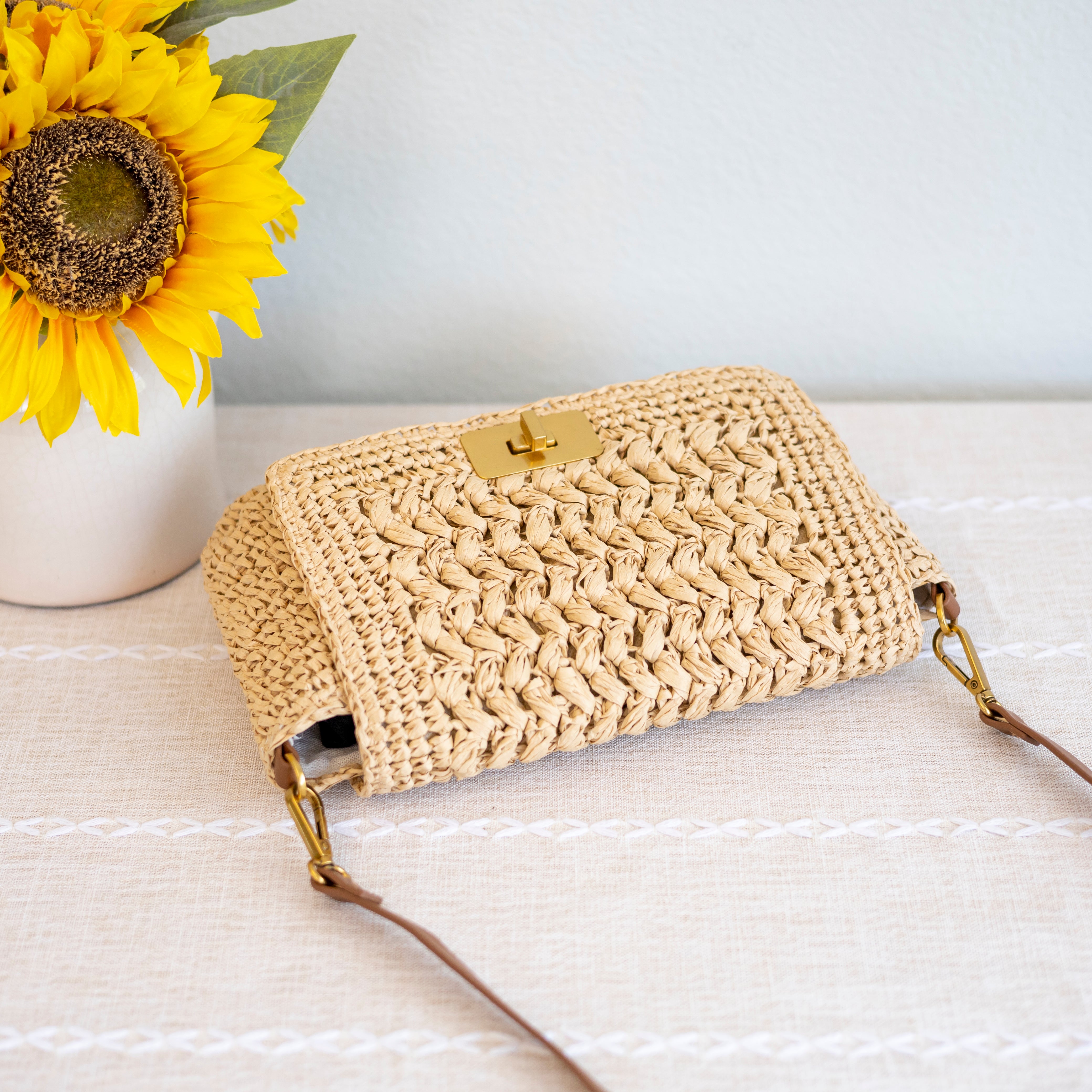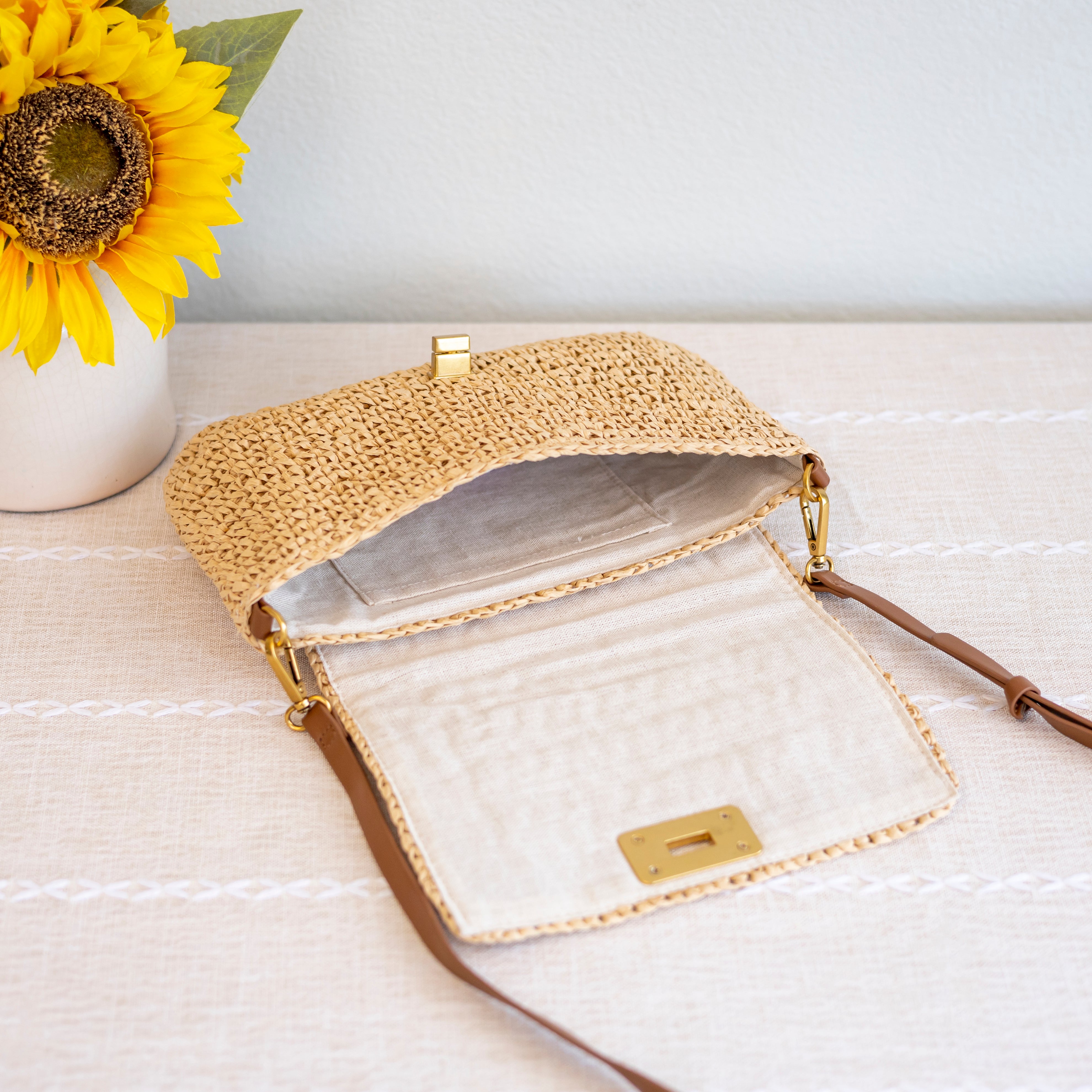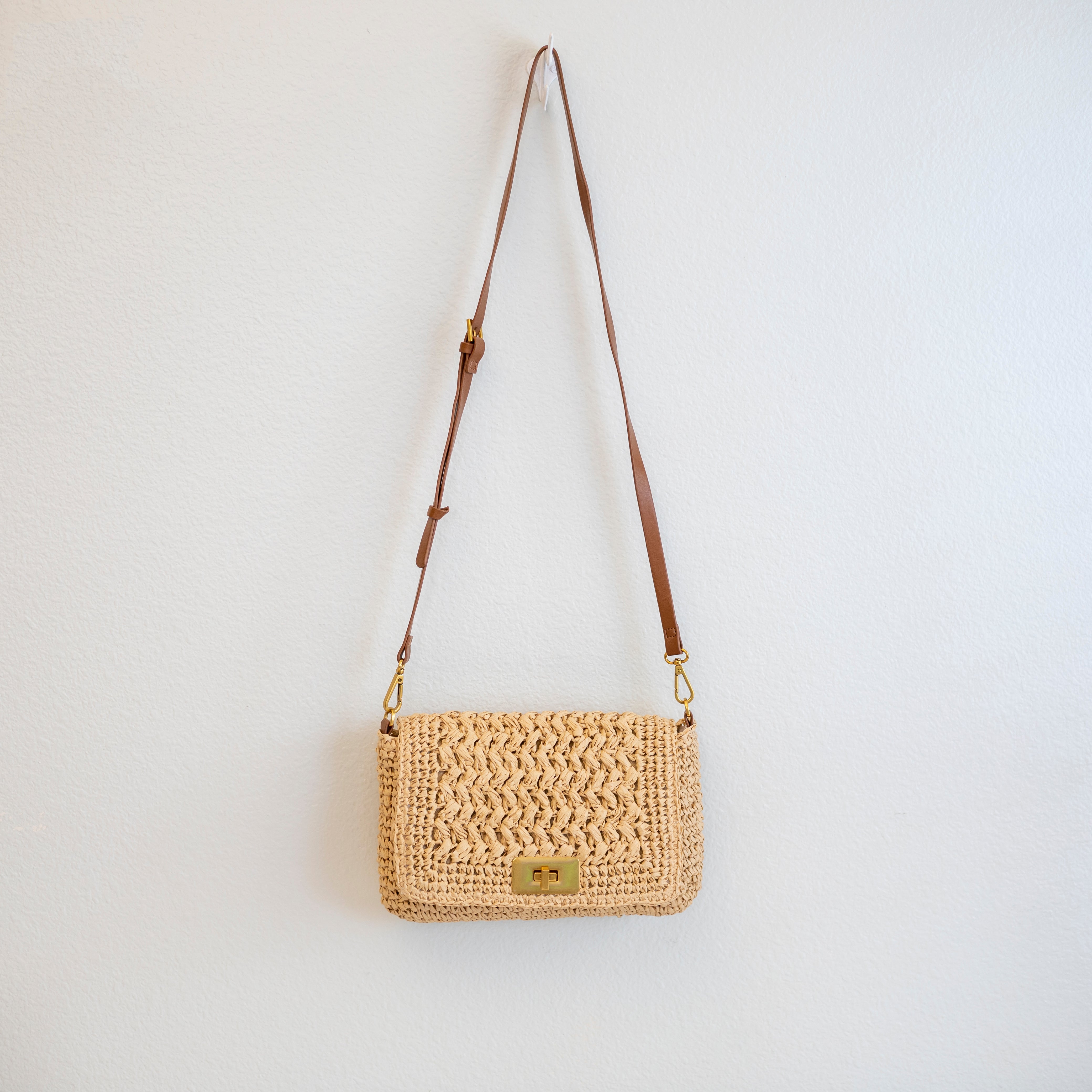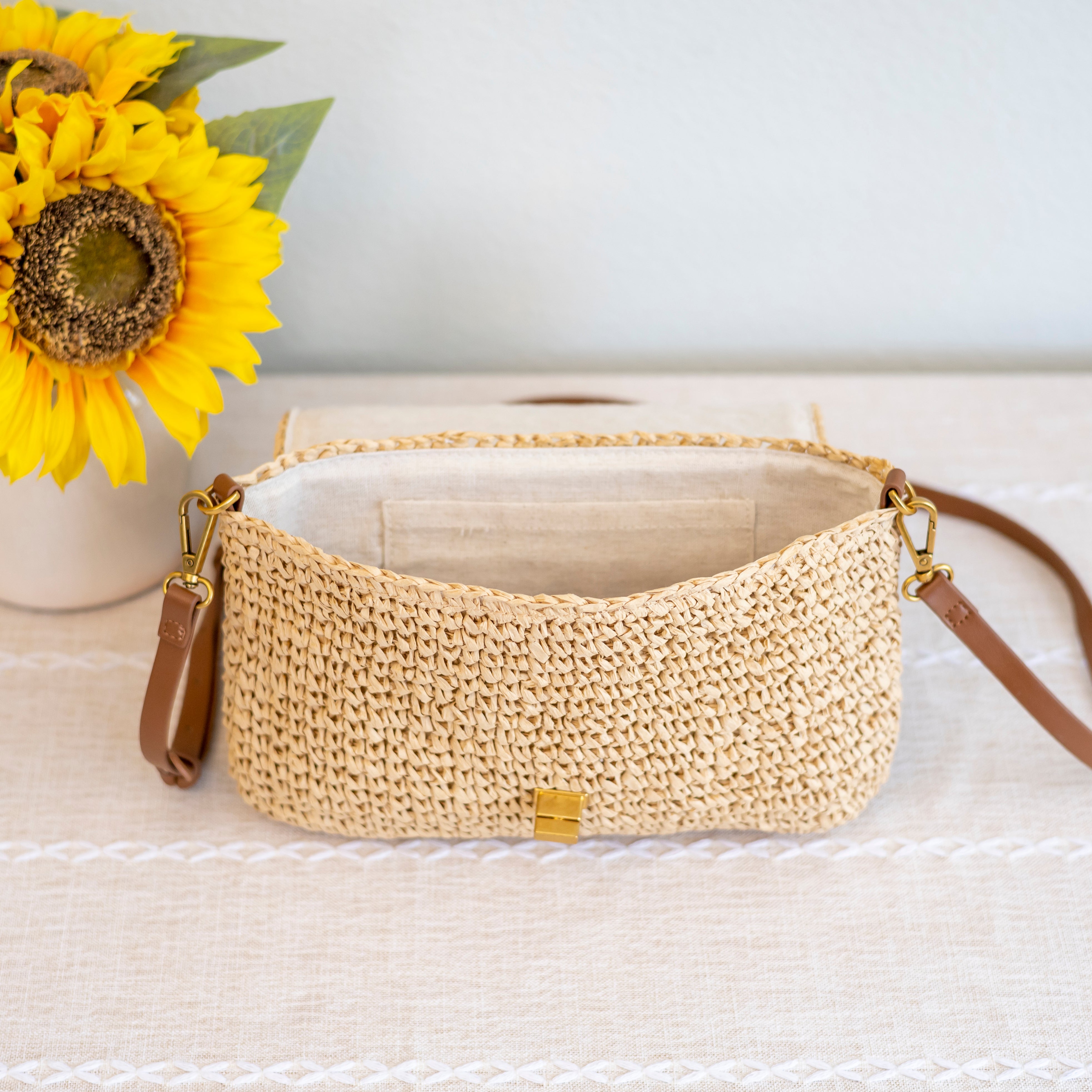 Crossbody Leather and Straw Bag, Summer Bag, ins Style Purse