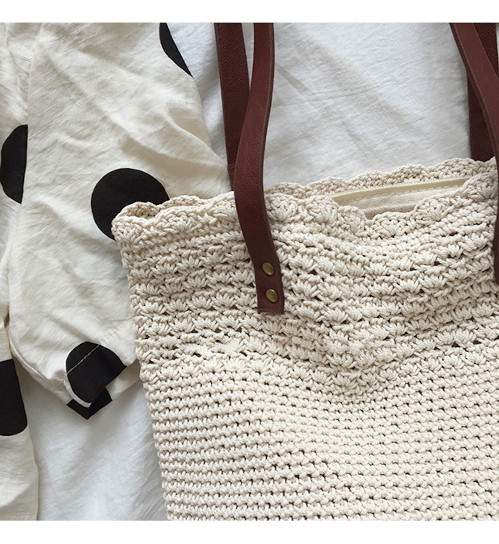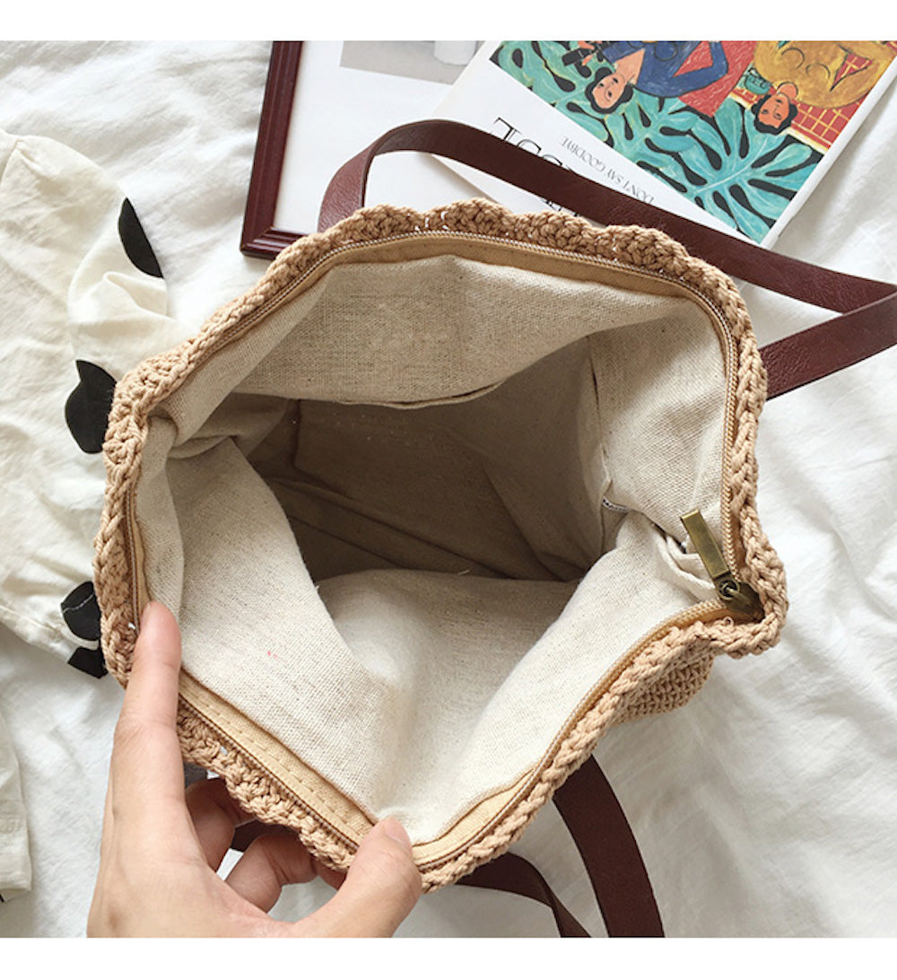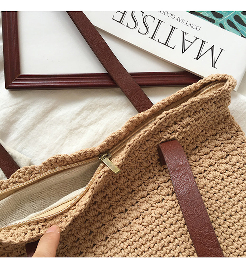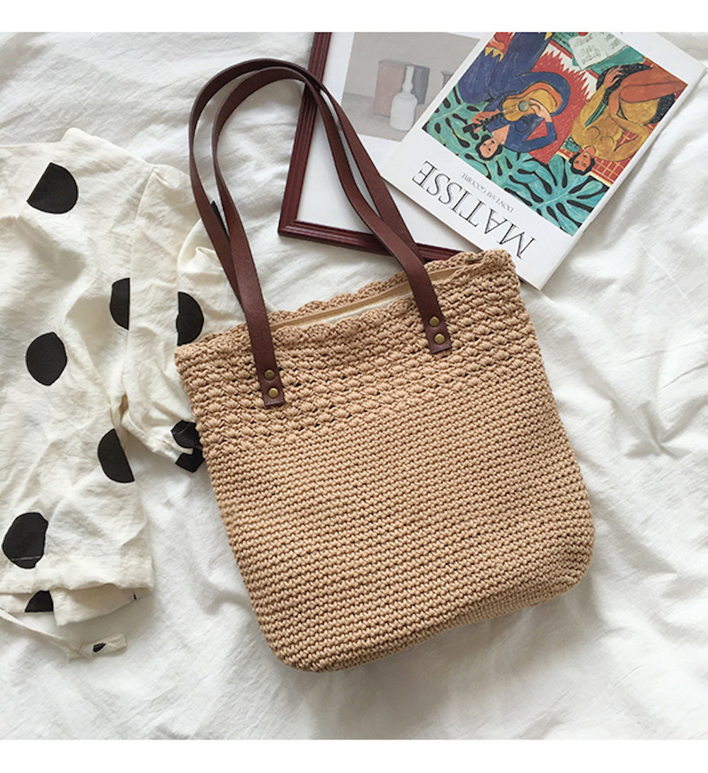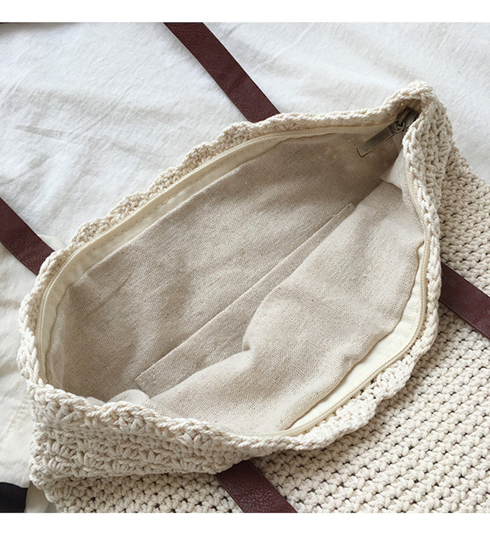Handmade Crochet Shoulder Bag with Leather Strap, Hand Woven, Fashion Casual Bag, Gift for Her, Women's Woven Bag
