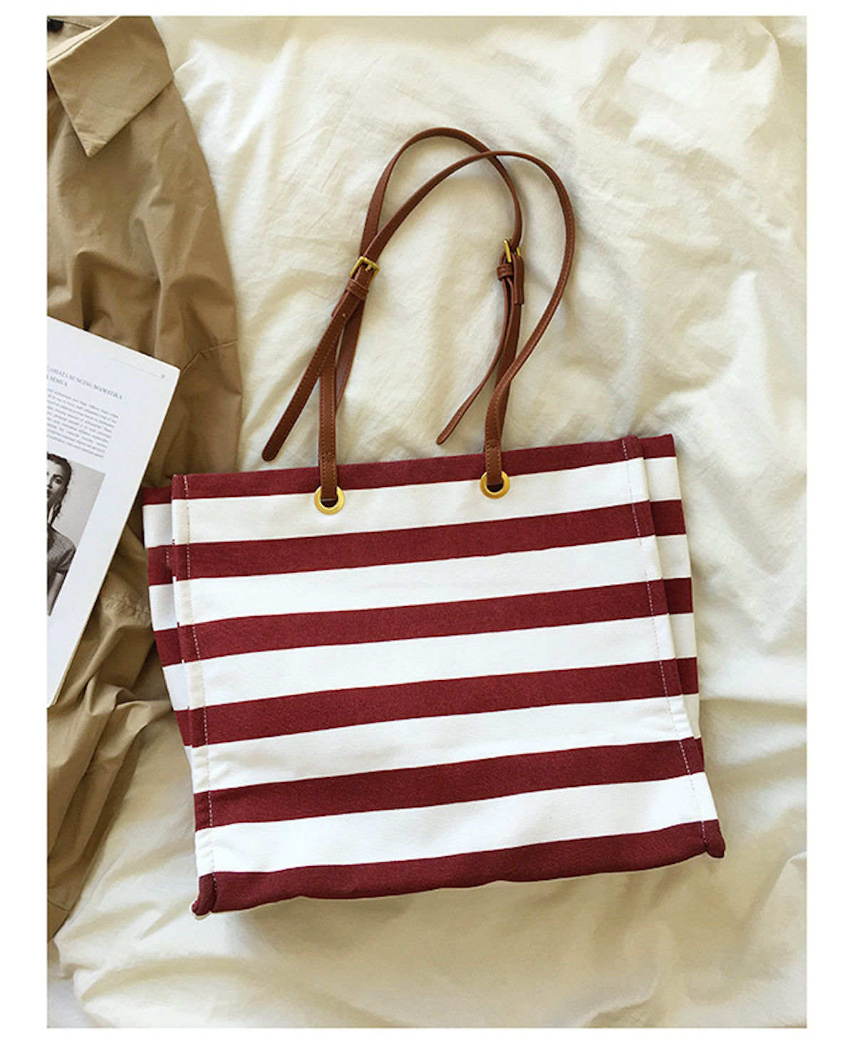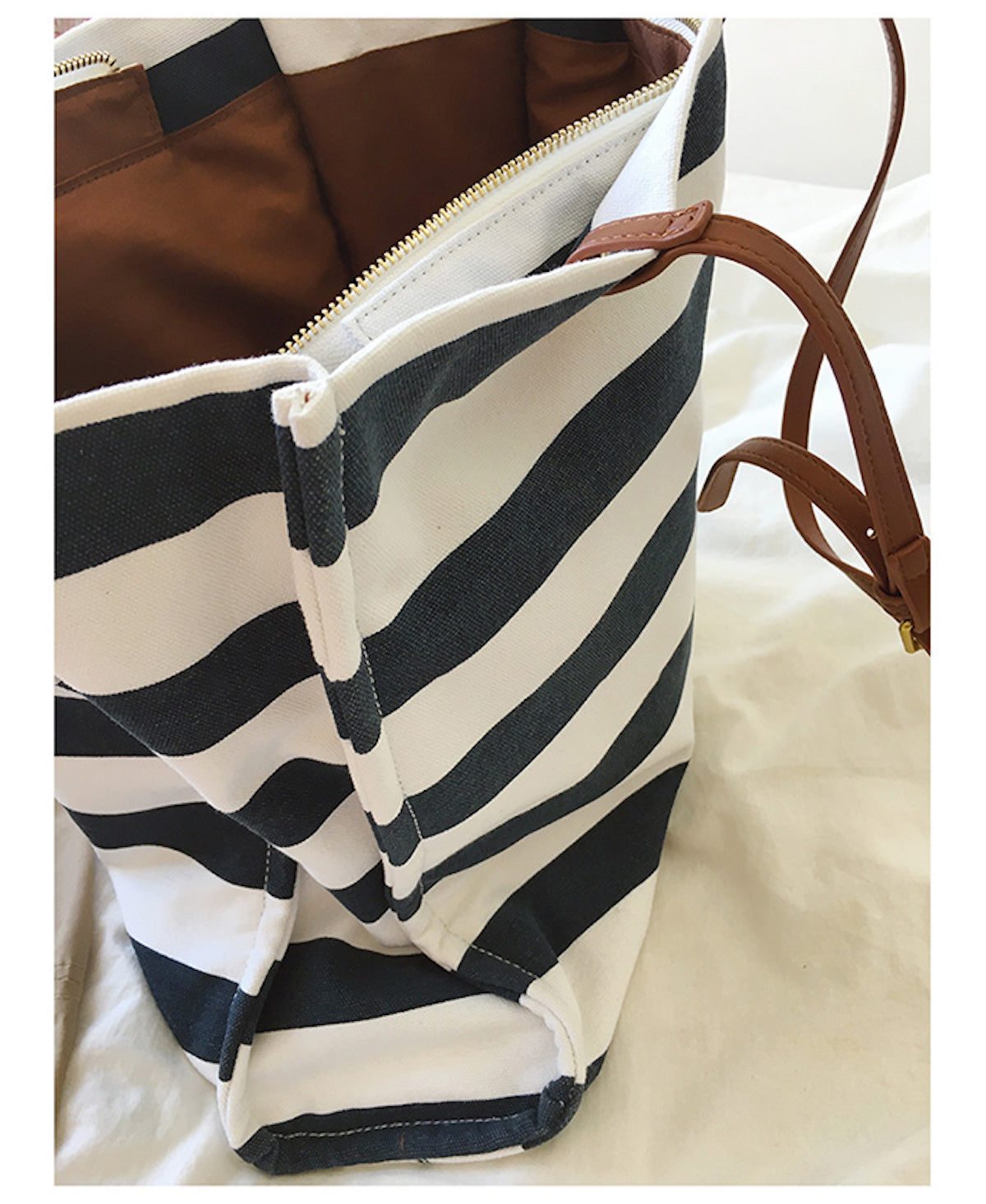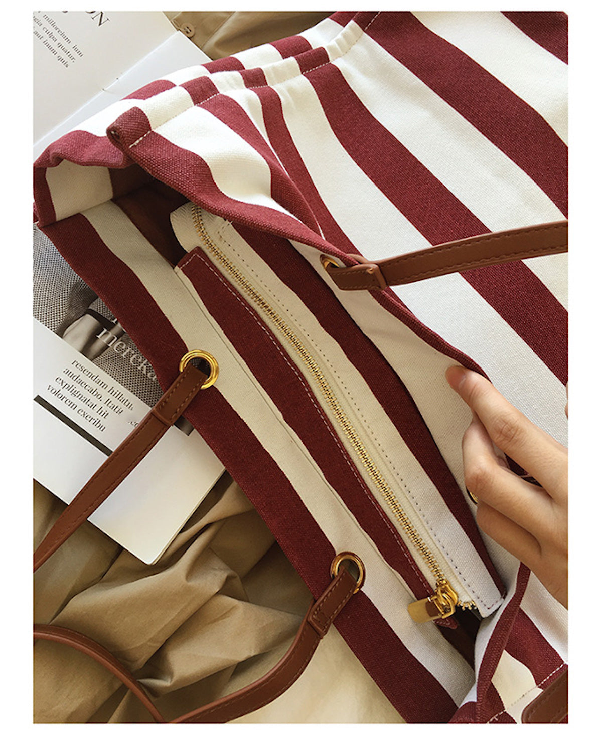 Large Striped Canvas Tote Fashion Shoulder Bag Shopping Bag Work Bag