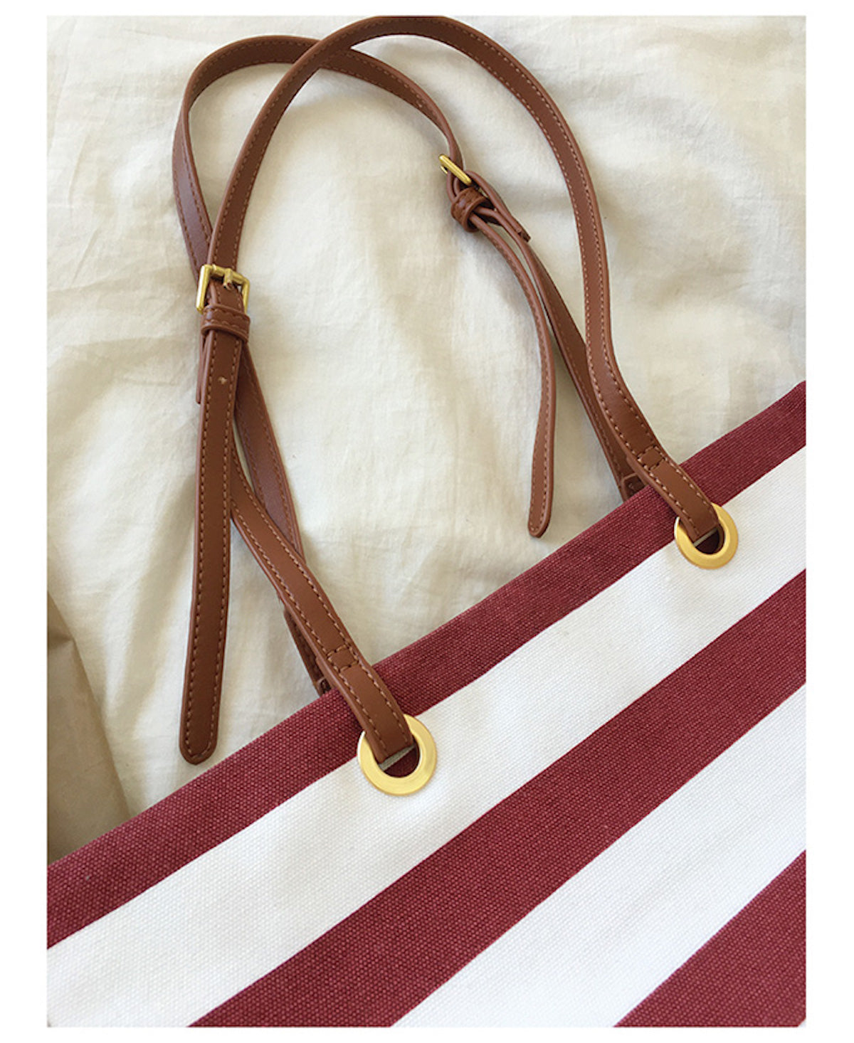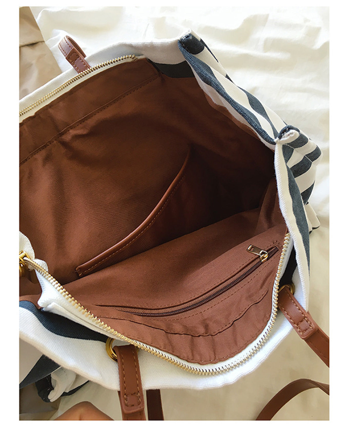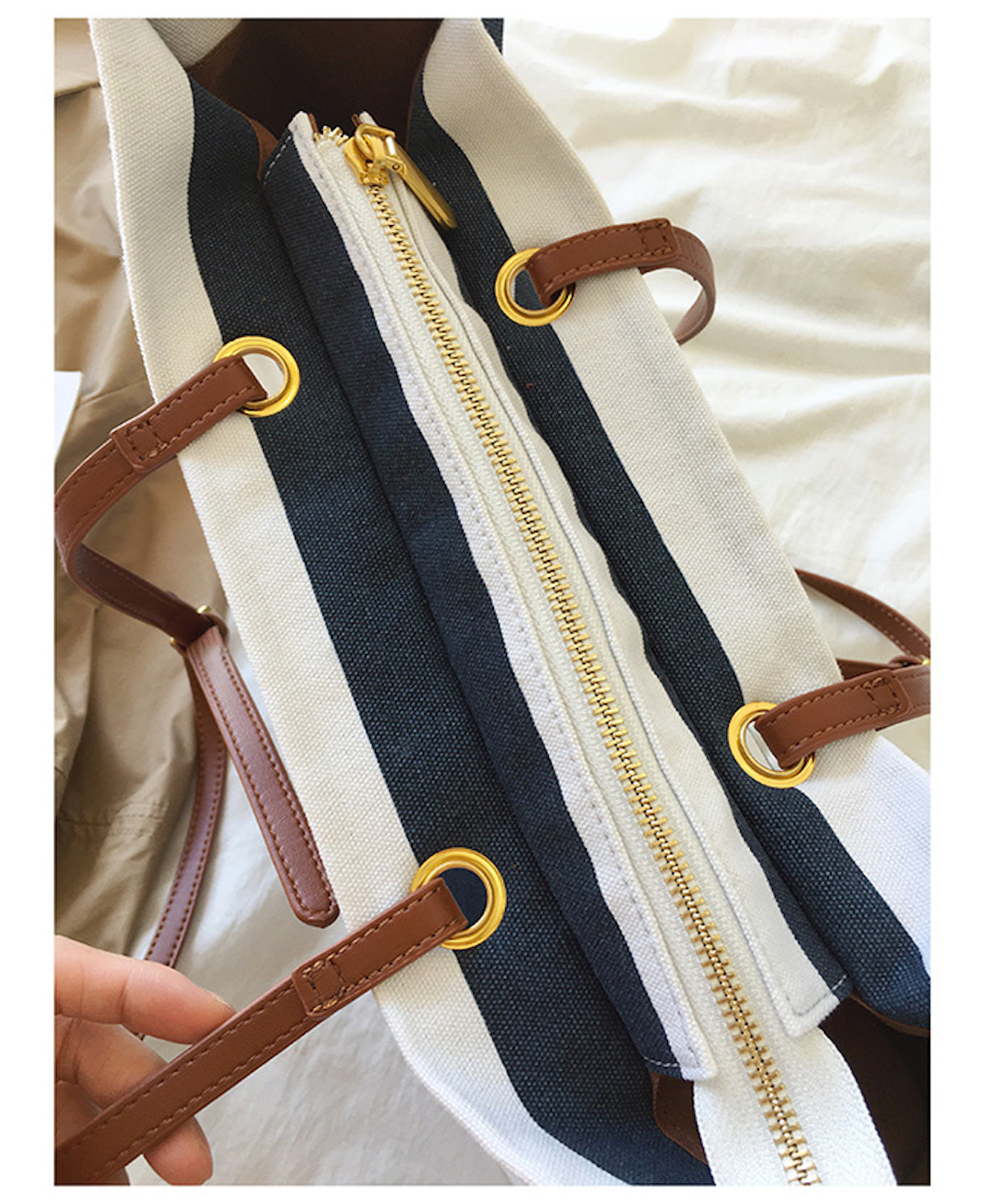 Large Striped Canvas Tote Fashion Shoulder Bag Shopping Bag Work Bag