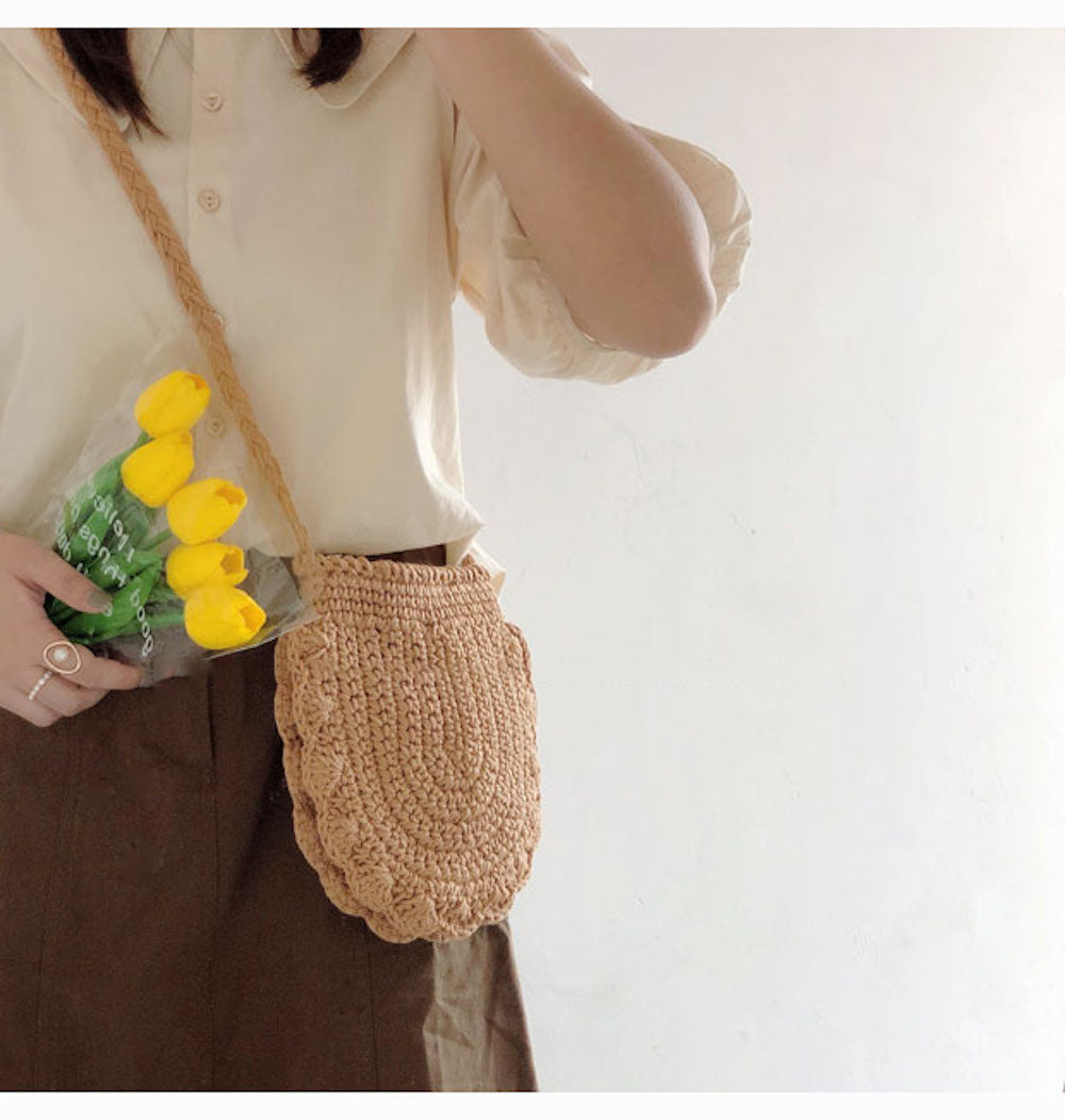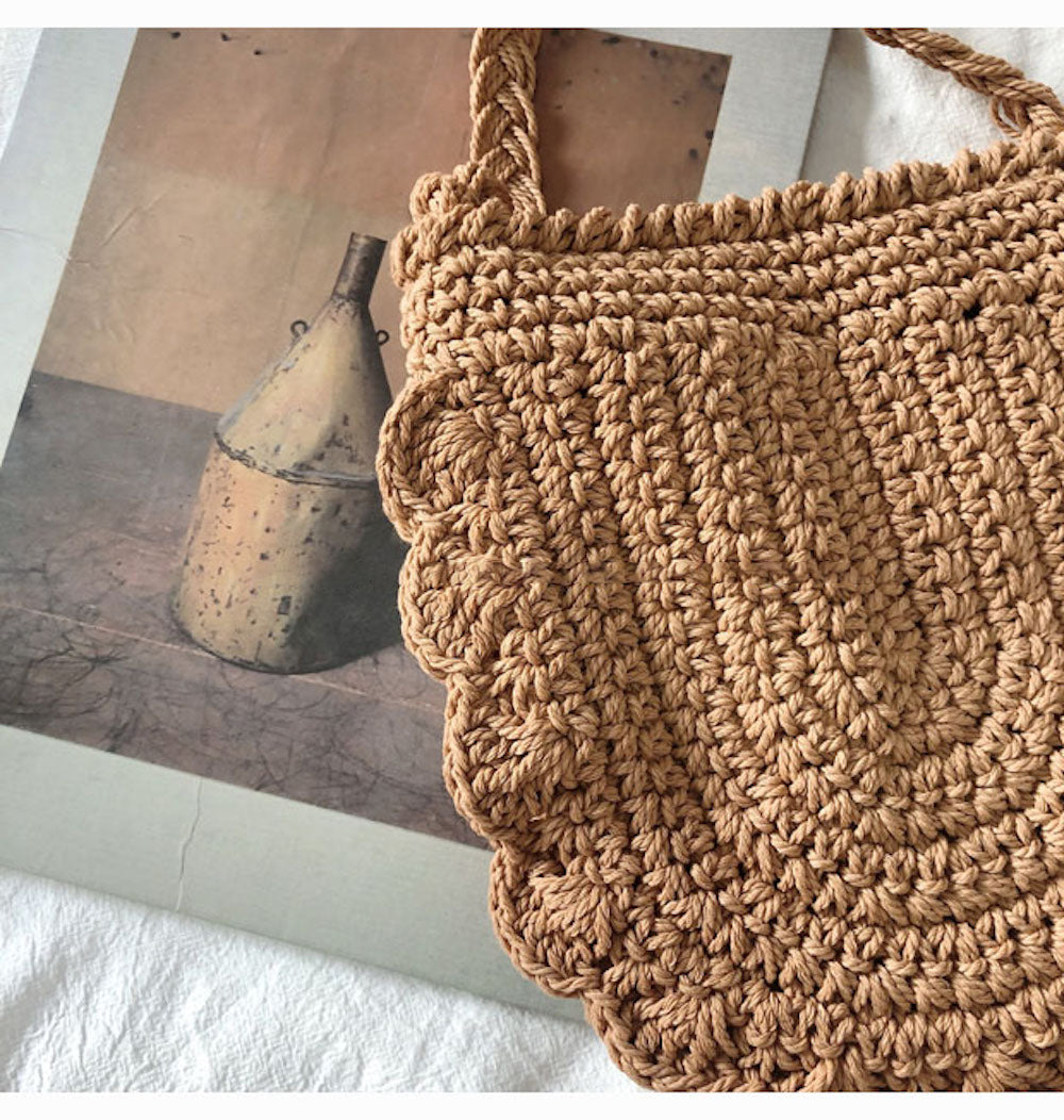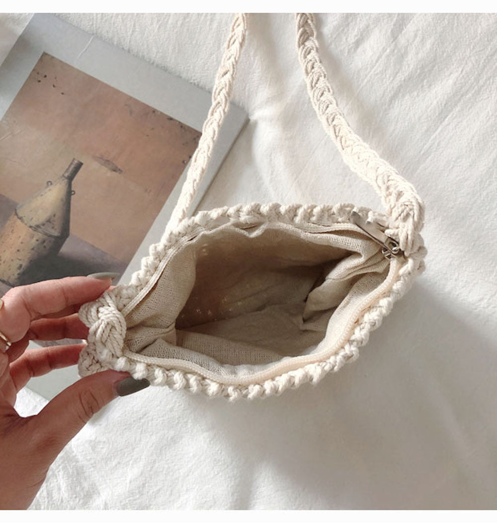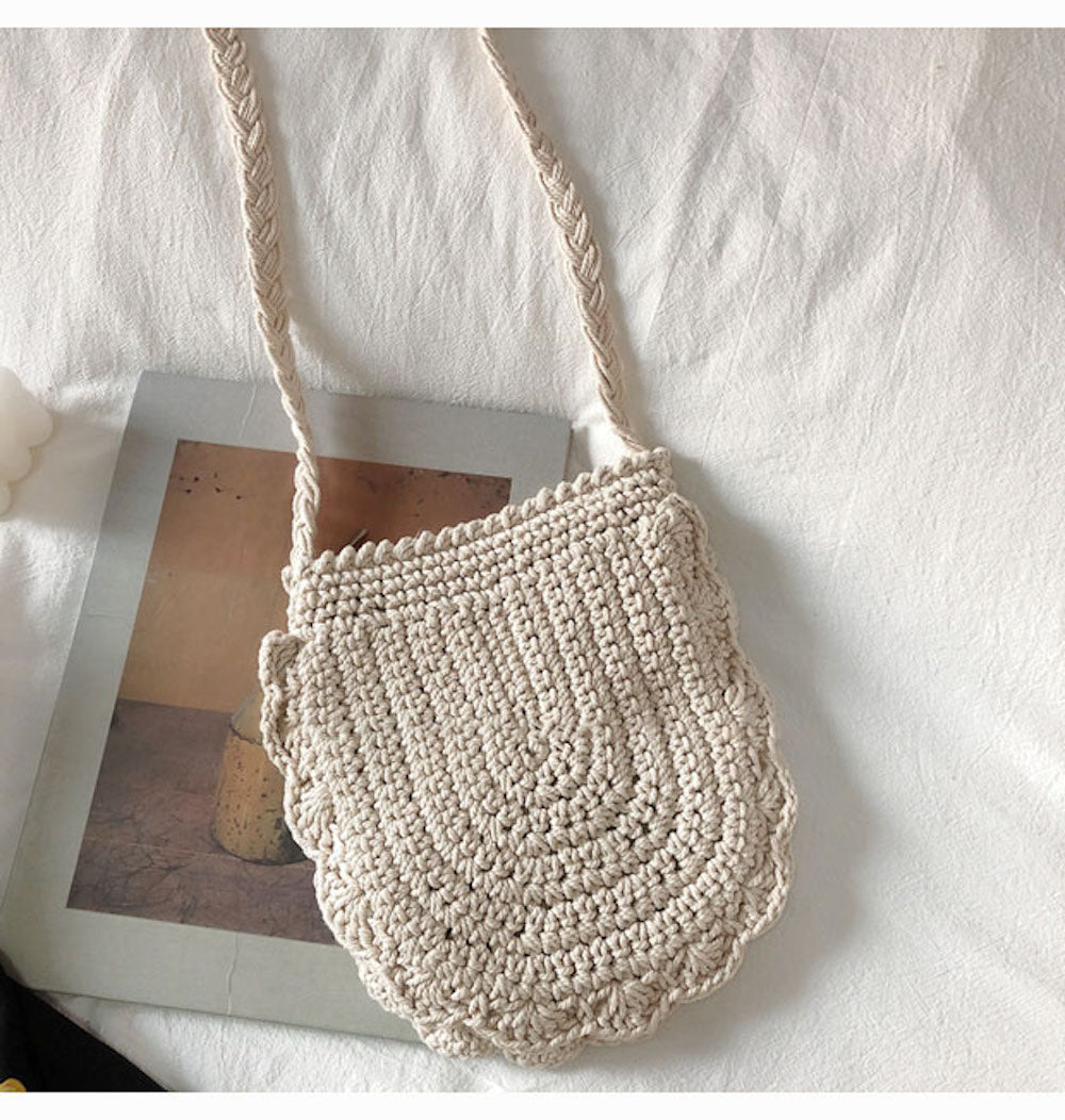Mini Cotton Knitted Shoulder Bag, Handmade Crochet Bag, Fashion Casual Bag, Gift for Her, Women's Woven Bag