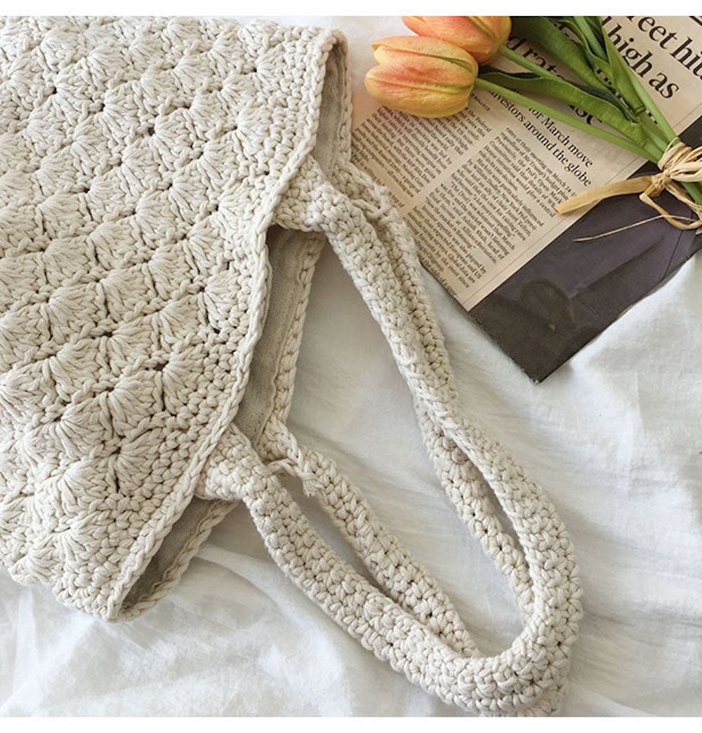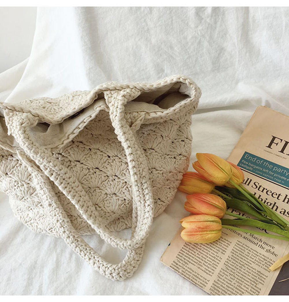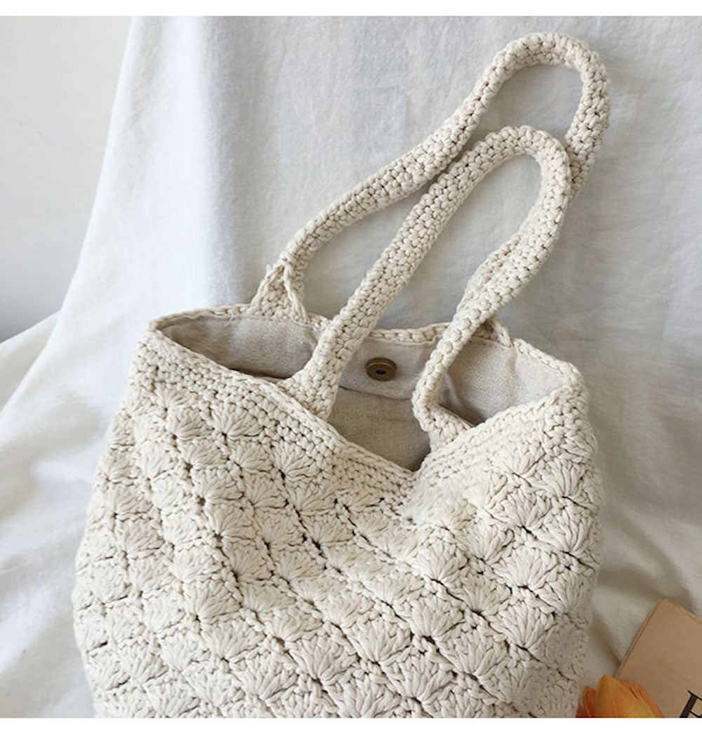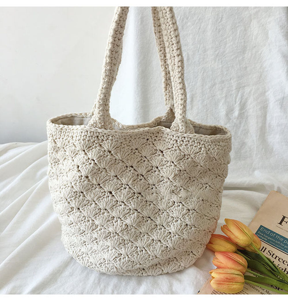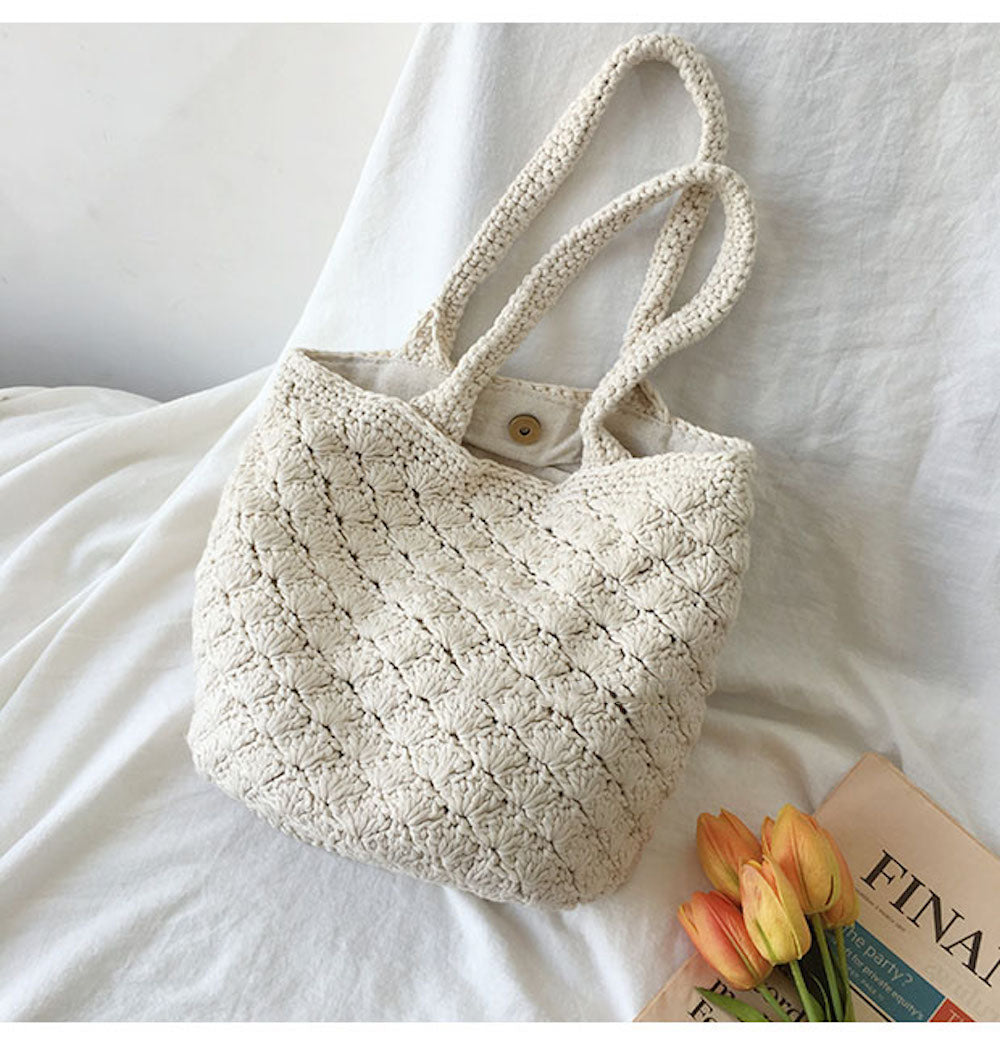 Patterned Cotton Knitted Shoulder Bag, Hand Crochet Woven Purse, Fashion Casual Bag, Women's Purse Shoulder Bag