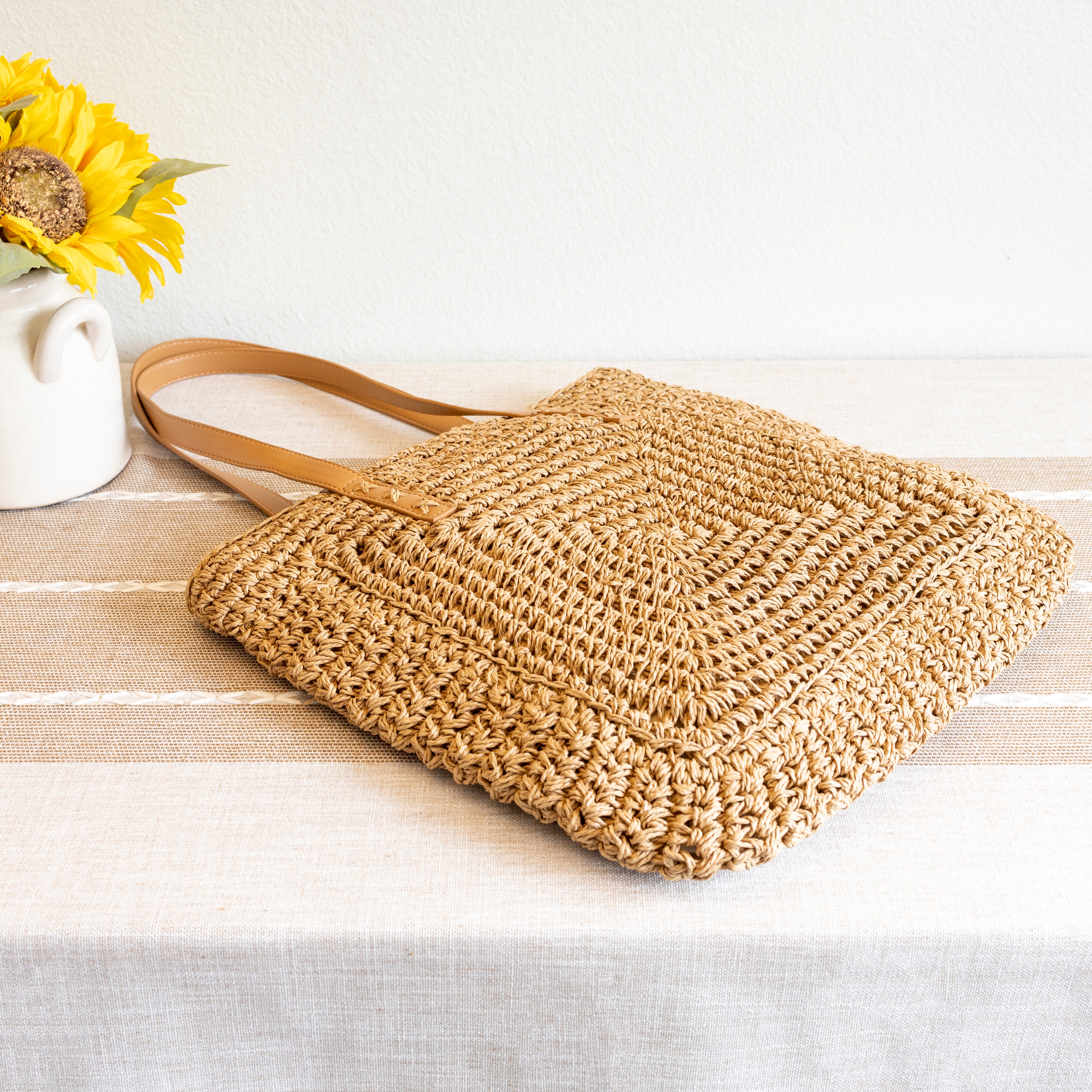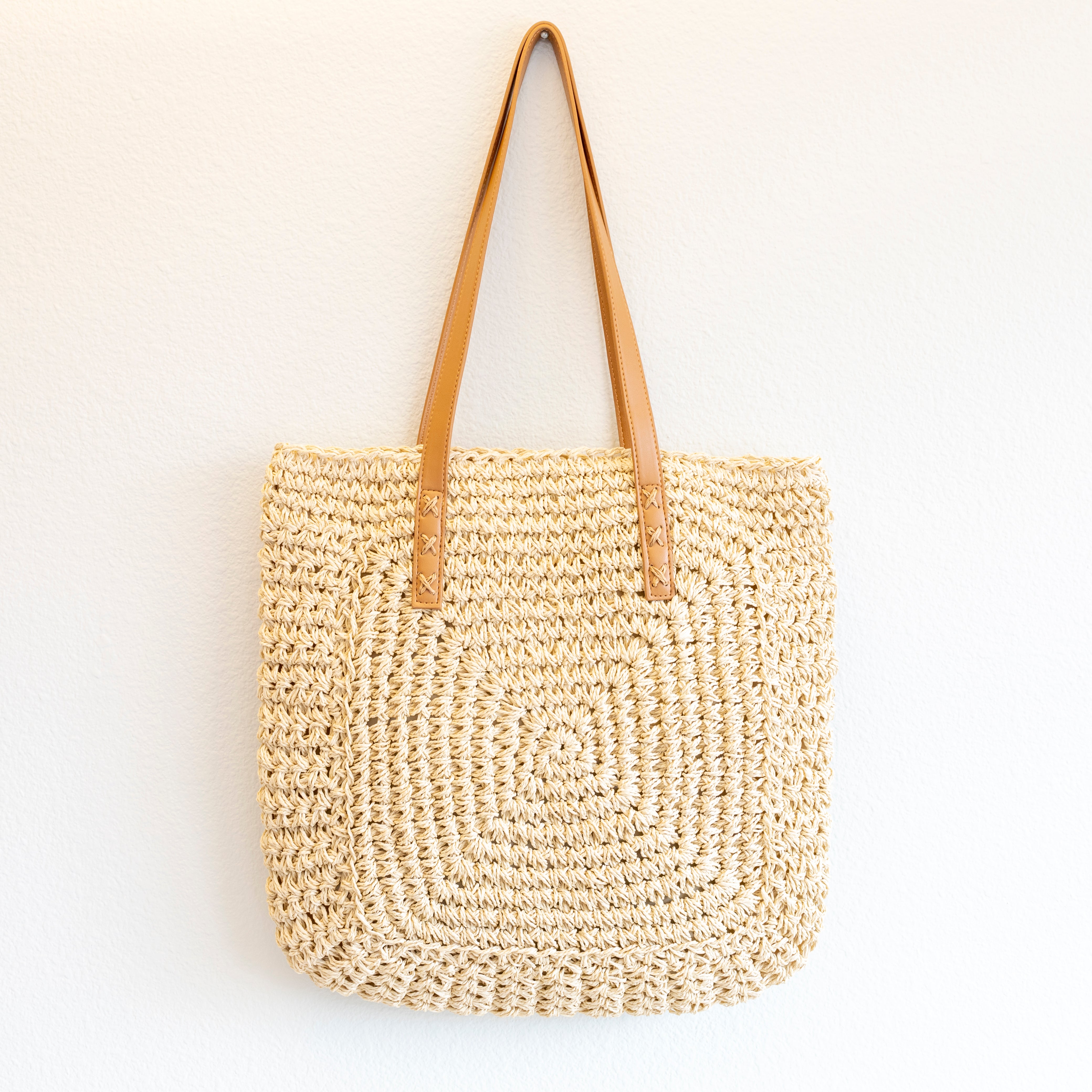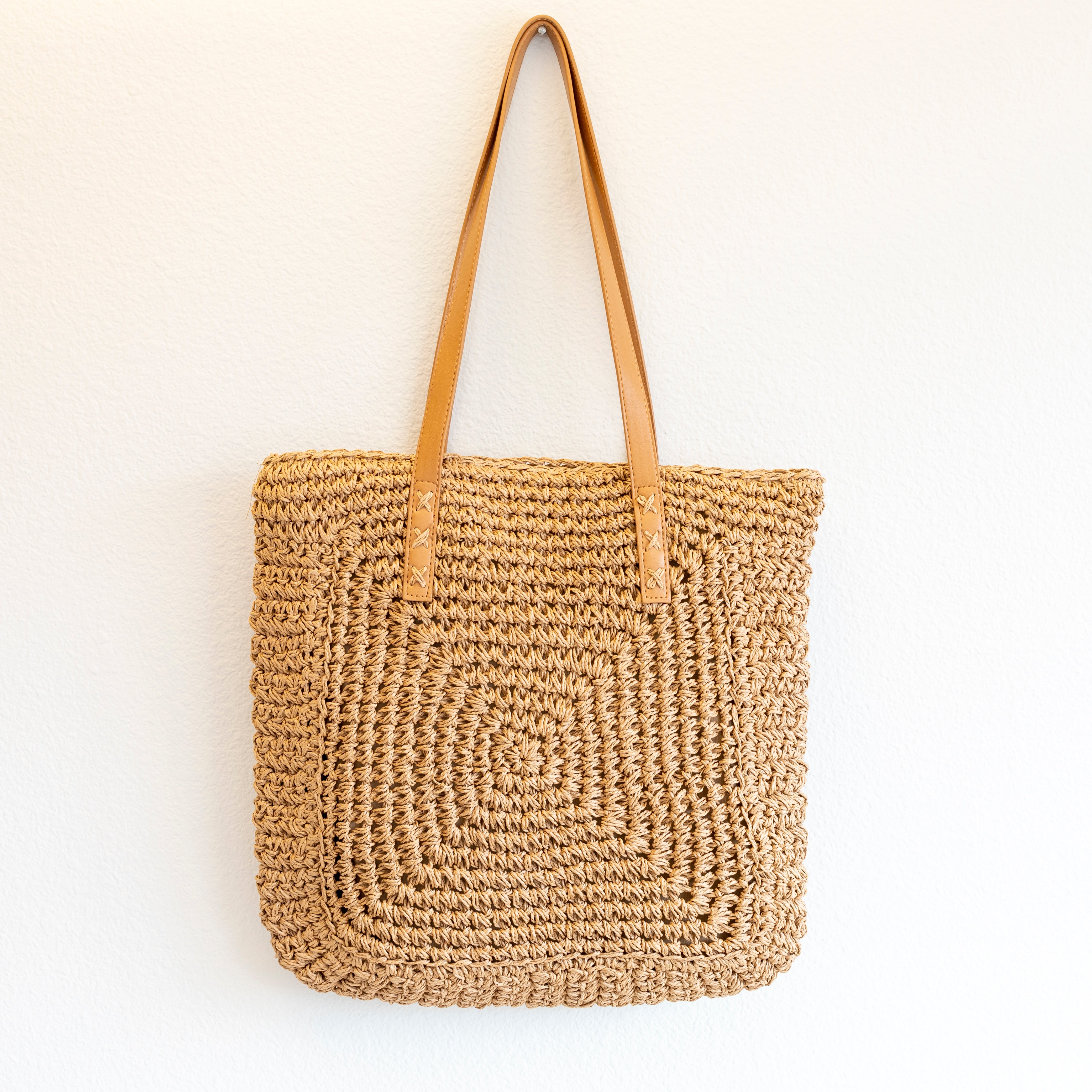 Patterned straw woven tote. Great for tropical vacation. New summer beach look. This stylish tote is perfect for those beachy days, crafted with quality straw for a strong and lightweight bag. With this patterned accessory, you can enjoy your summer days with your favorite outfit in confidence.