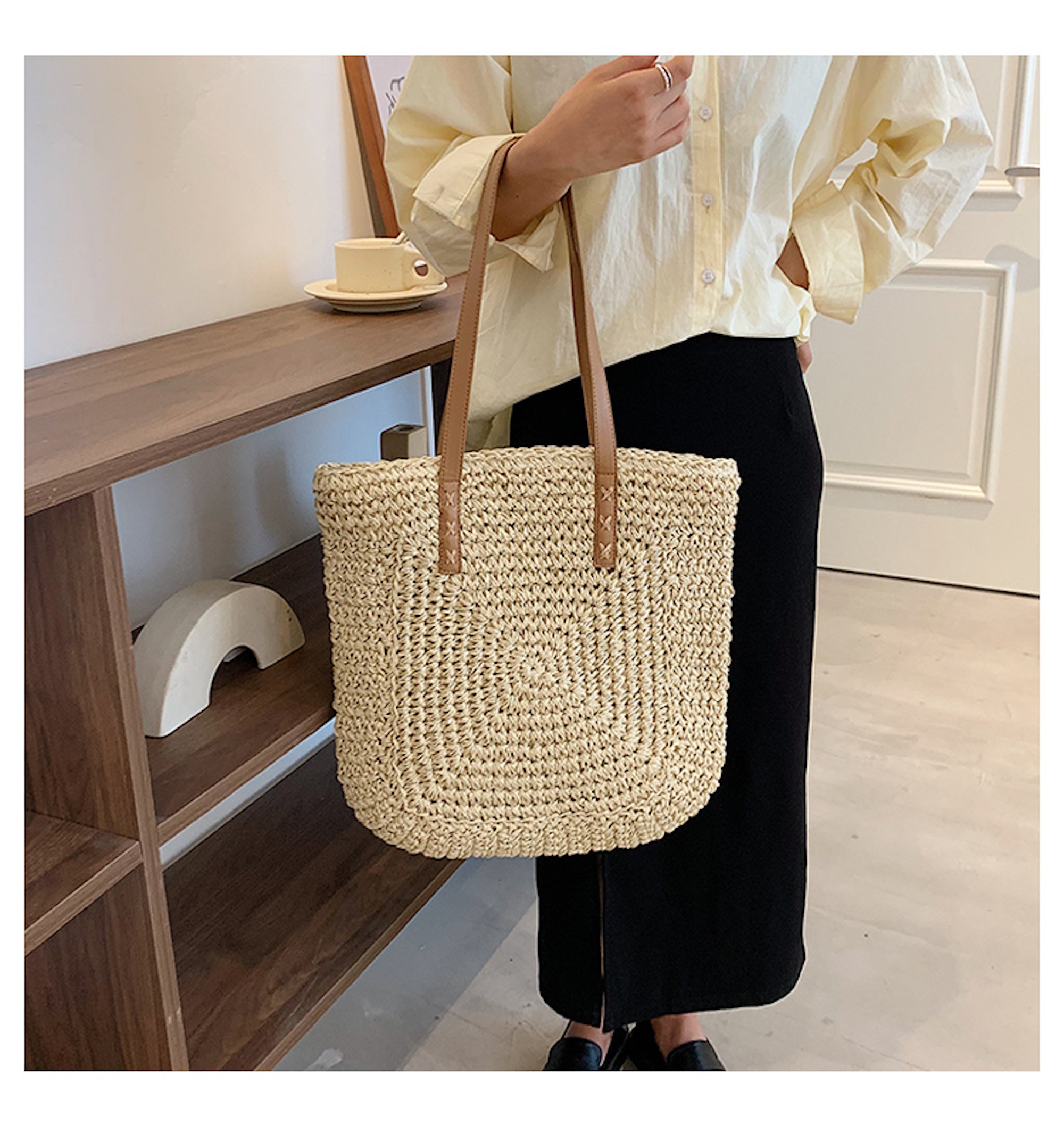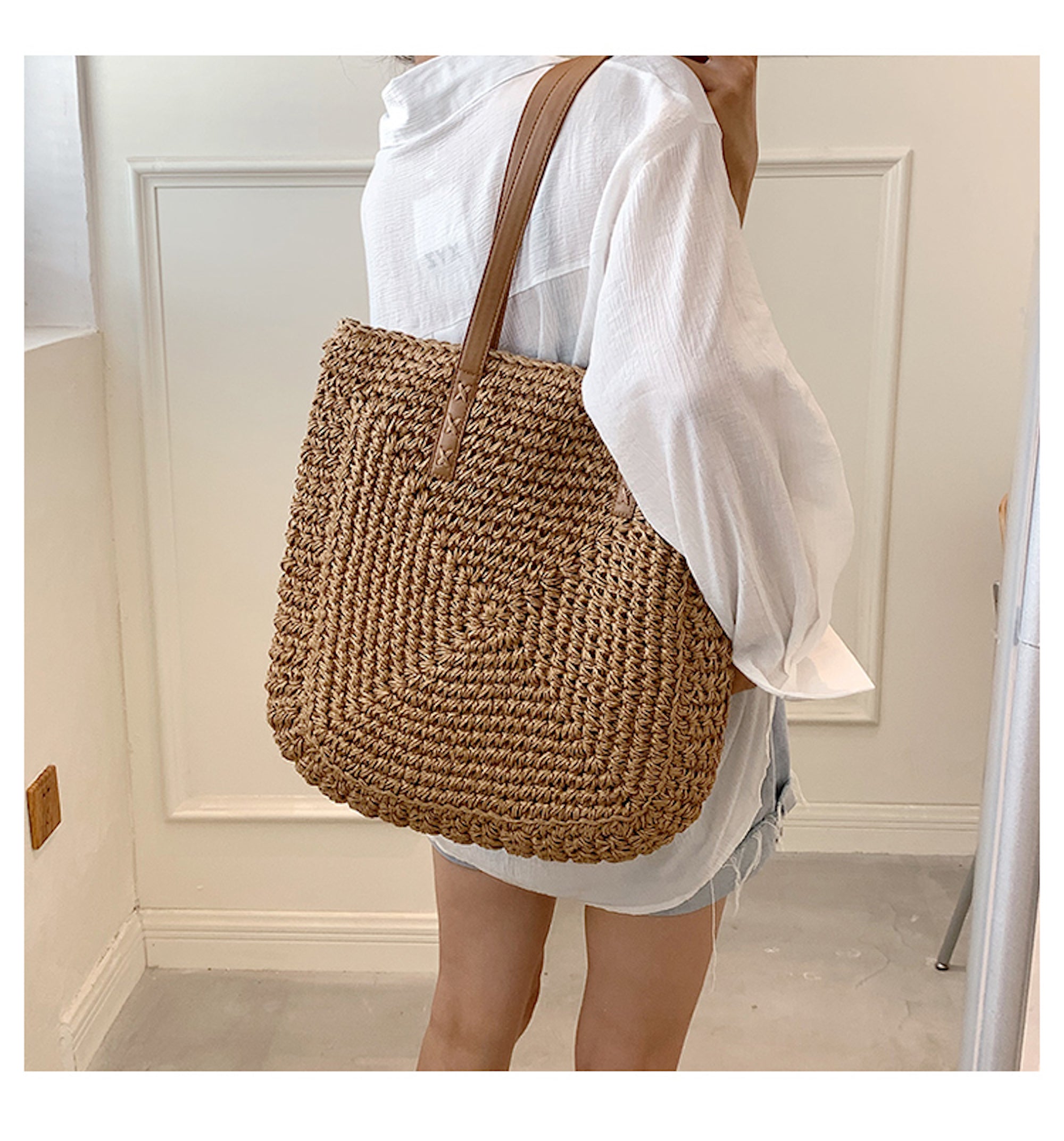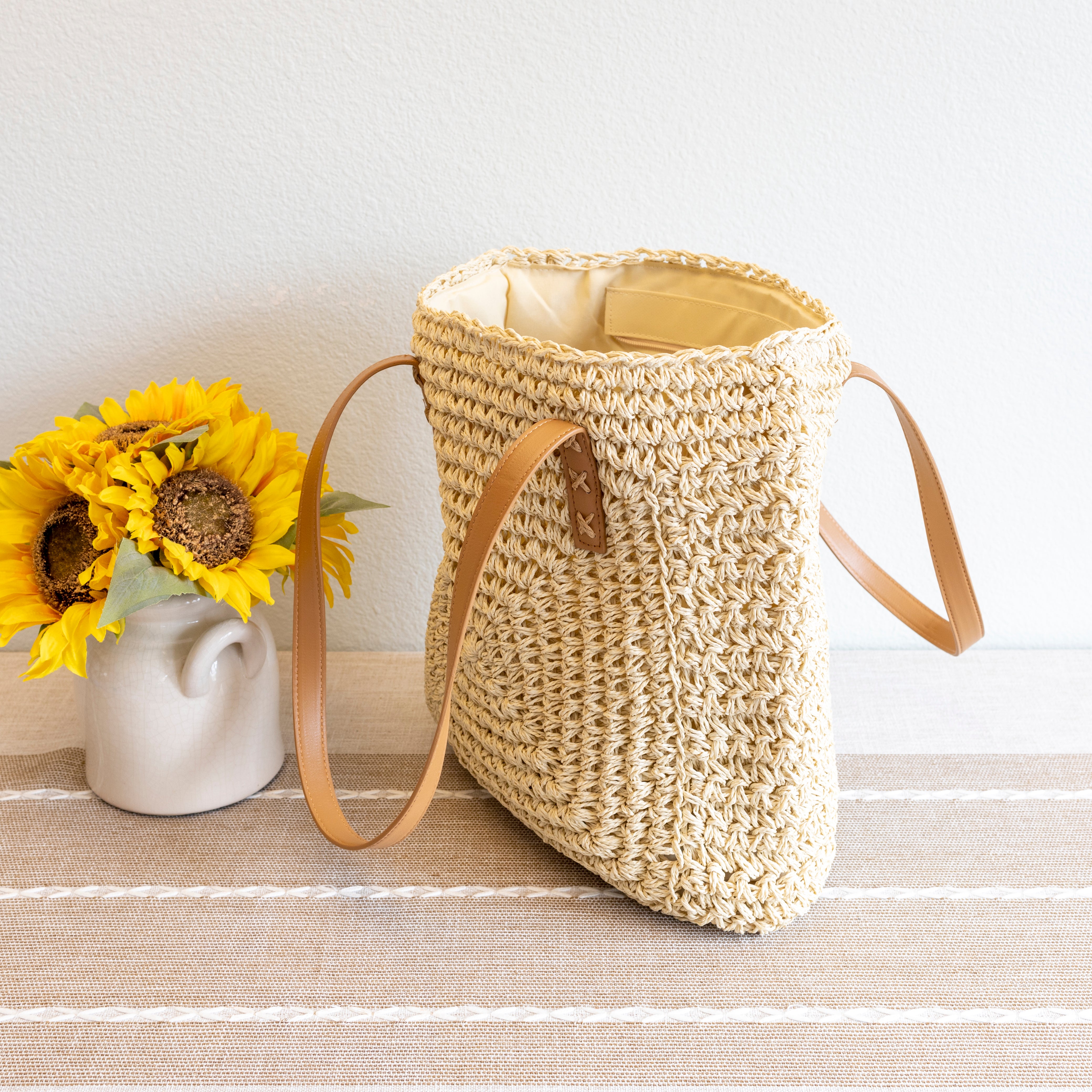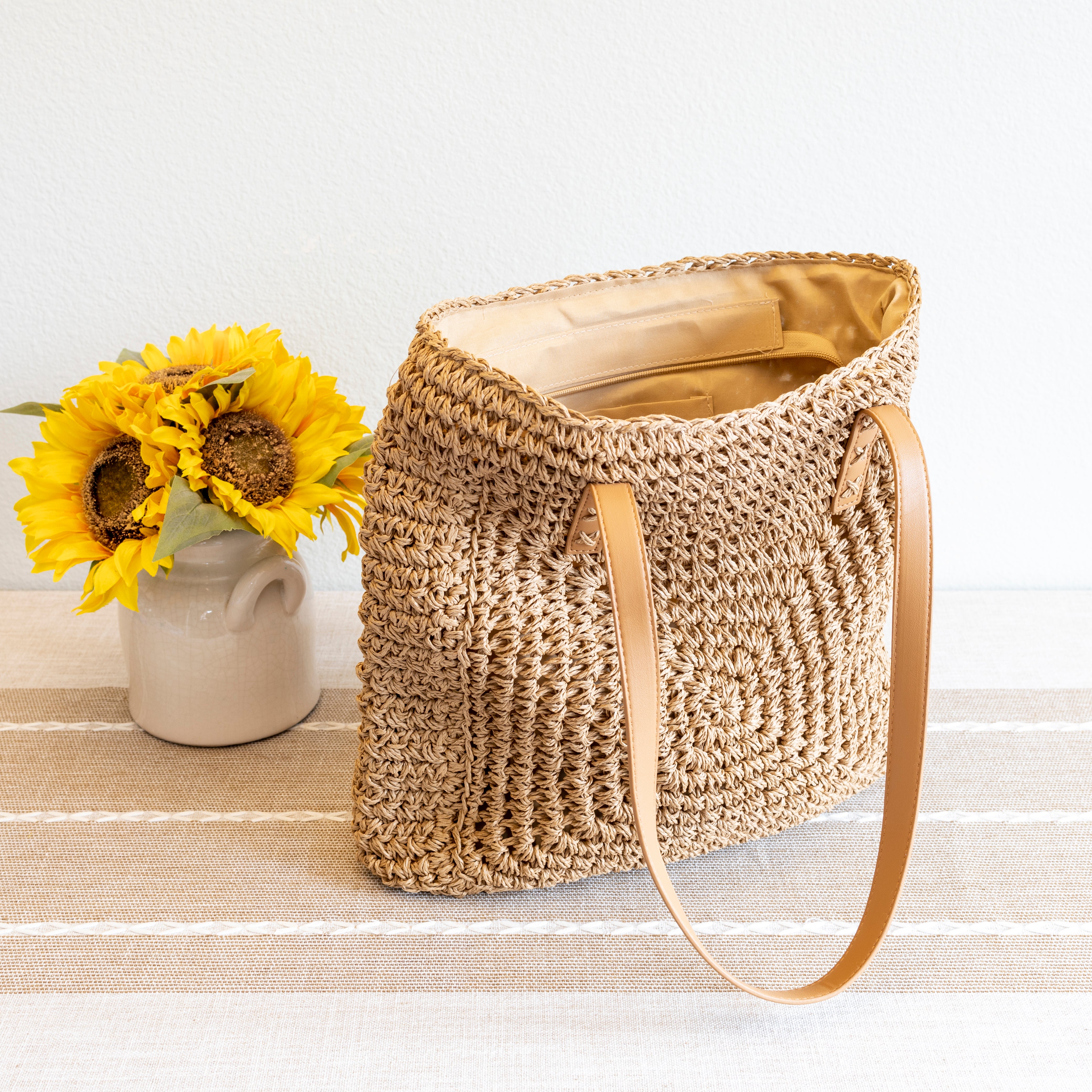 Patterned straw woven tote. Great for tropical vacation. New summer beach look. This stylish tote is perfect for those beachy days, crafted with quality straw for a strong and lightweight bag. With this patterned accessory, you can enjoy your summer days with your favorite outfit in confidence.