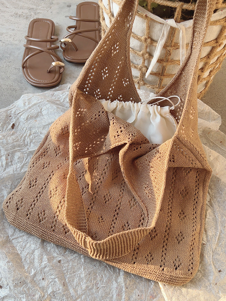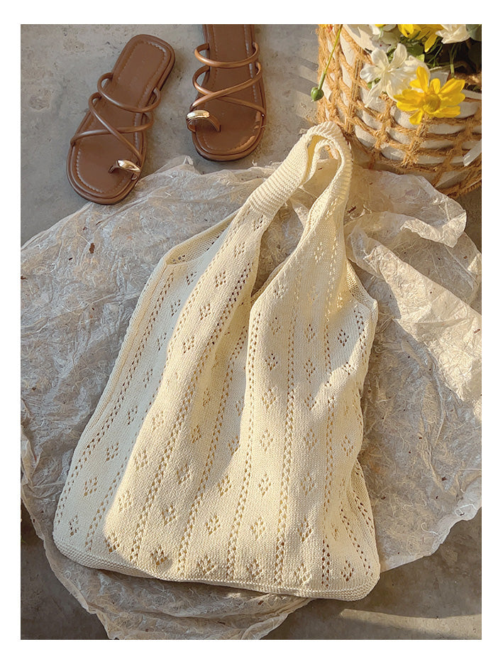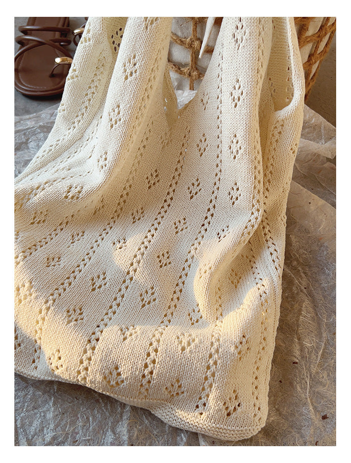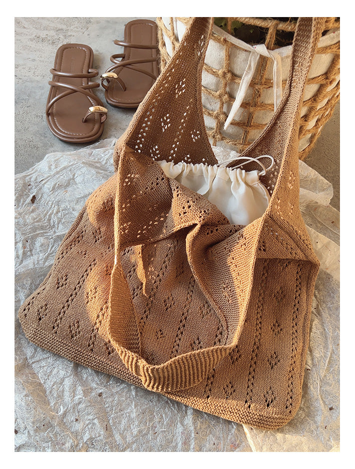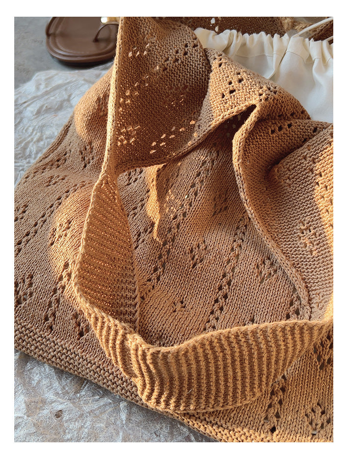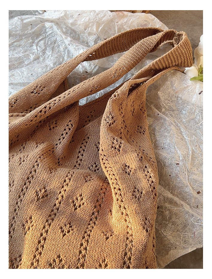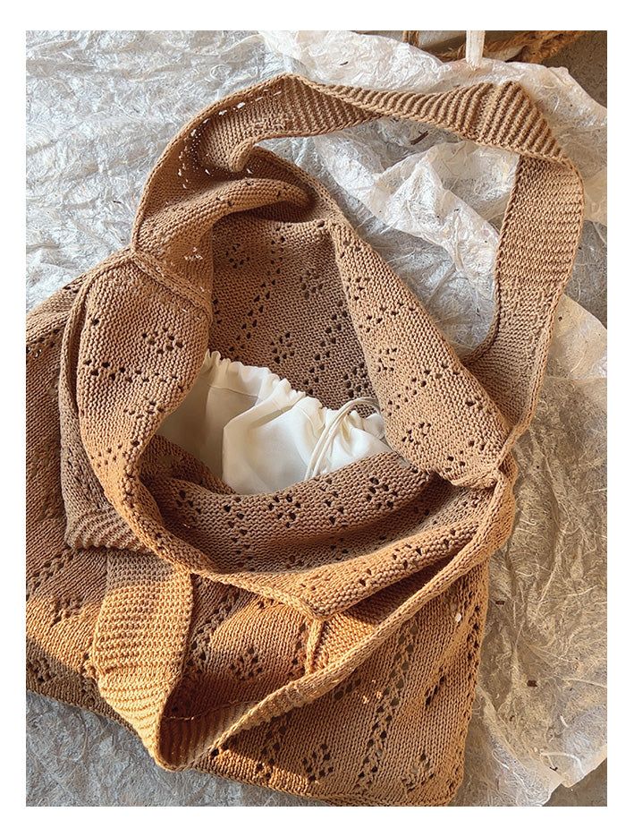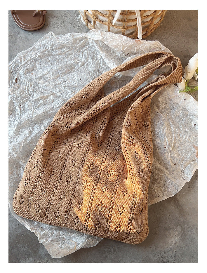 Retro Cotton Knitted Shoulder Bag, Fashion Casual Bag, Handmade Gift for Her, Women's Hand Woven Bag