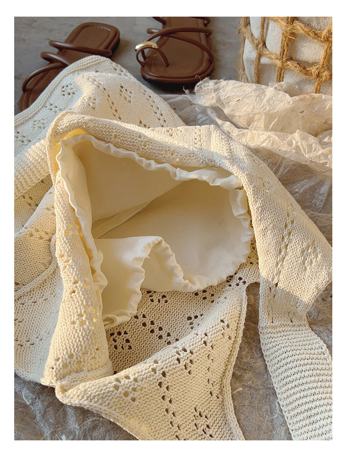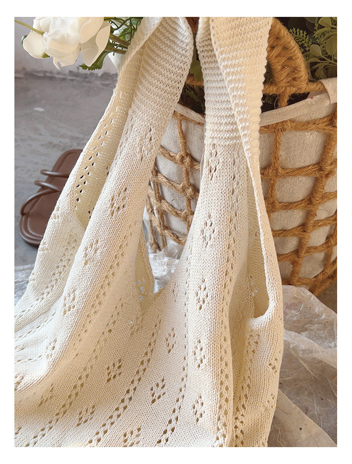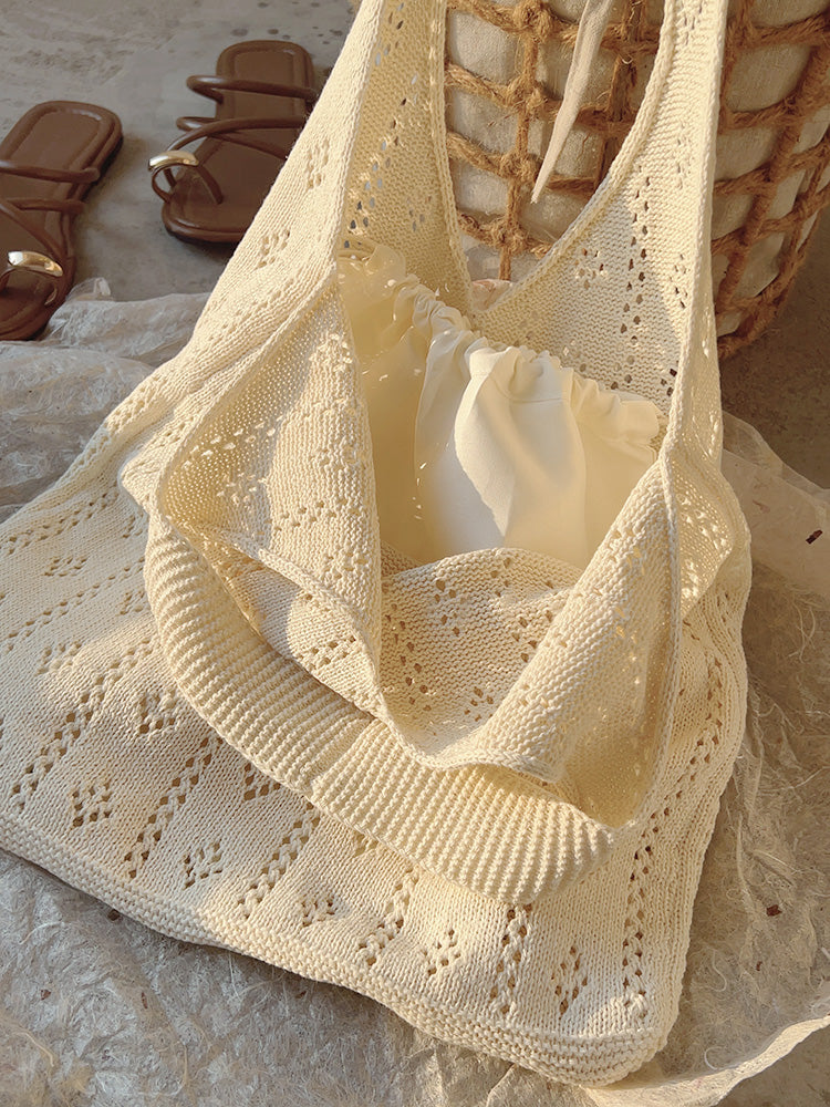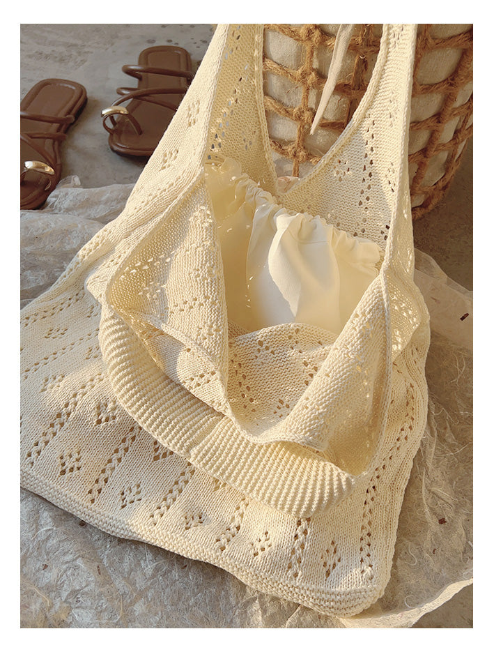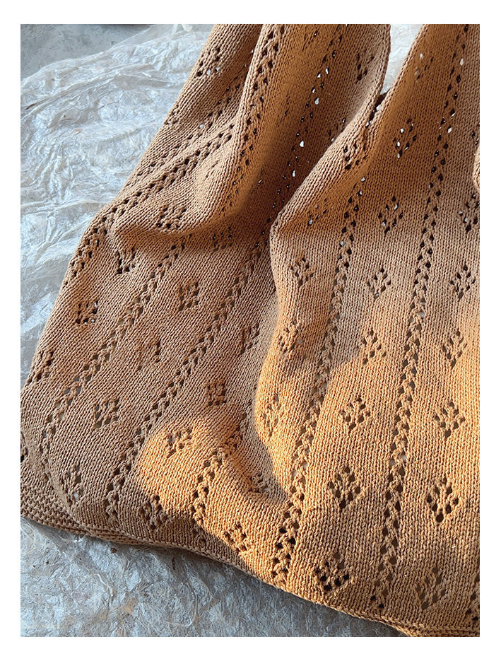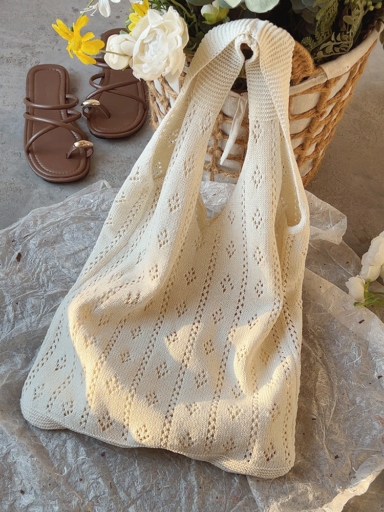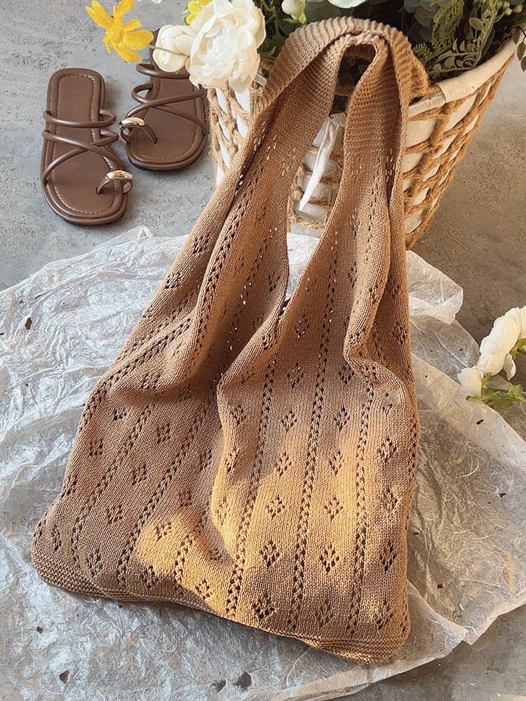 Retro Cotton Knitted Shoulder Bag, Fashion Casual Bag, Handmade Gift for Her, Women's Hand Woven Bag