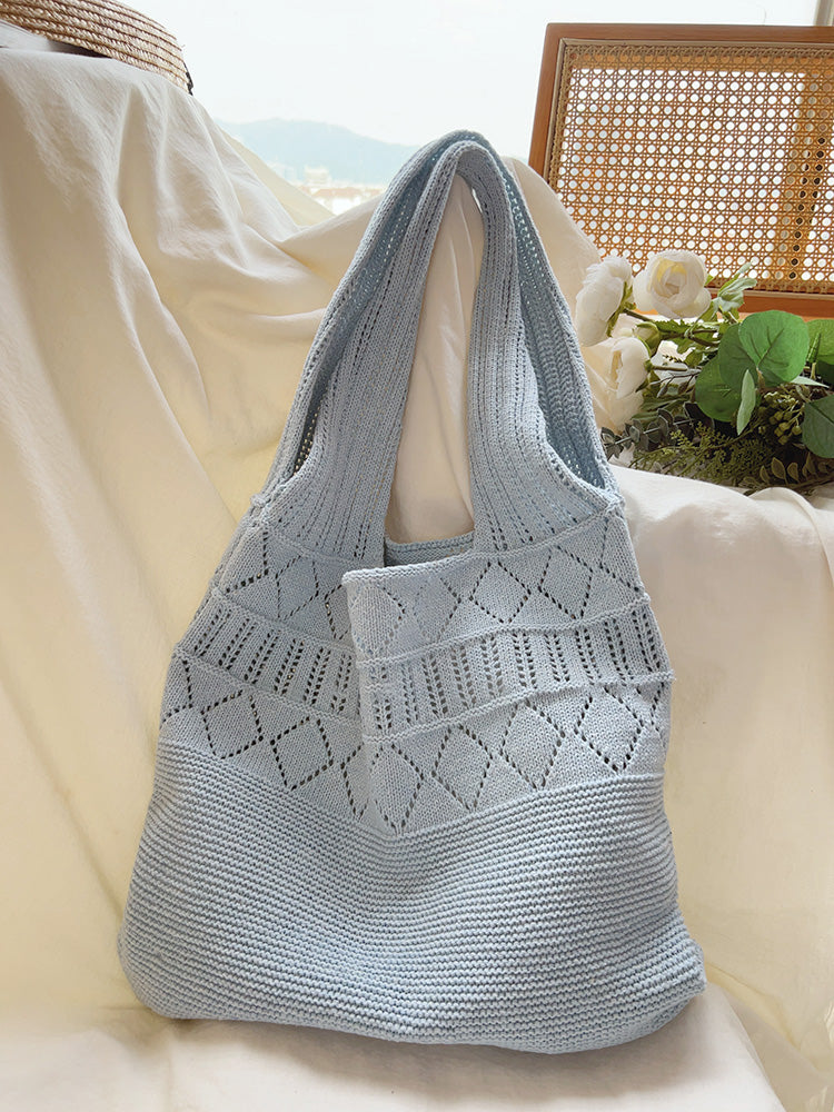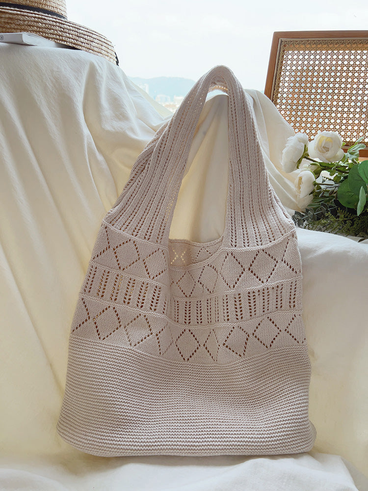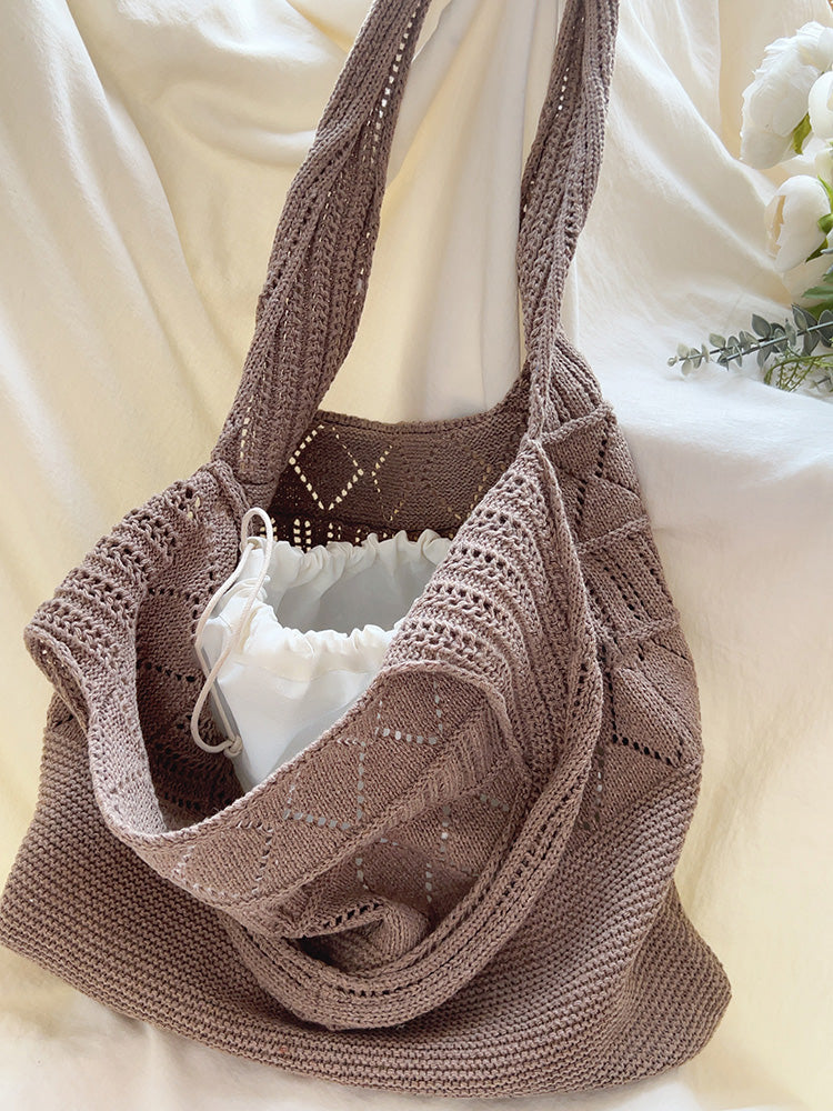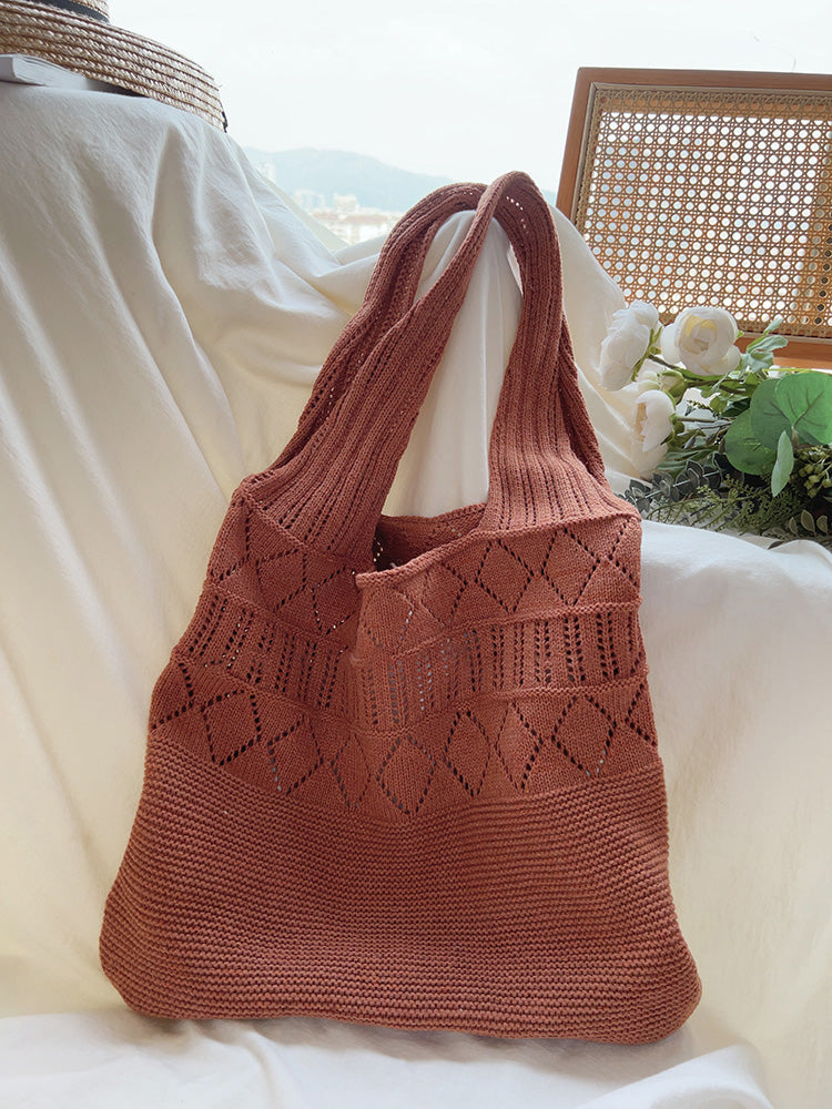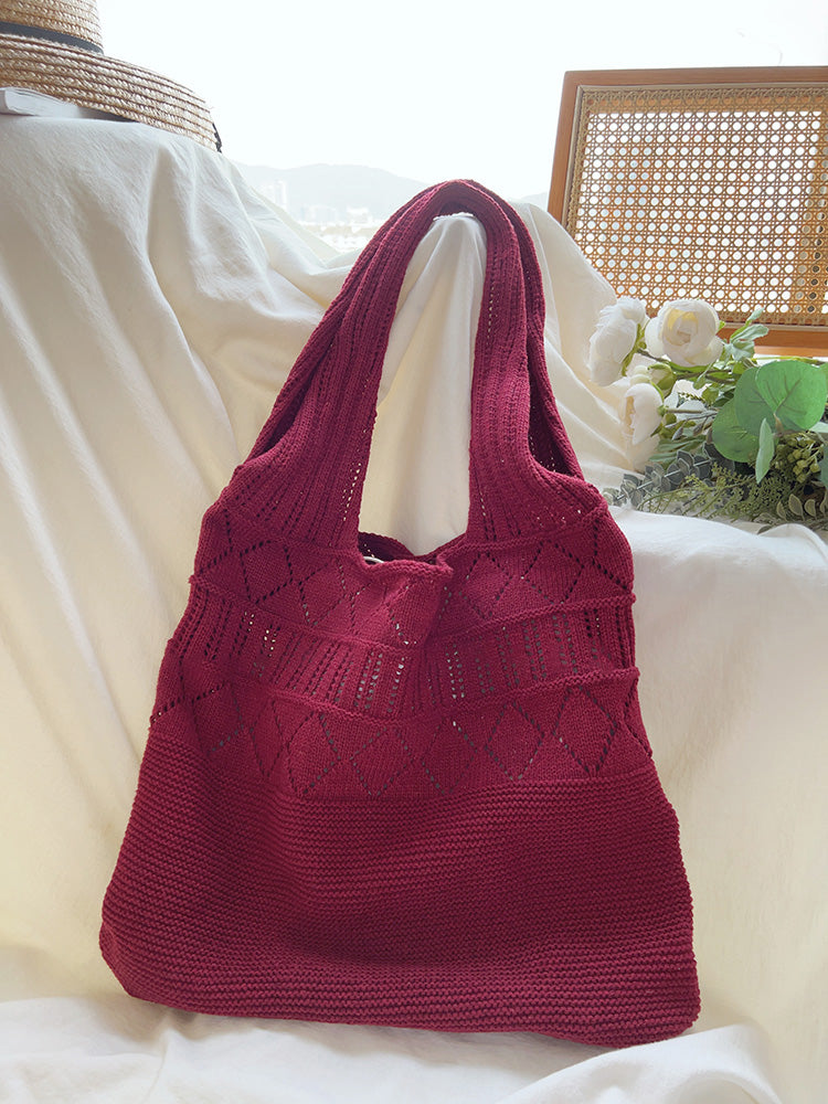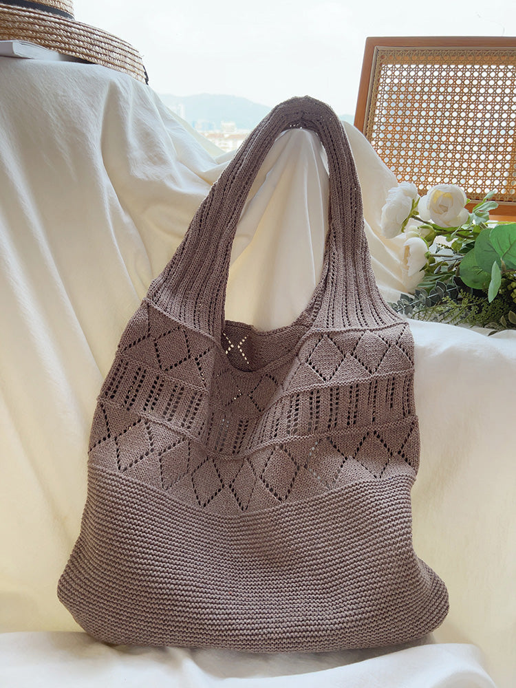 Retro Cotton Knitted Shoulder Bag, Fashion Casual Bag, Handmade Gift for Her, Women's Hand Woven Bag