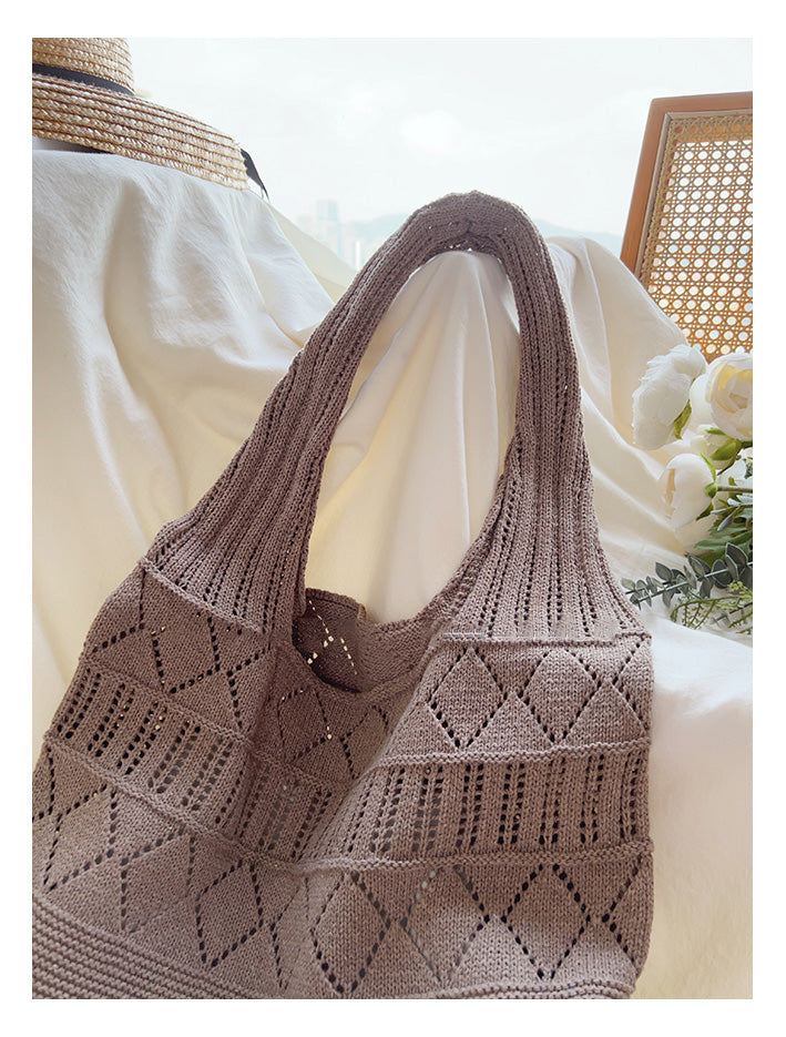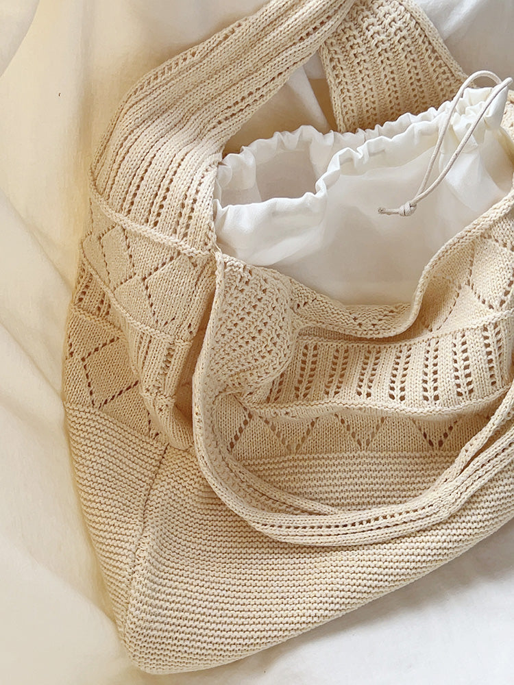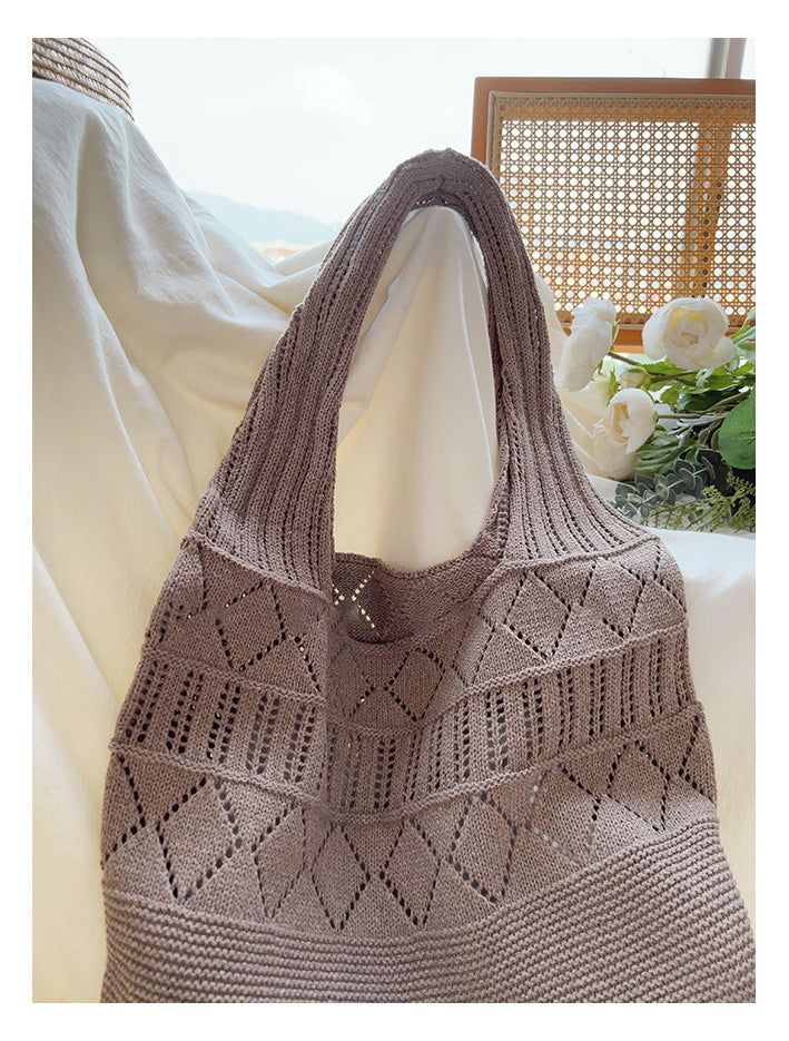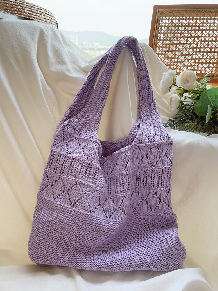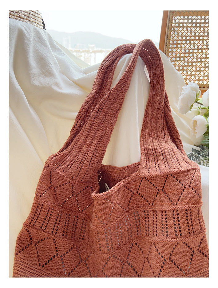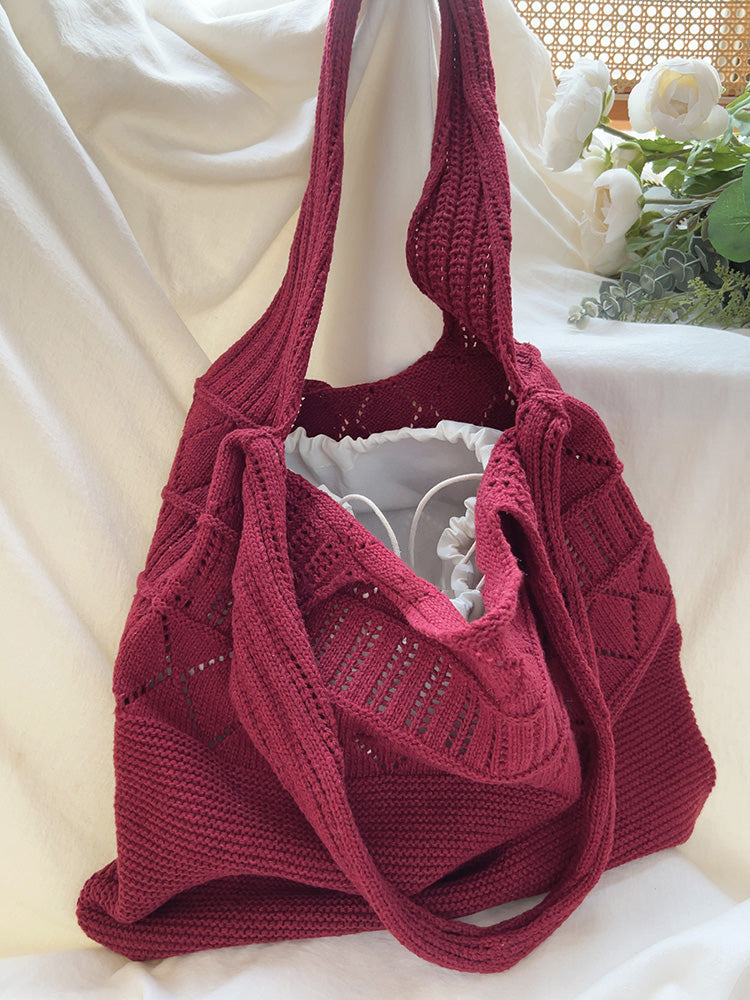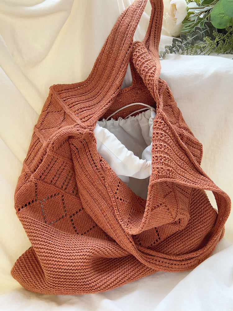 Retro Cotton Knitted Shoulder Bag, Fashion Casual Bag, Handmade Gift for Her, Women's Hand Woven Bag