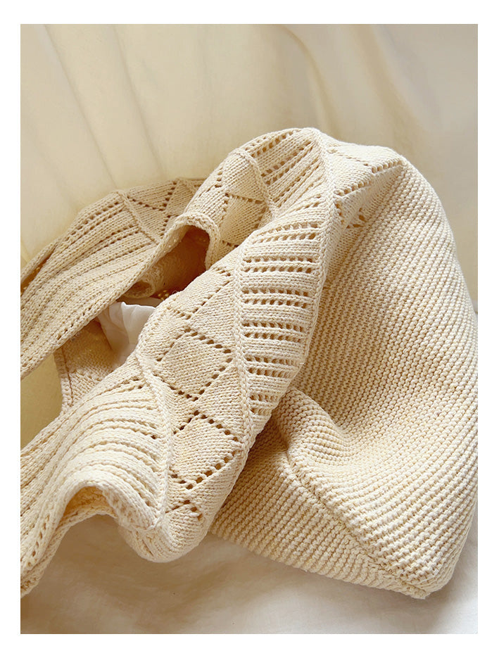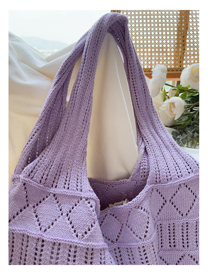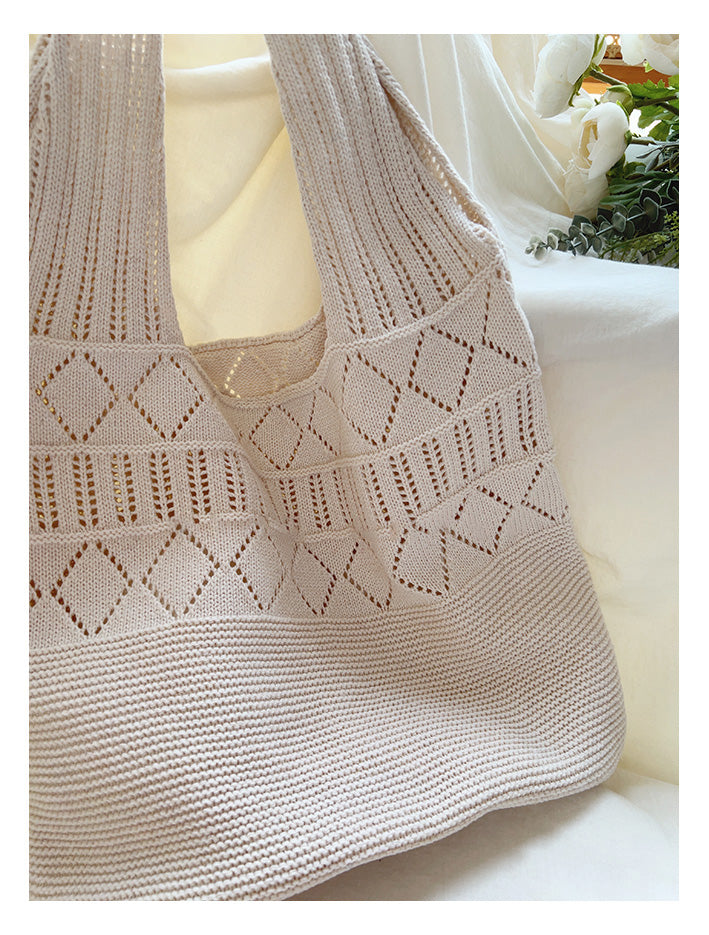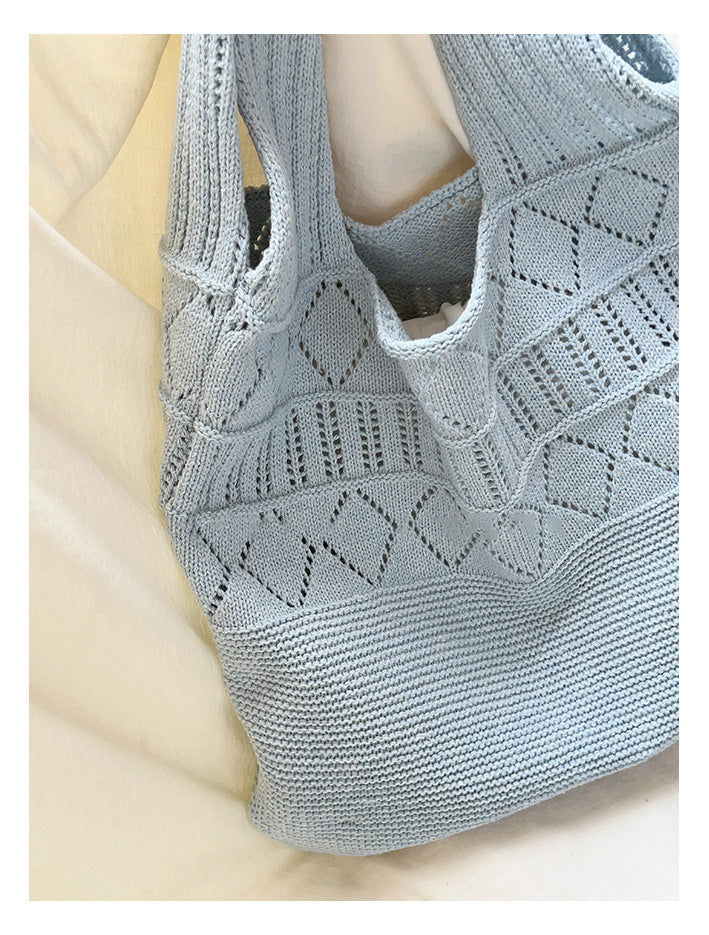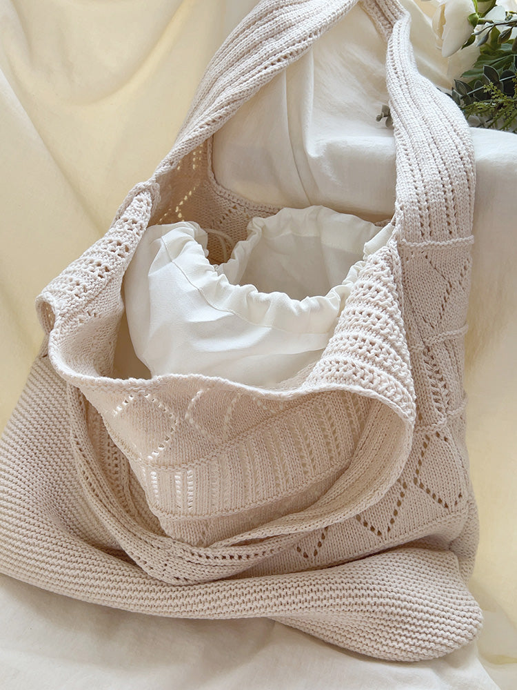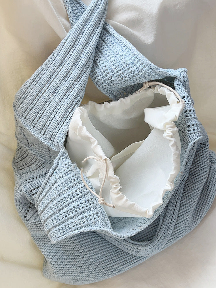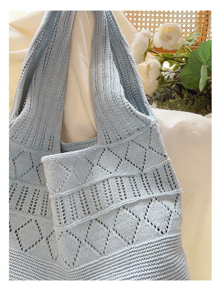 Retro Cotton Knitted Shoulder Bag, Fashion Casual Bag, Handmade Gift for Her, Women's Hand Woven Bag