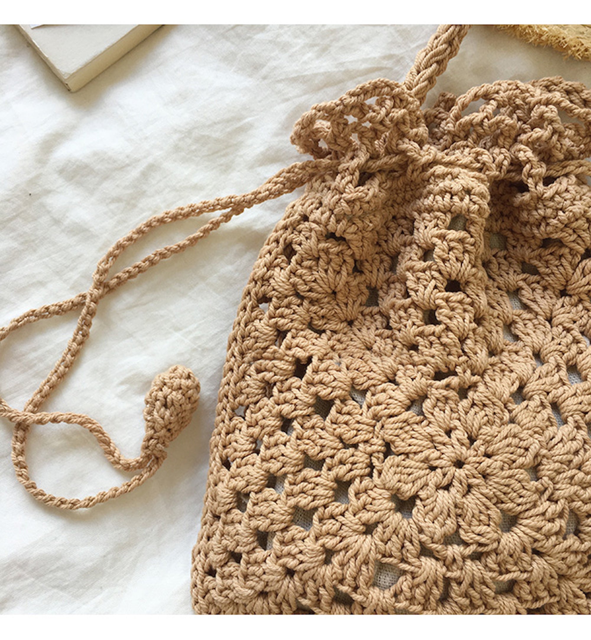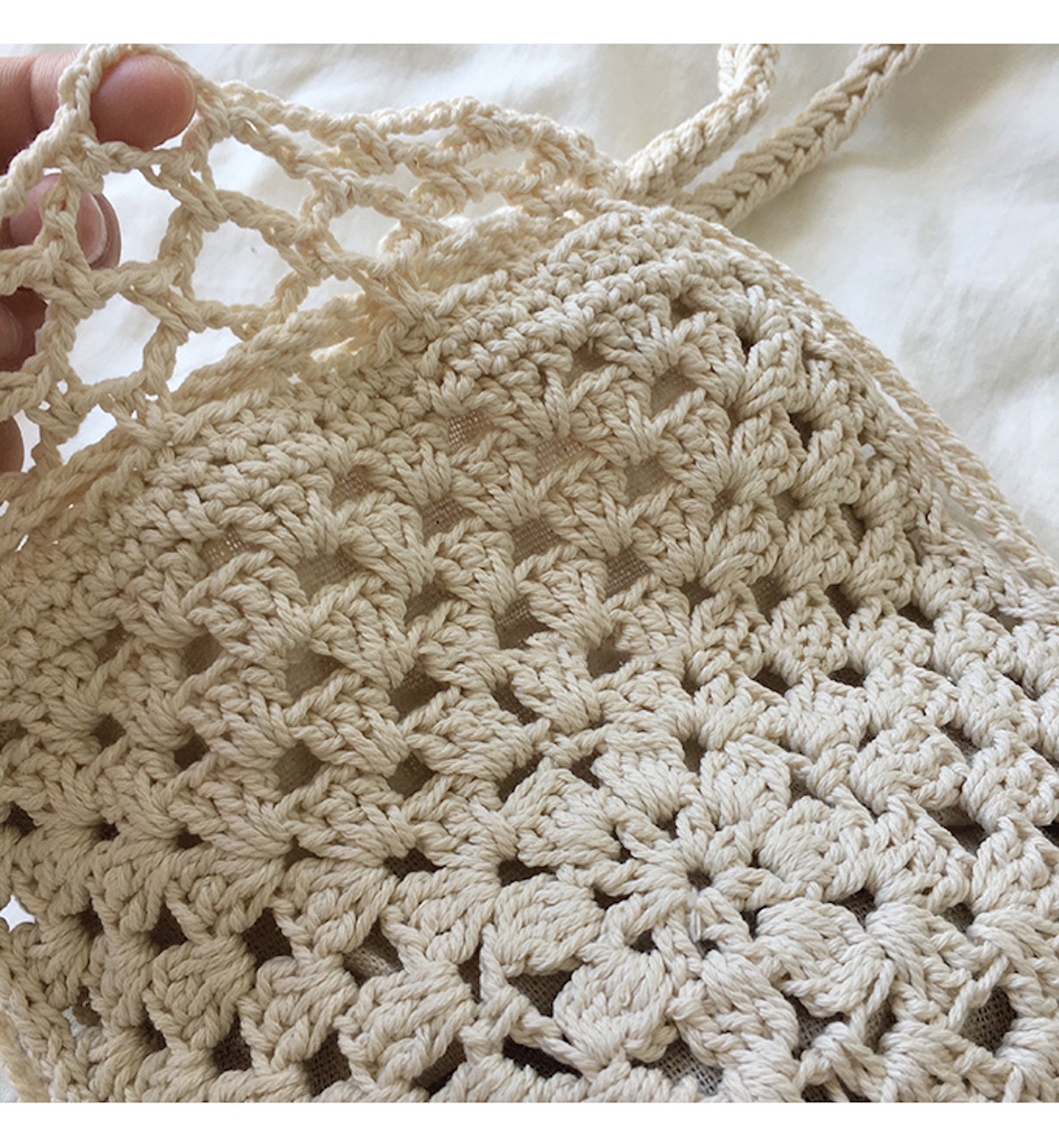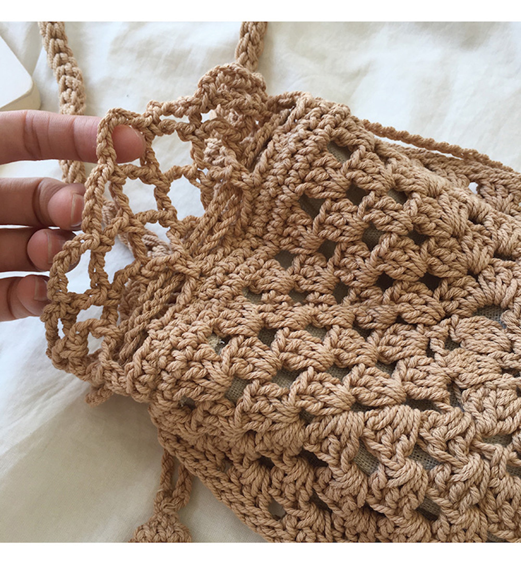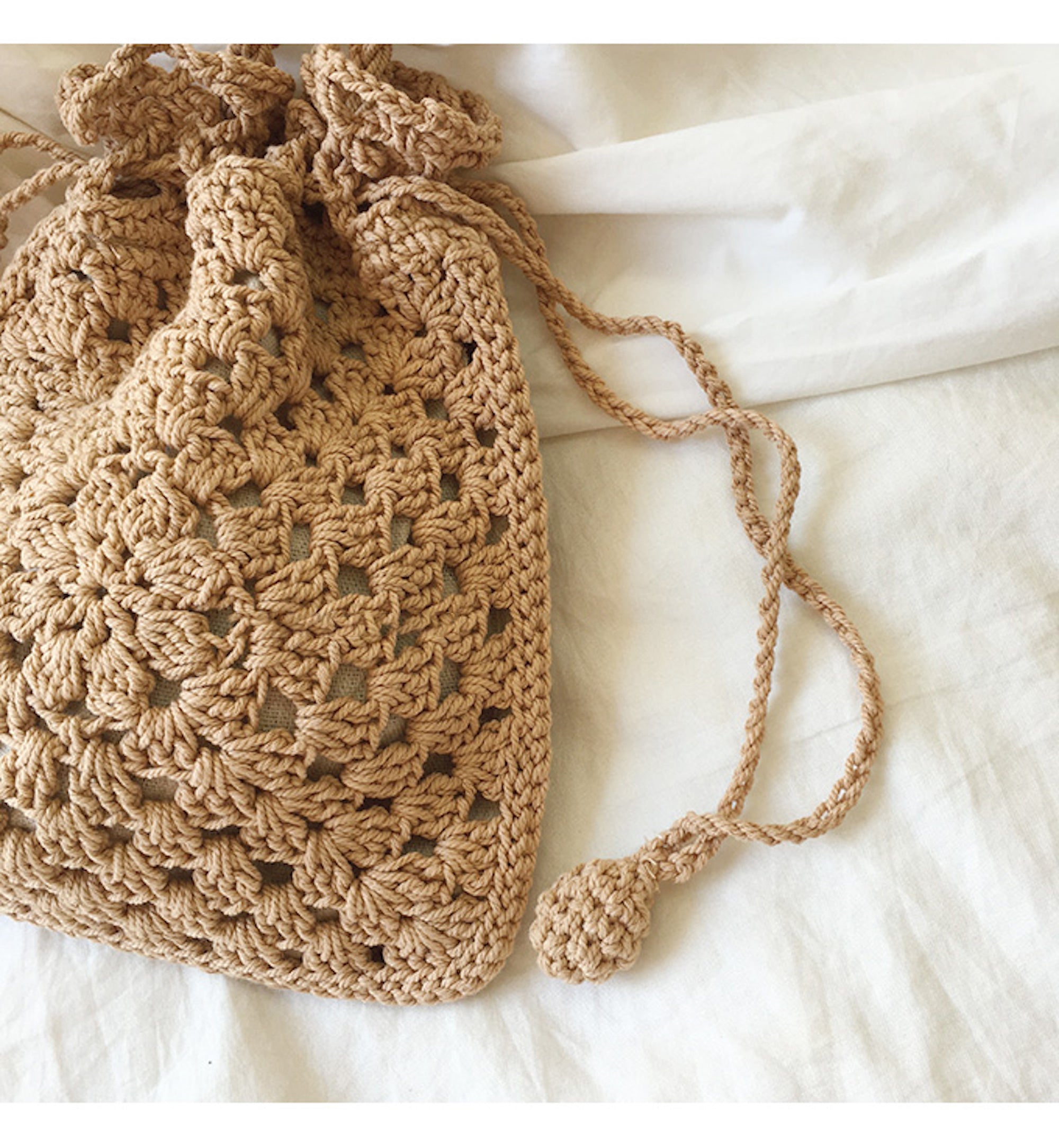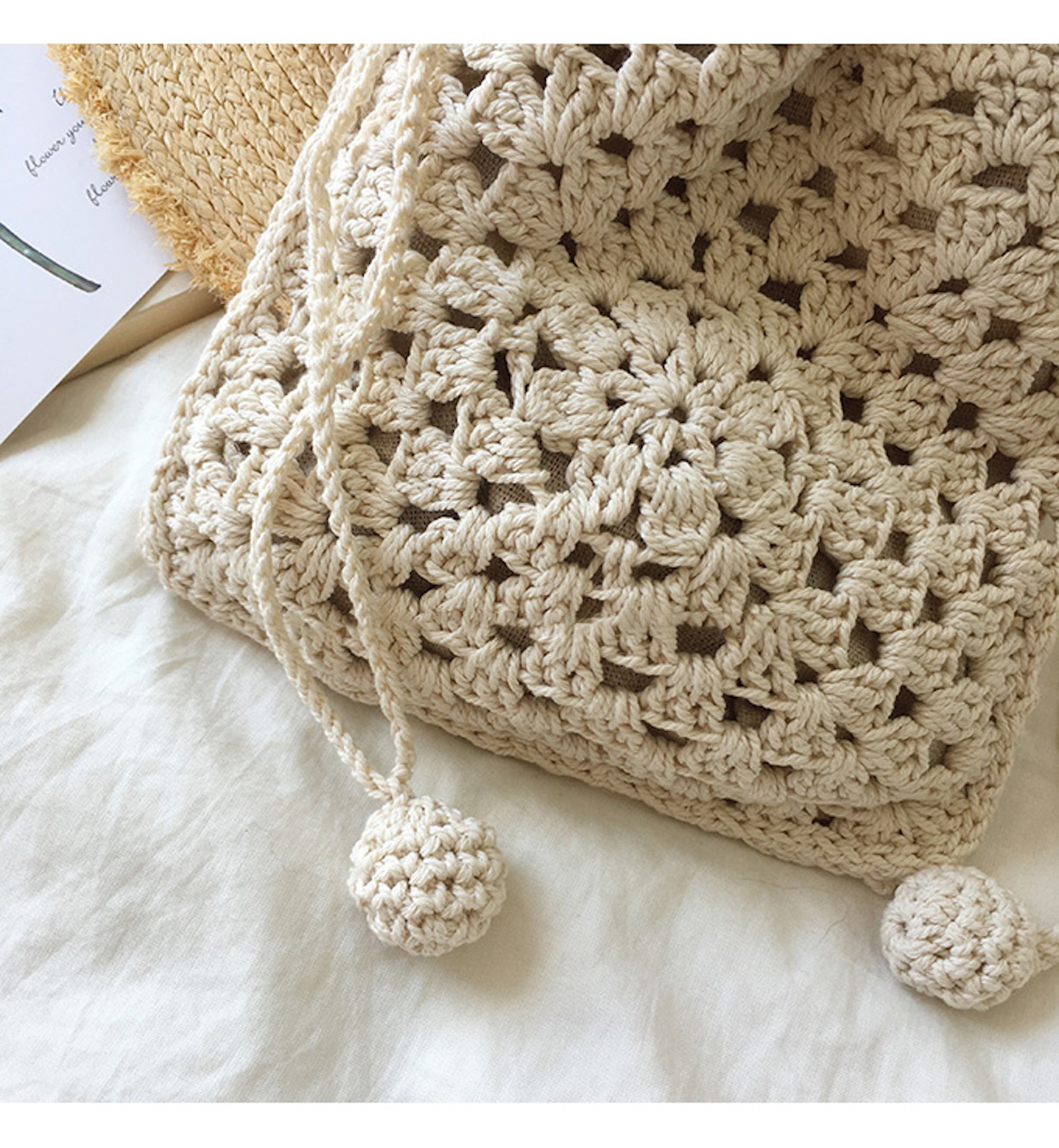 Retro Cotton Knitted Shoulder Bucket Bag with Tassel, Hand Crochet Woven Purse, Fashion Casual Bag, Crossbody Bag Women's Purse Shoulder Bag