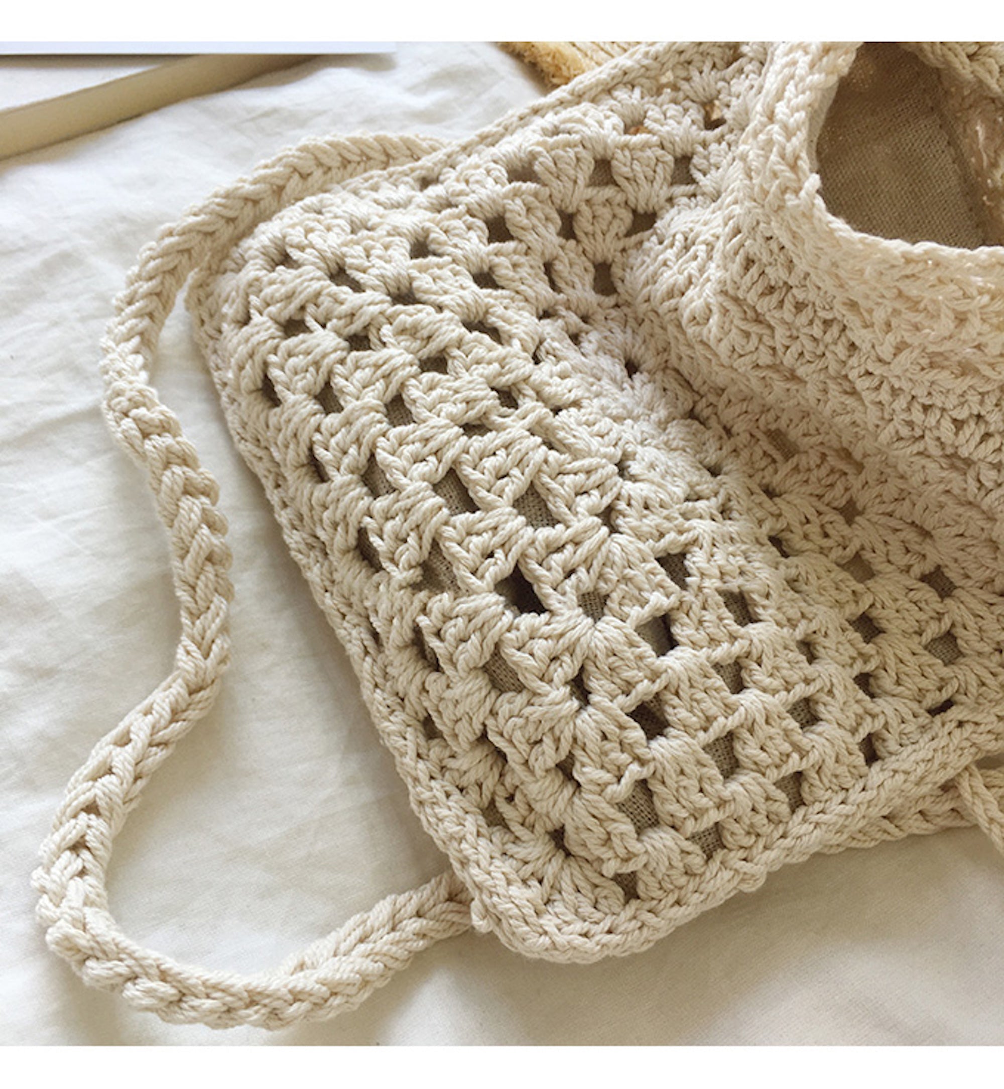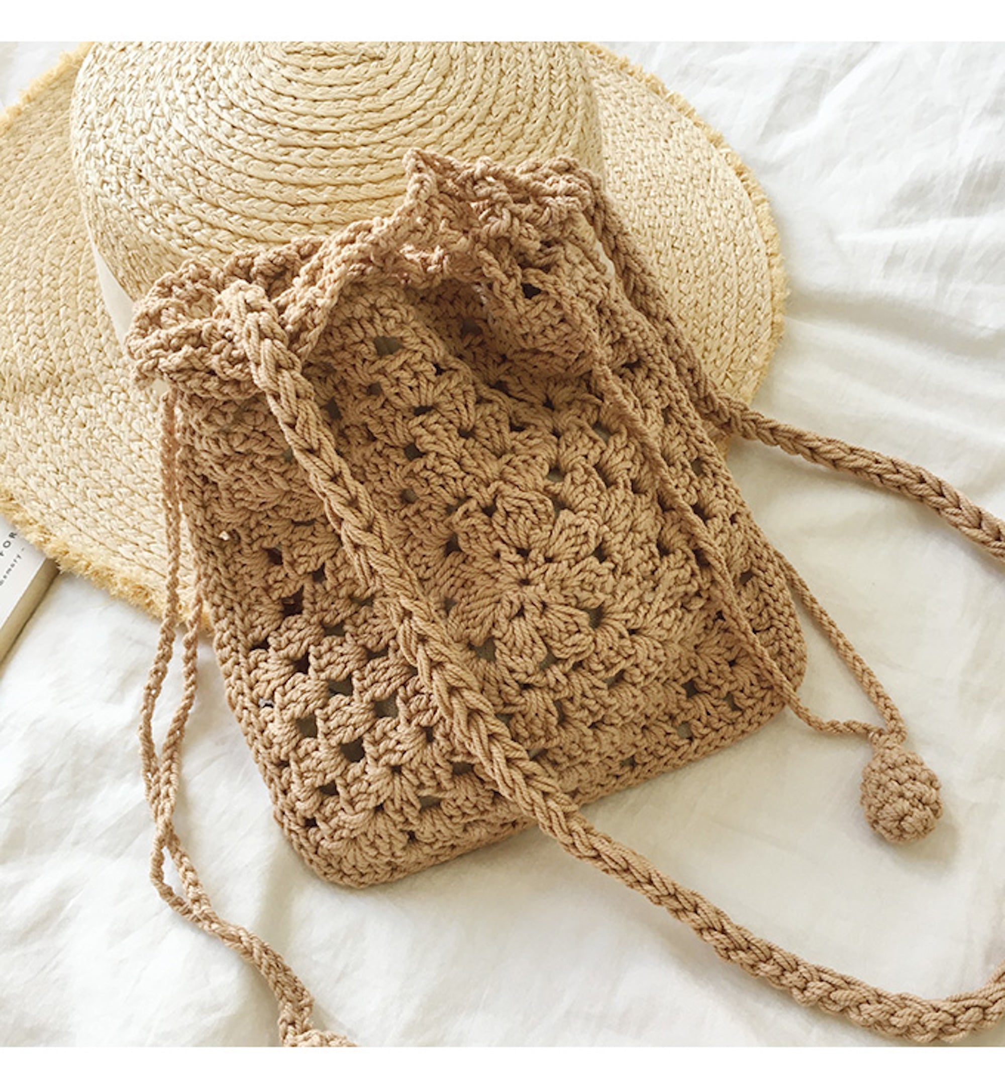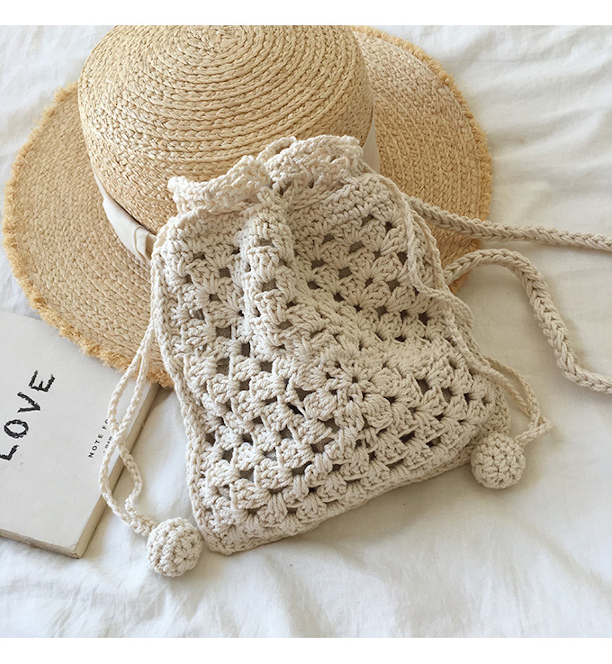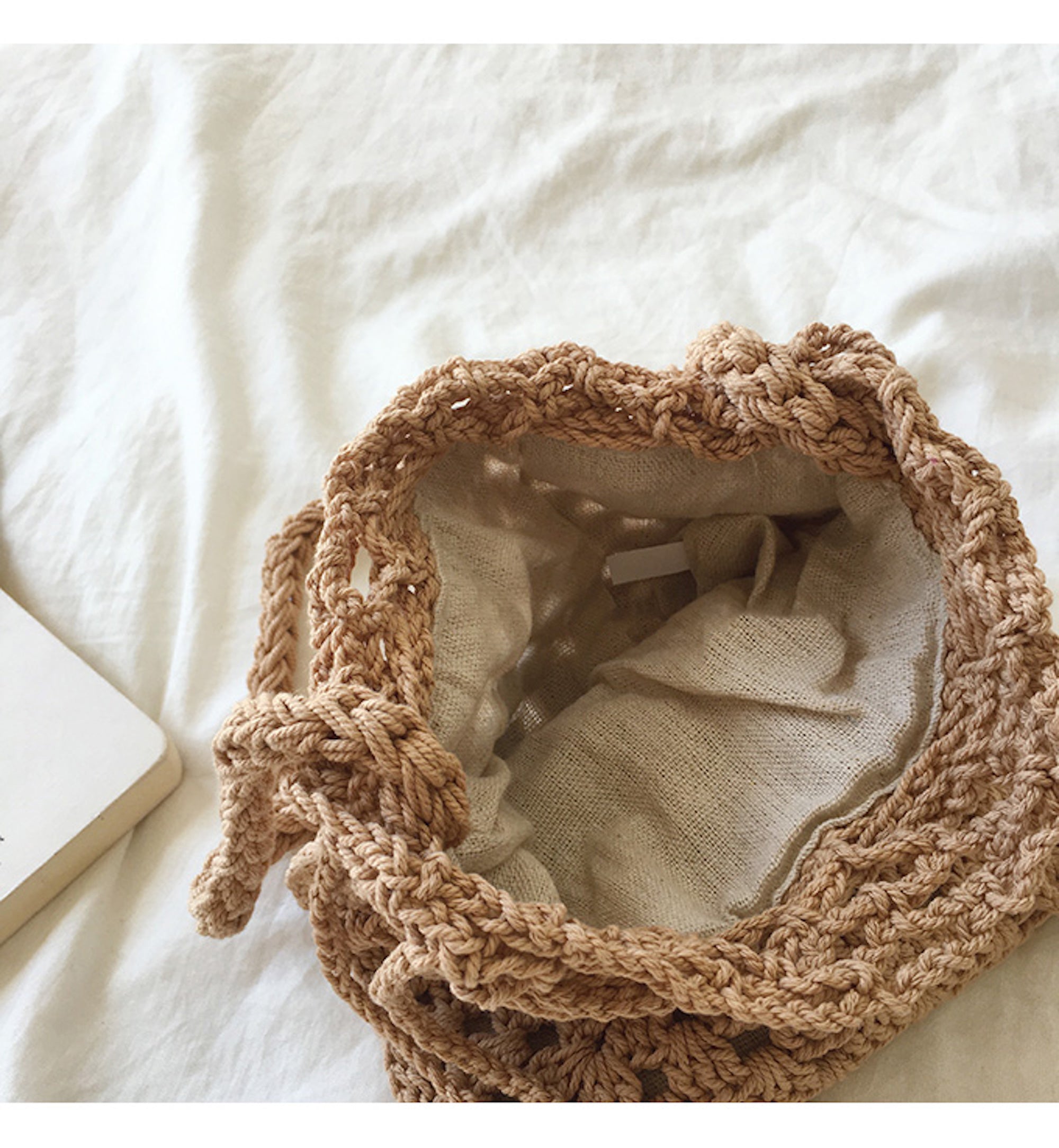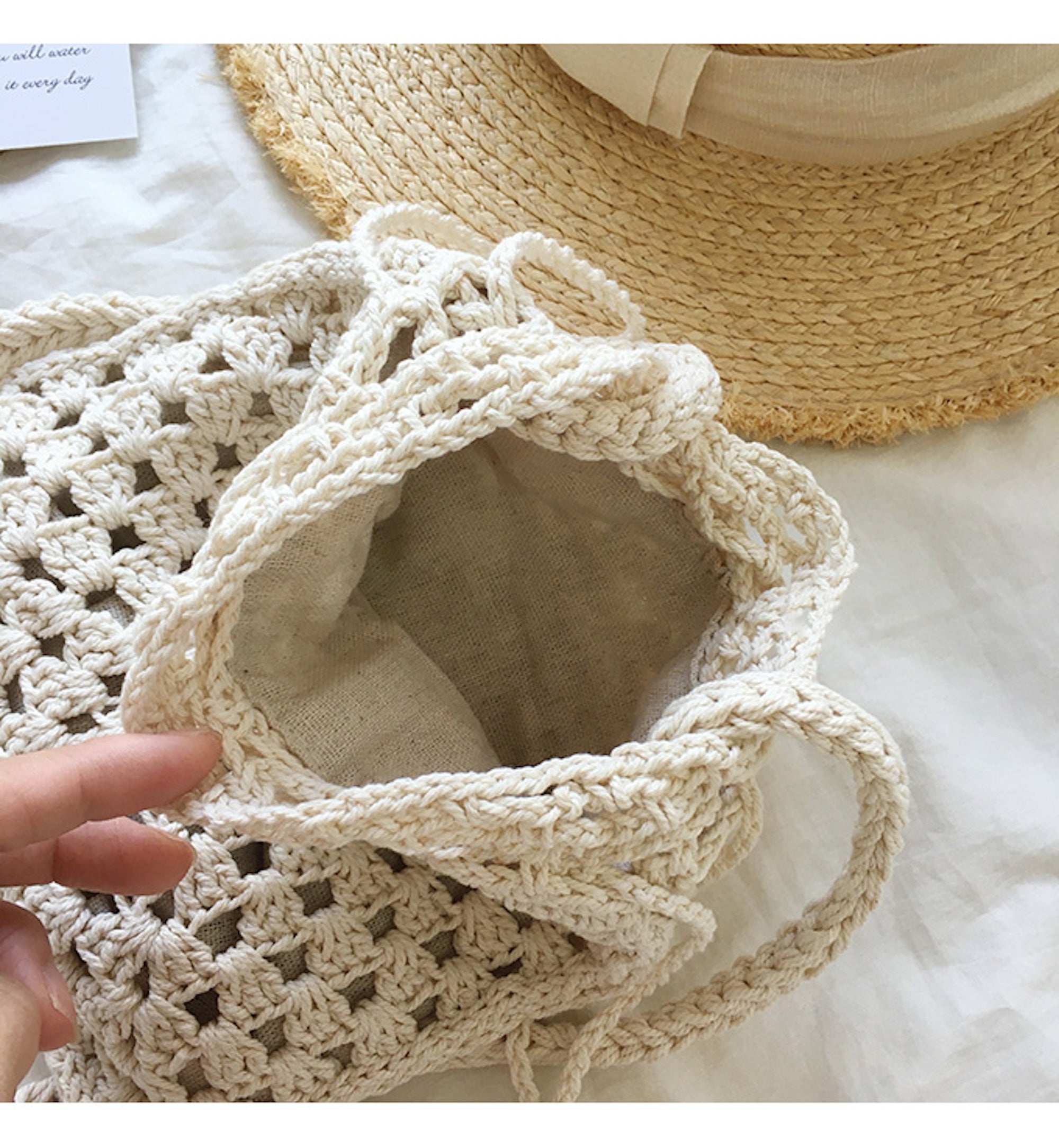 Retro Cotton Knitted Shoulder Bucket Bag with Tassel, Hand Crochet Woven Purse, Fashion Casual Bag, Crossbody Bag Women's Purse Shoulder Bag