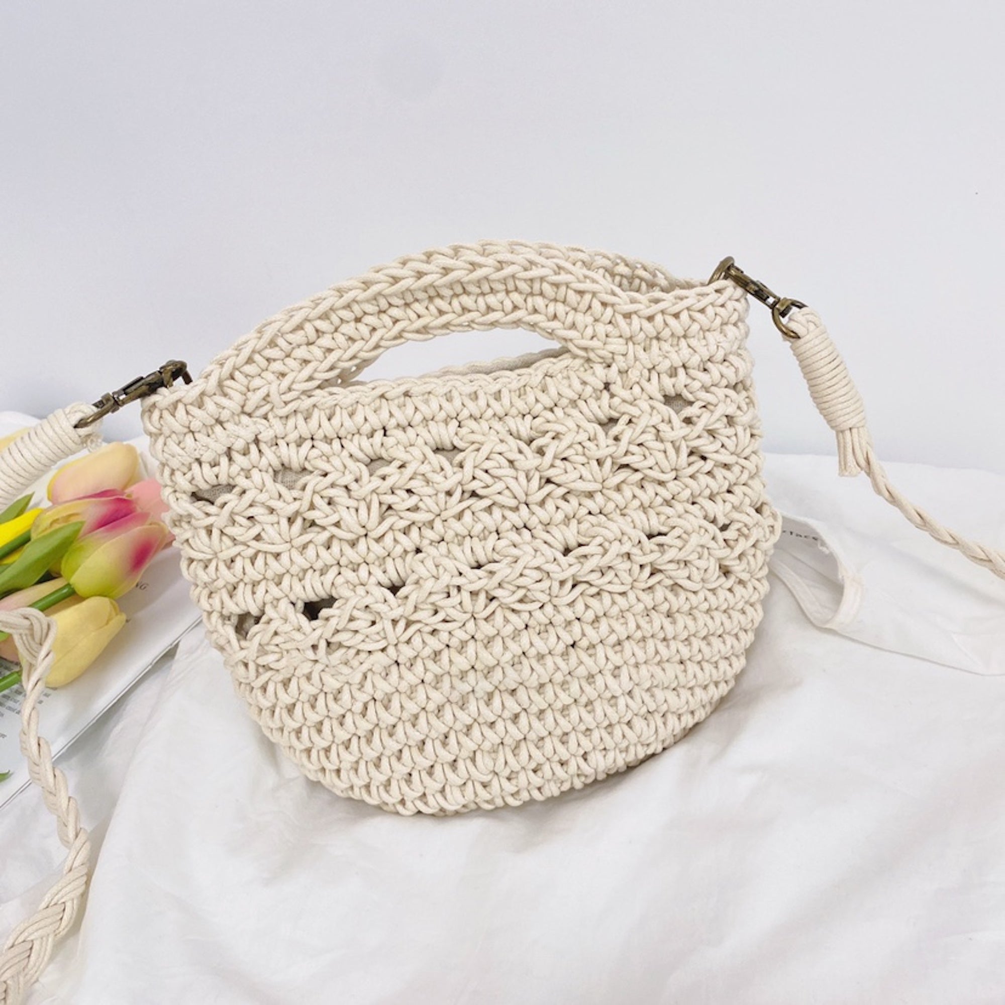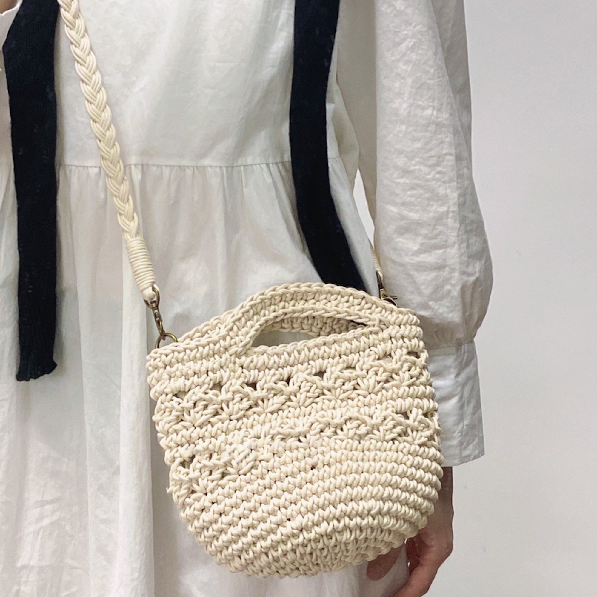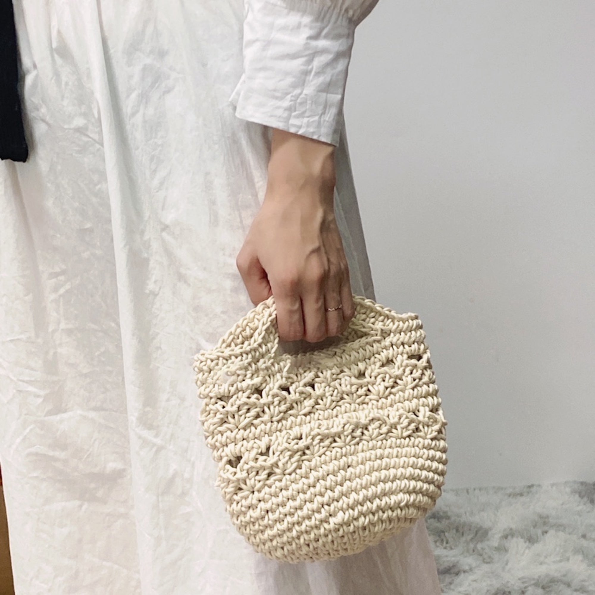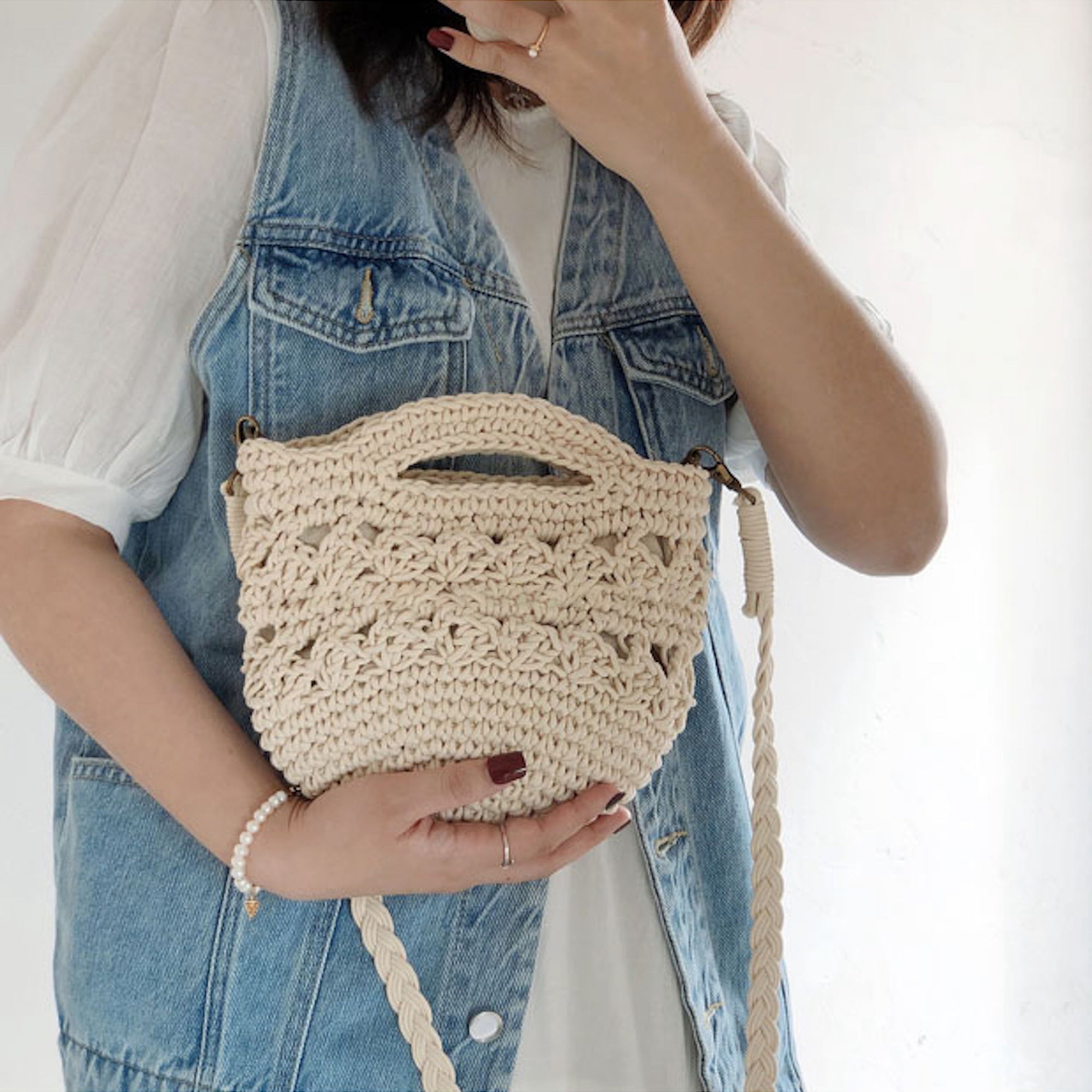 Retro style minimalistic cotton twine bag in 2 colors. This bag will instantly add a retro vibe to your outfit, with its classic crochet design and colors that compliment all denim and white blouse combinations.
