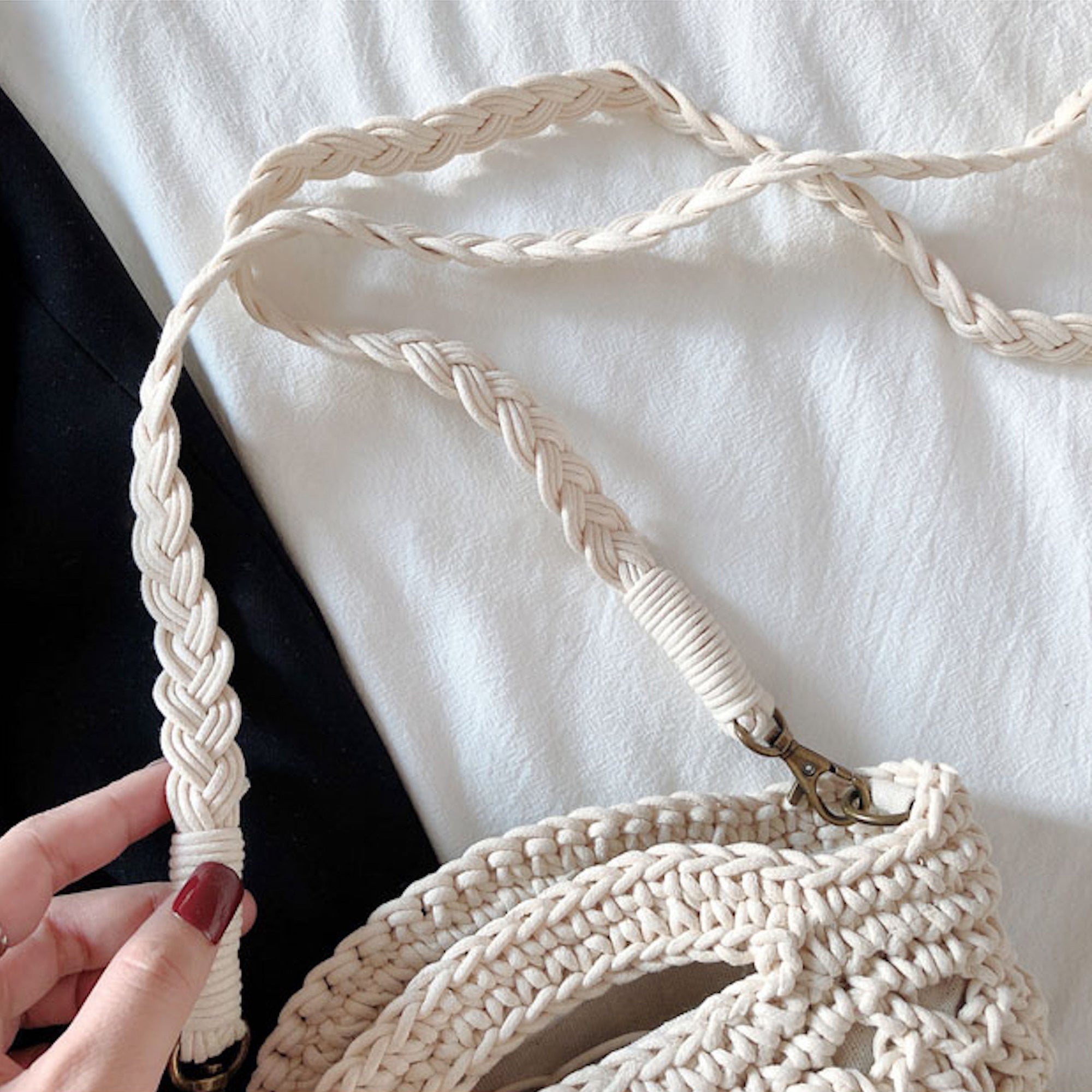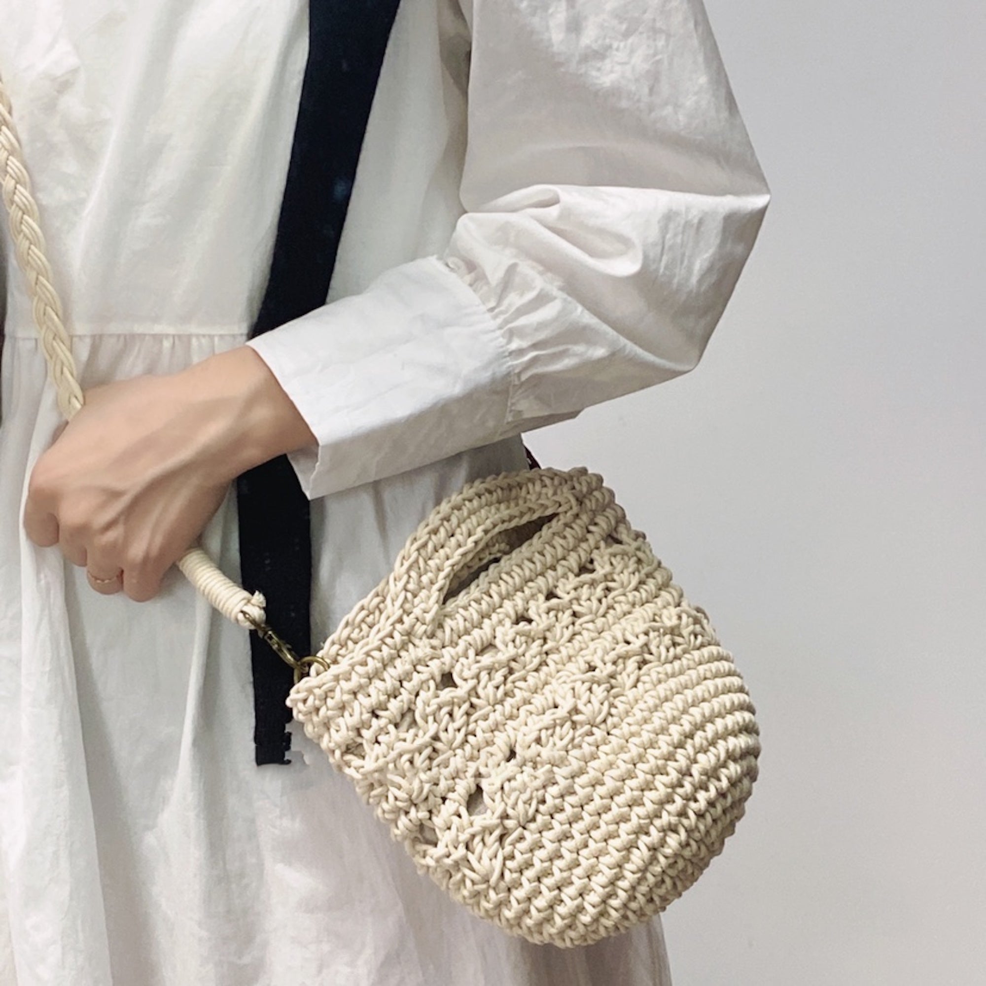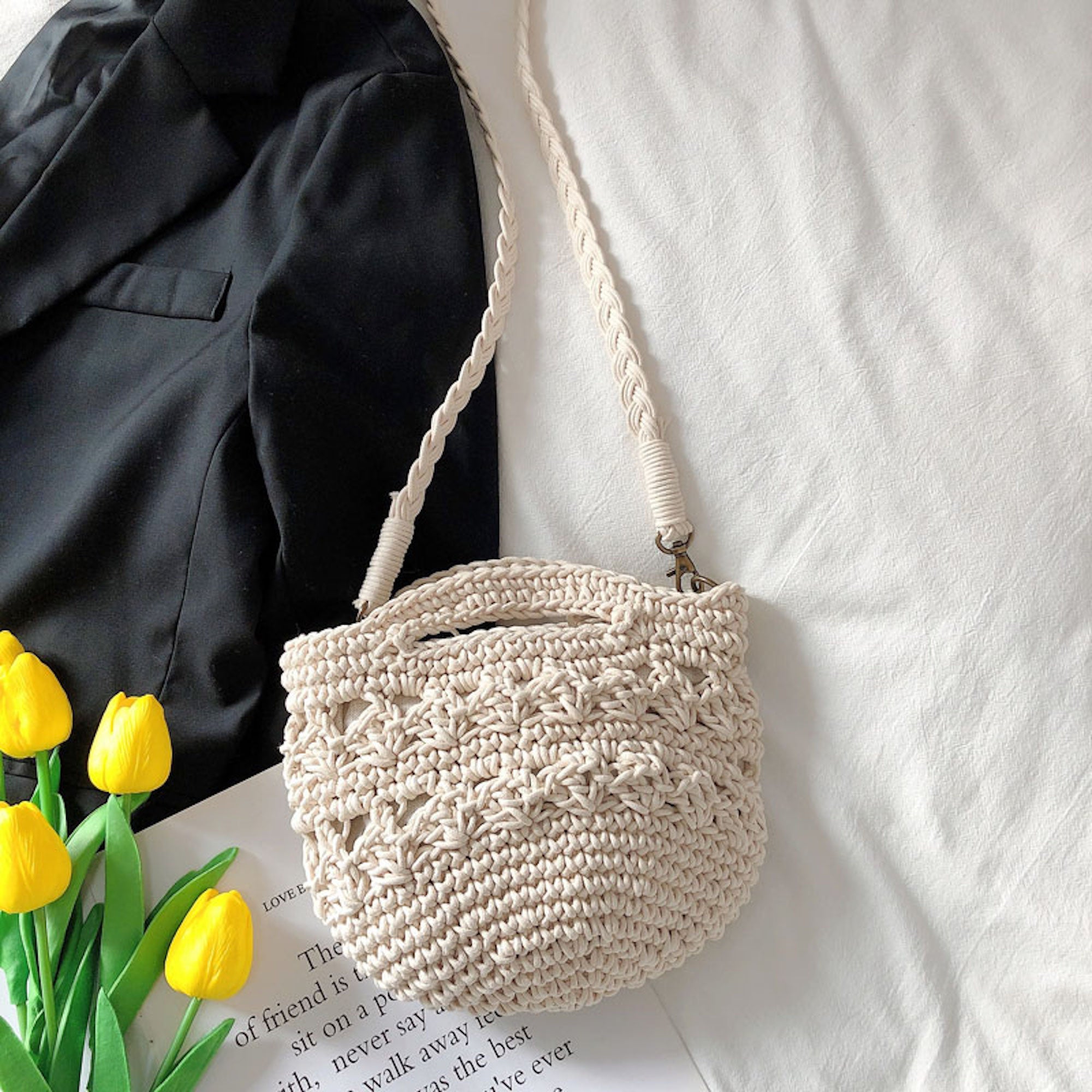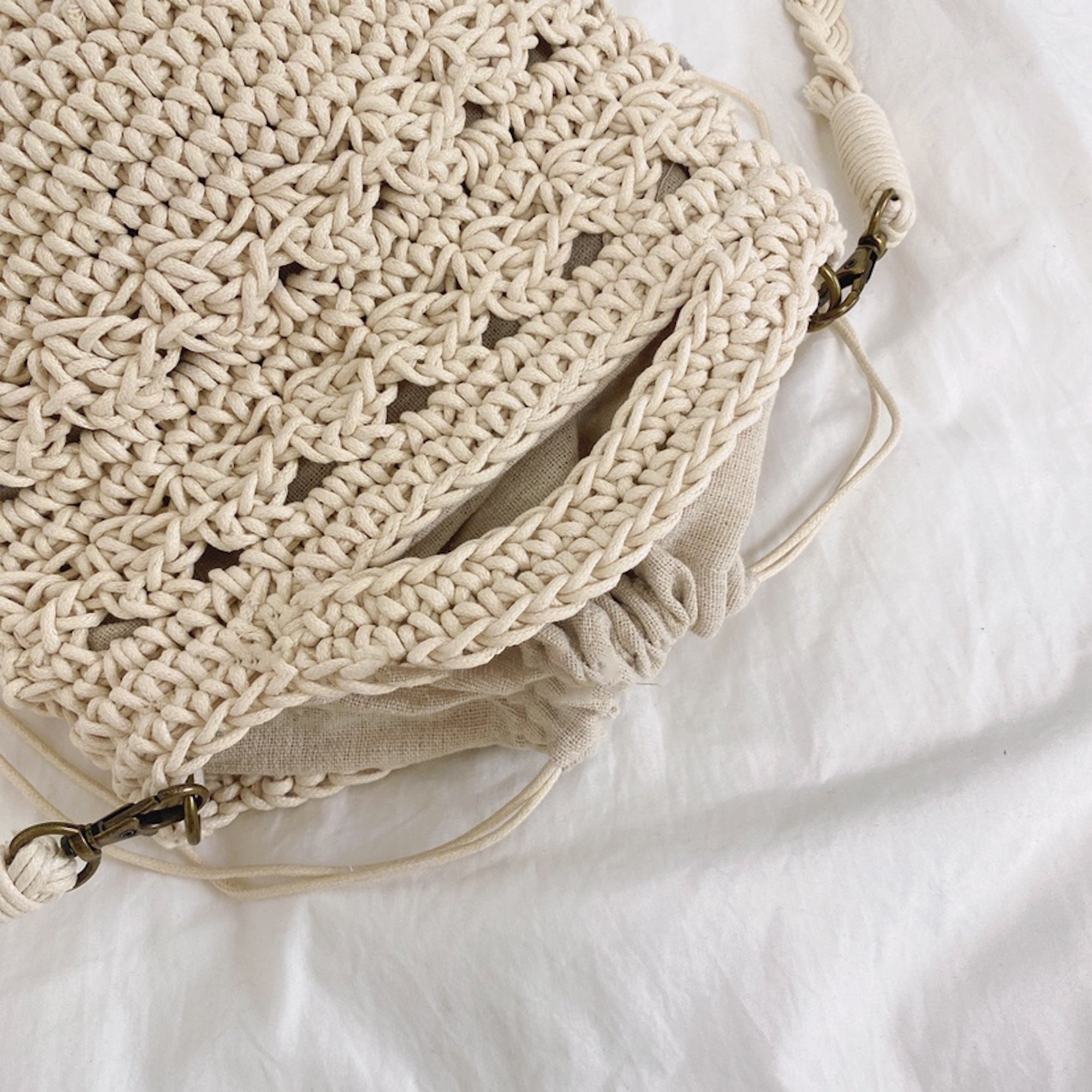 Retro style minimalistic cotton twine bag in 2 colors. This bag will instantly add a retro vibe to your outfit, with its classic crochet design and colors that compliment all denim and white blouse combinations.