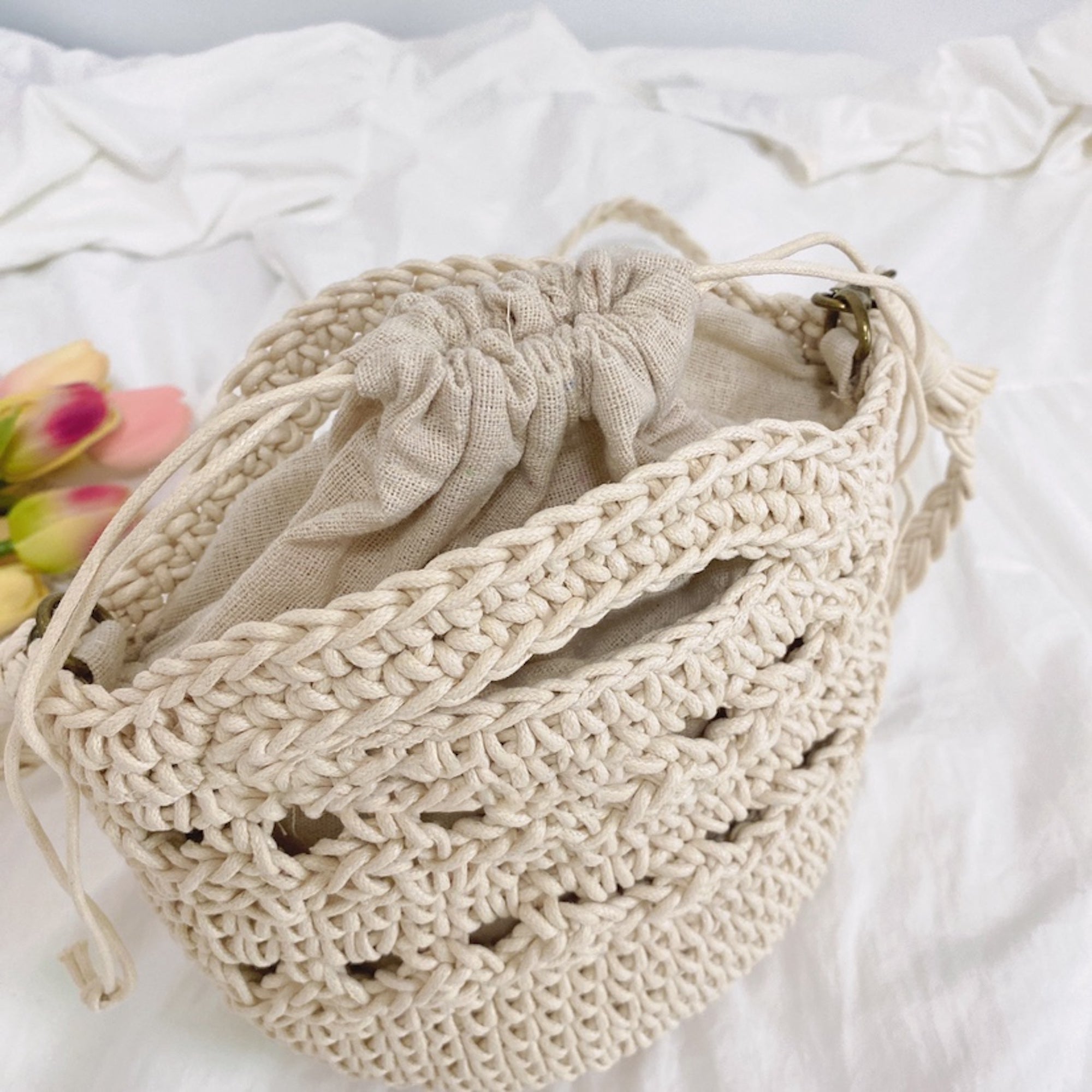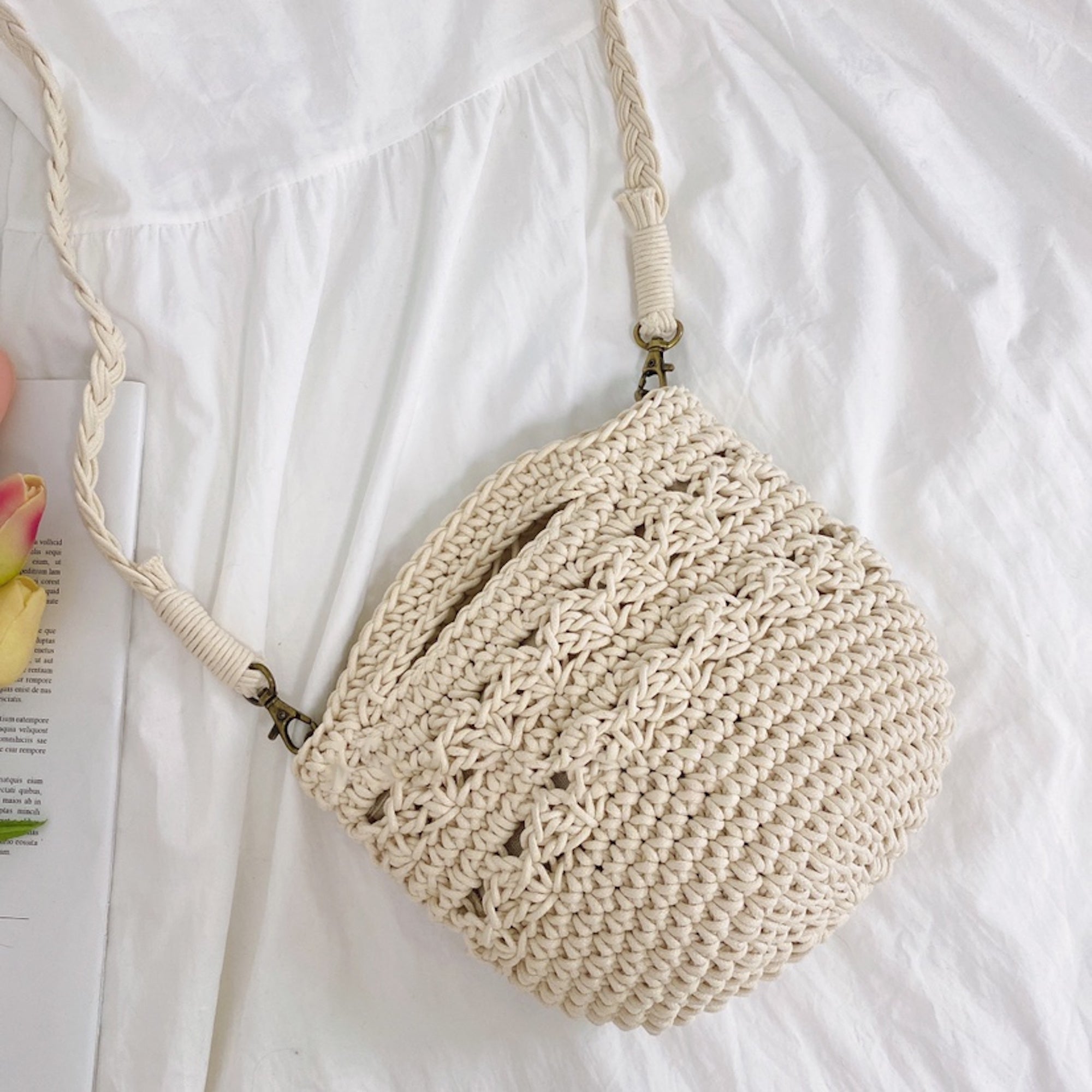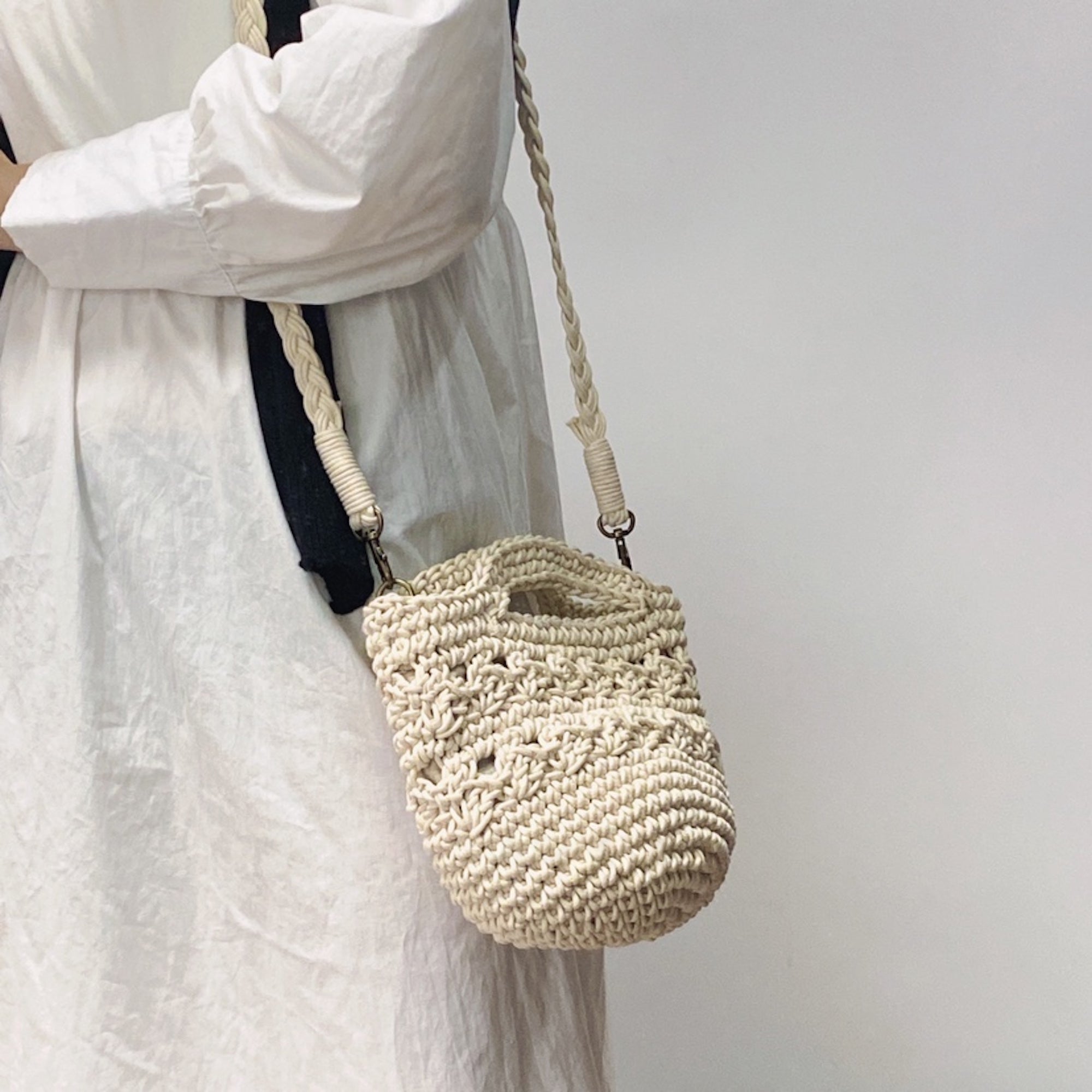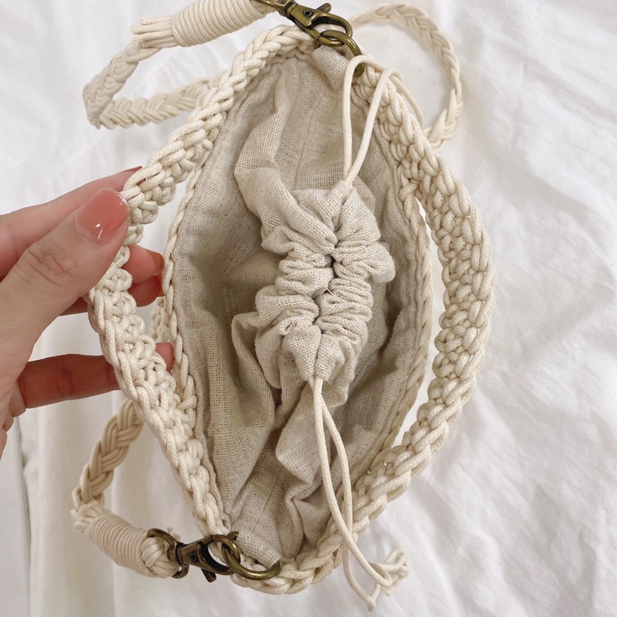 Retro style minimalistic cotton twine bag in 2 colors. This bag will instantly add a retro vibe to your outfit, with its classic crochet design and colors that compliment all denim and white blouse combinations.