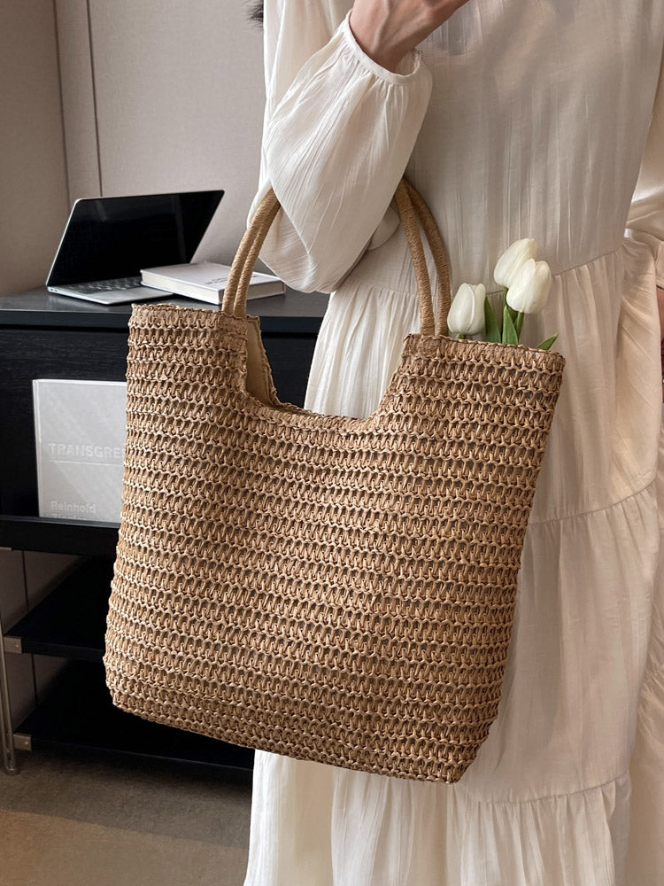 Retro Straw Woven Tote Bag, Summer Bag, Everyday Shoulder Bag, Beach Bag