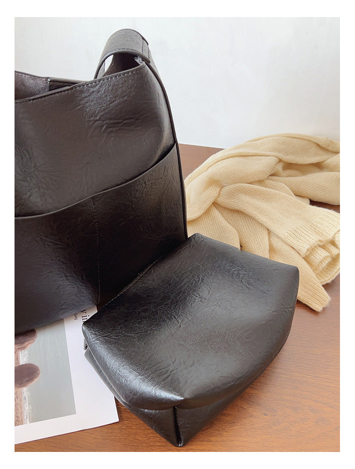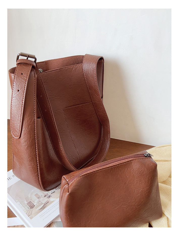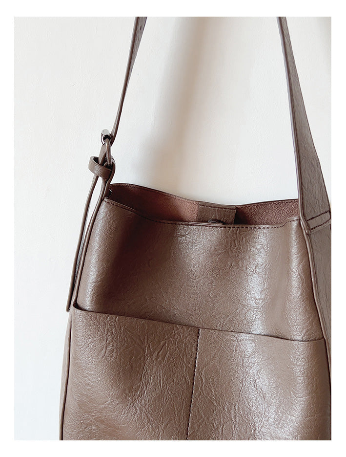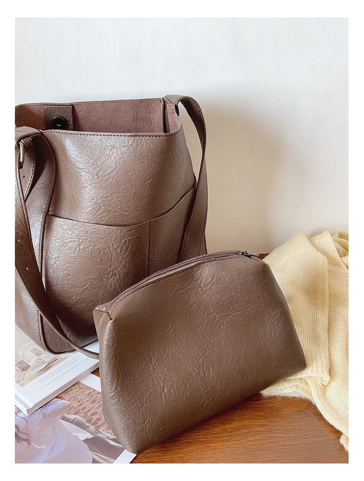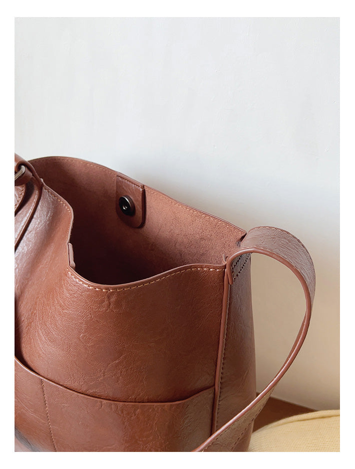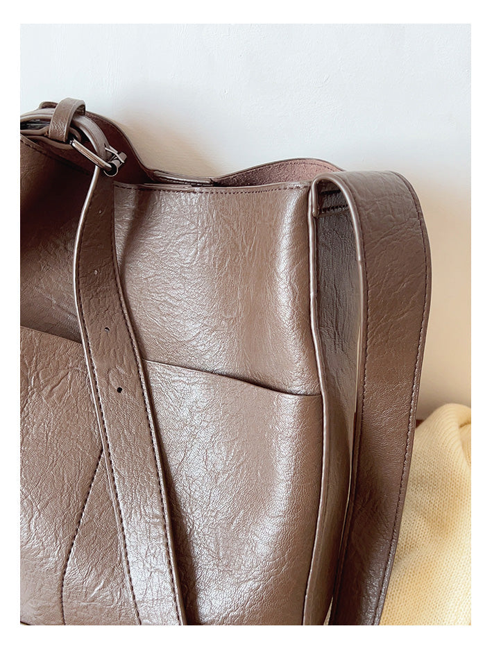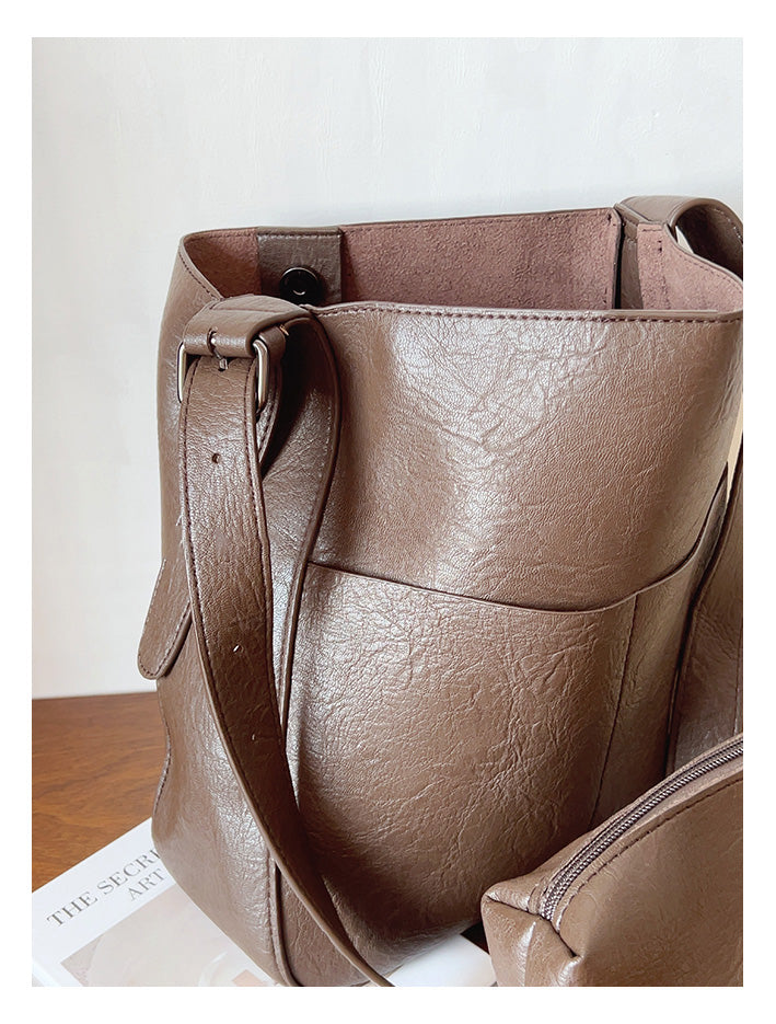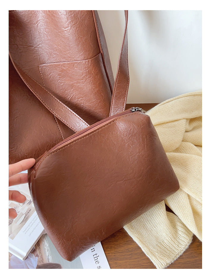 Leather Tote Bag with Shoulder Strap and Inner Pouch