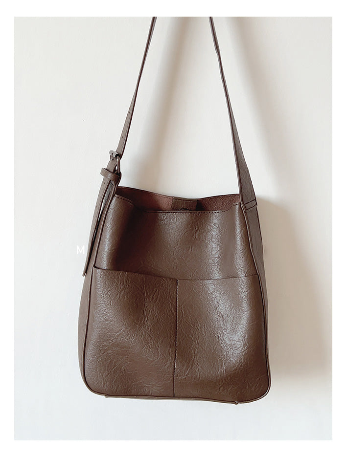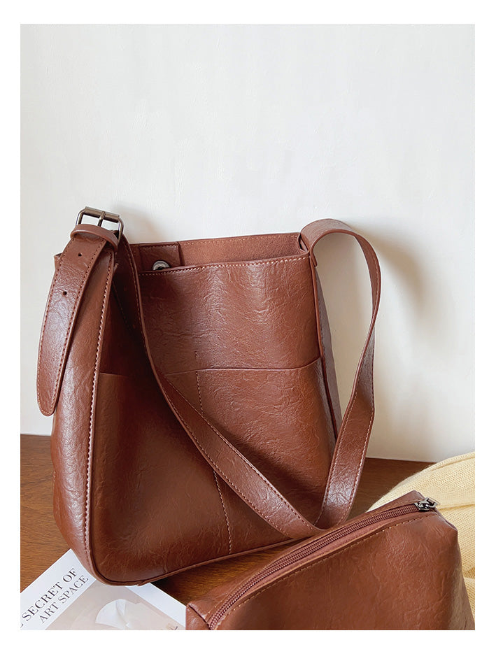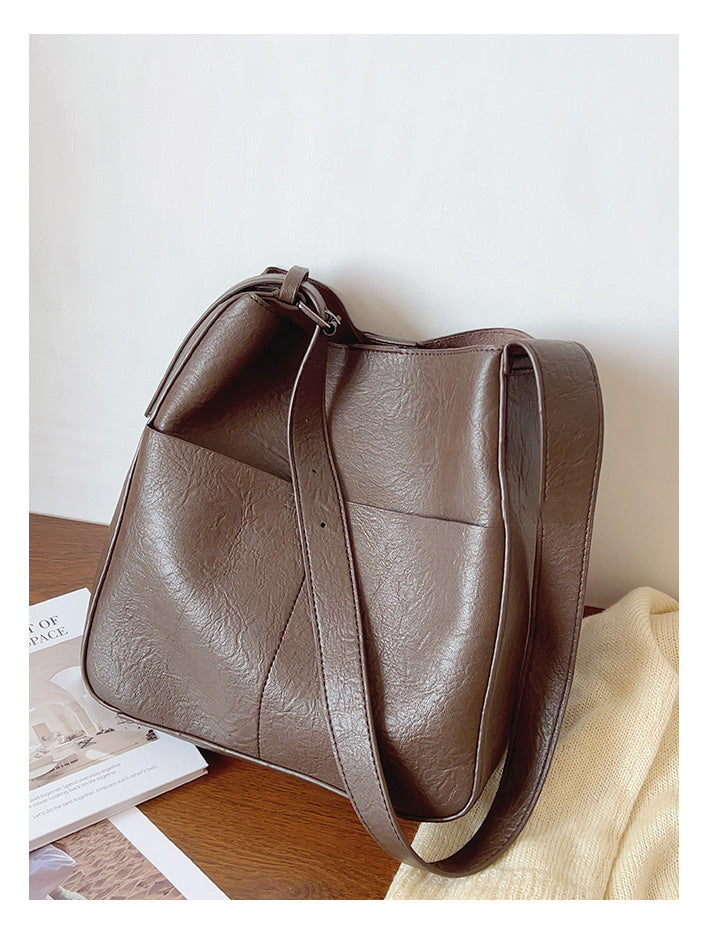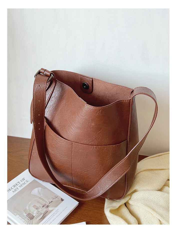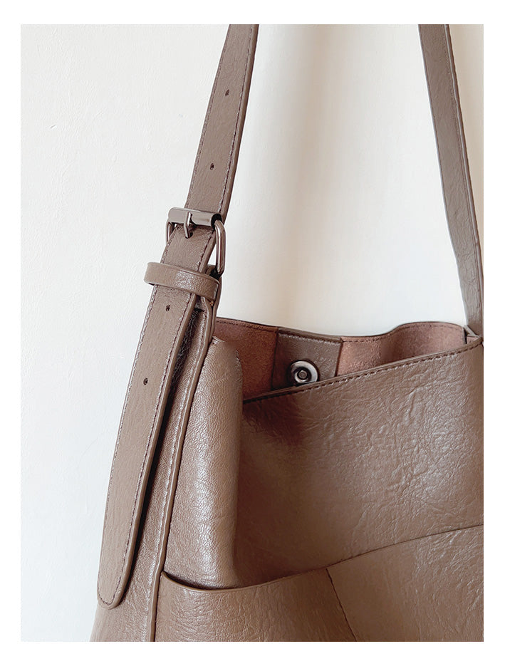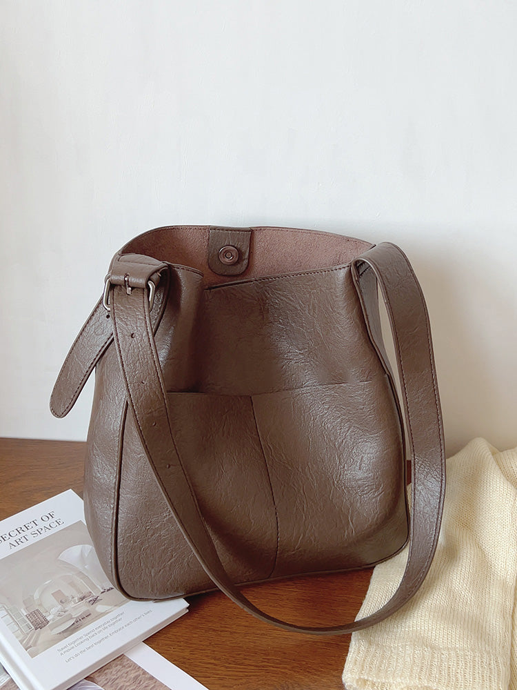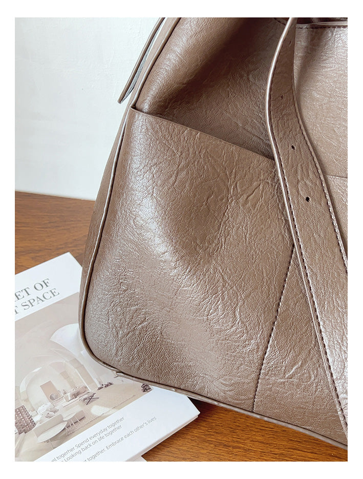 Leather Tote Bag with Shoulder Strap and Inner Pouch