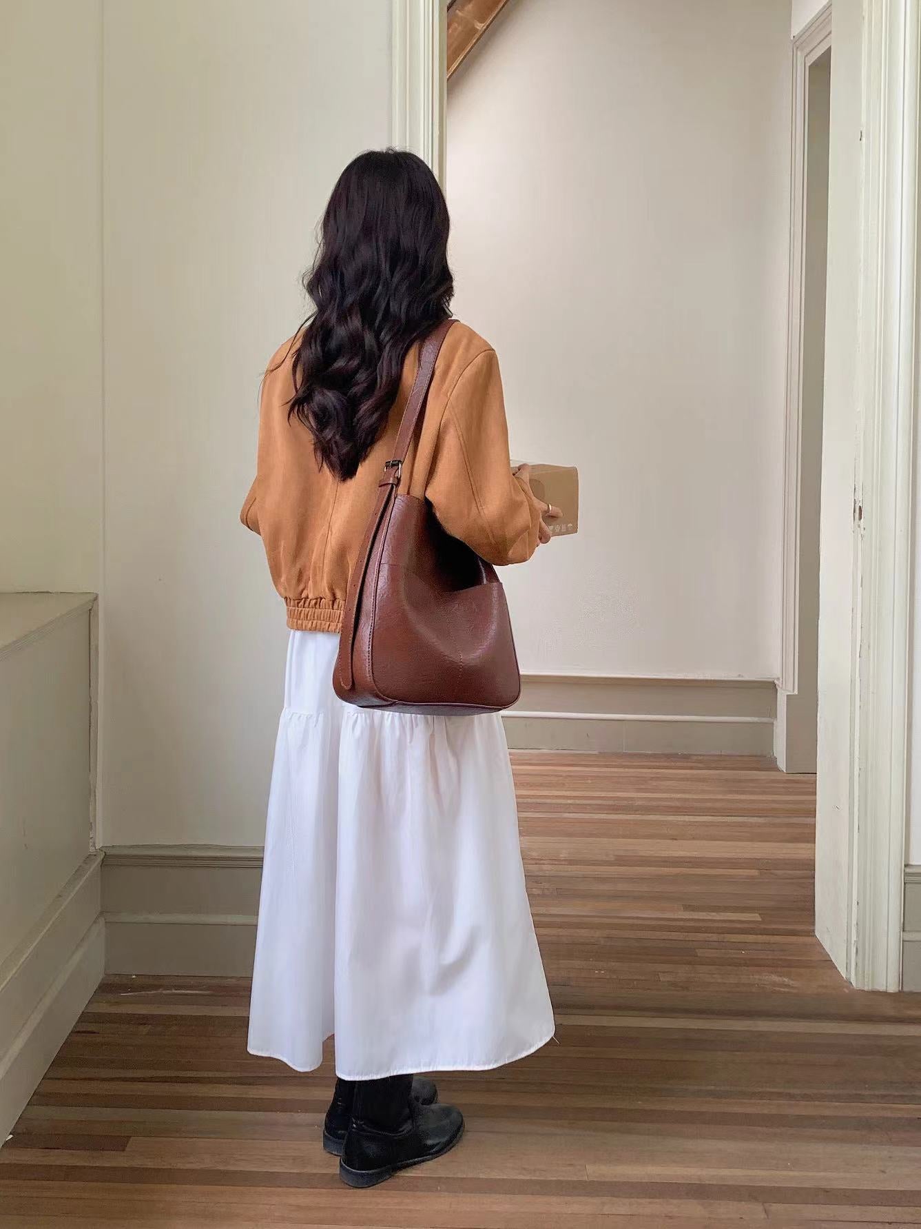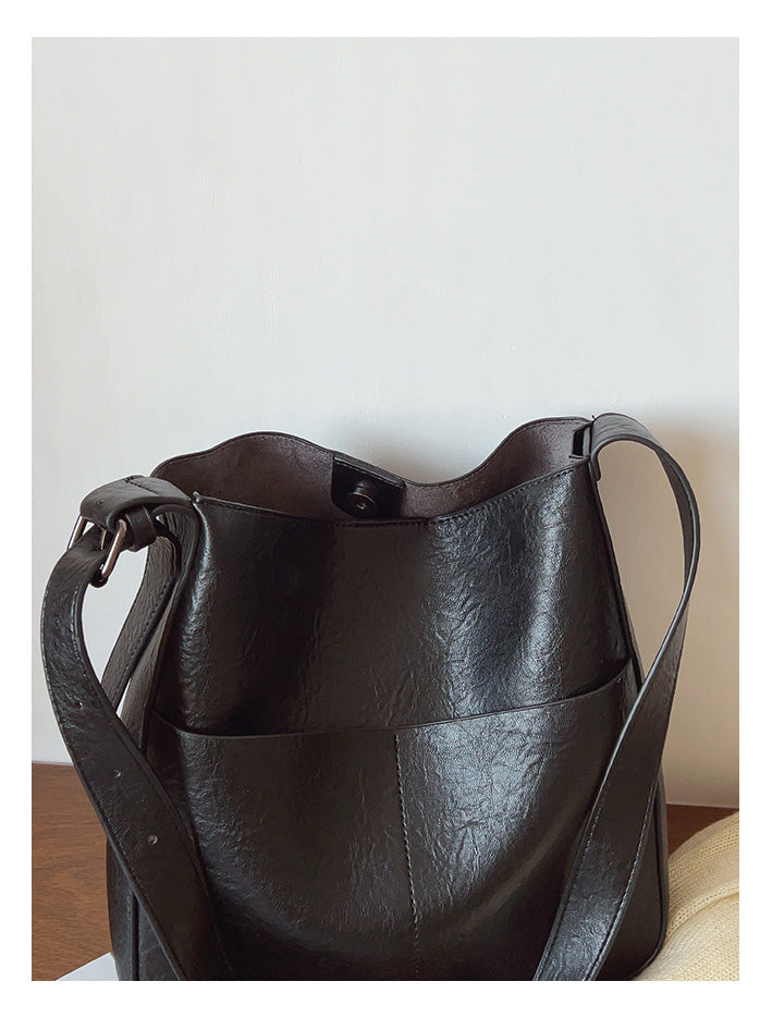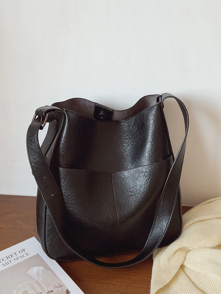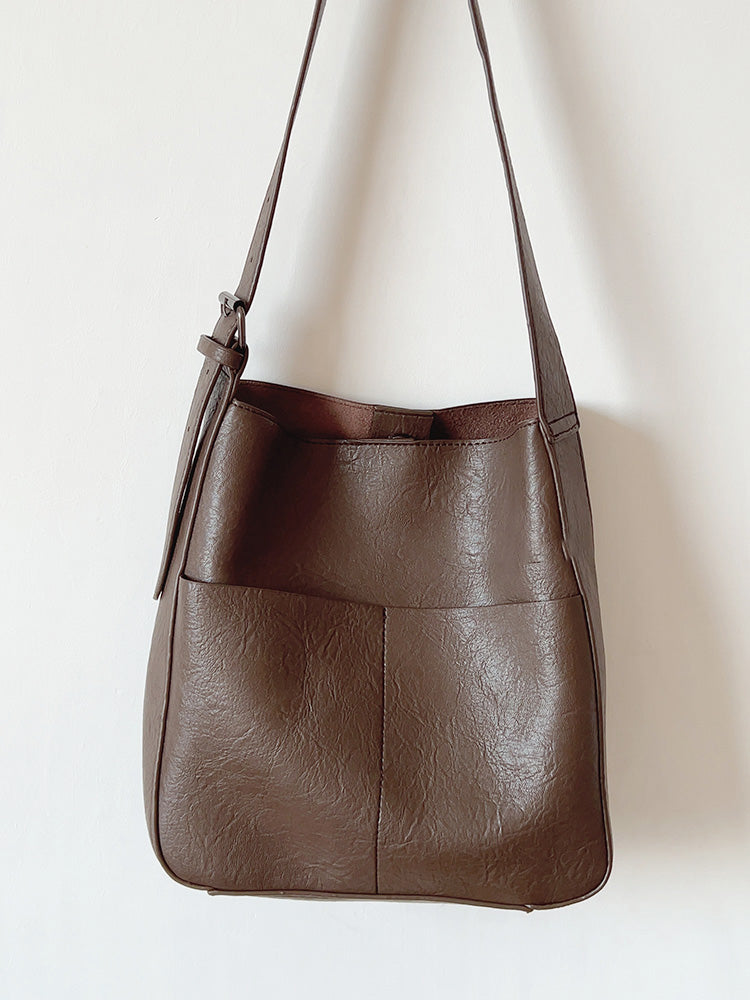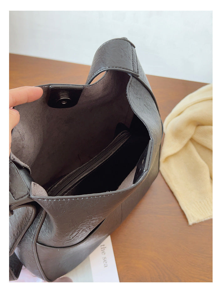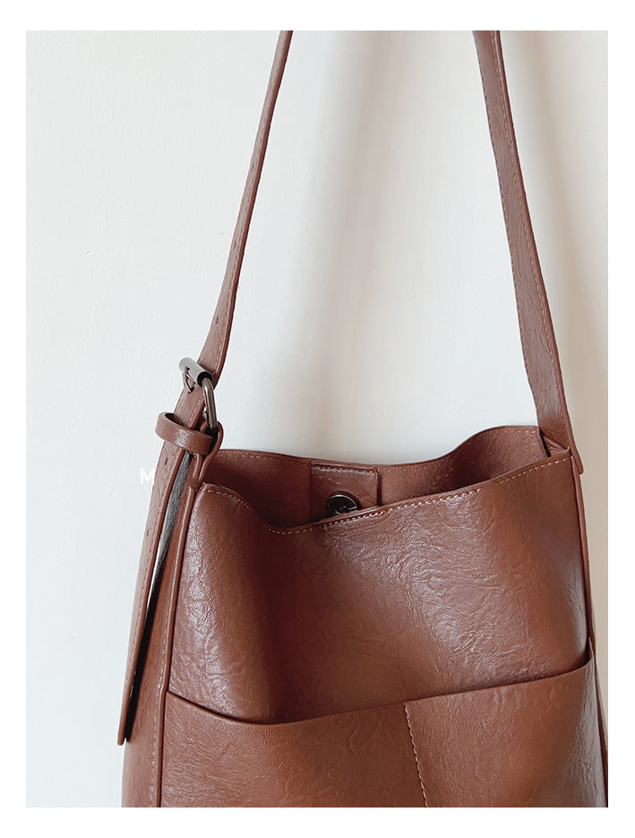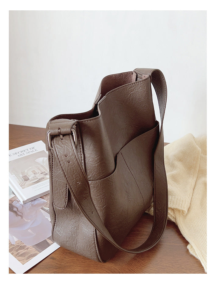 Leather Tote Bag with Shoulder Strap and Inner Pouch
