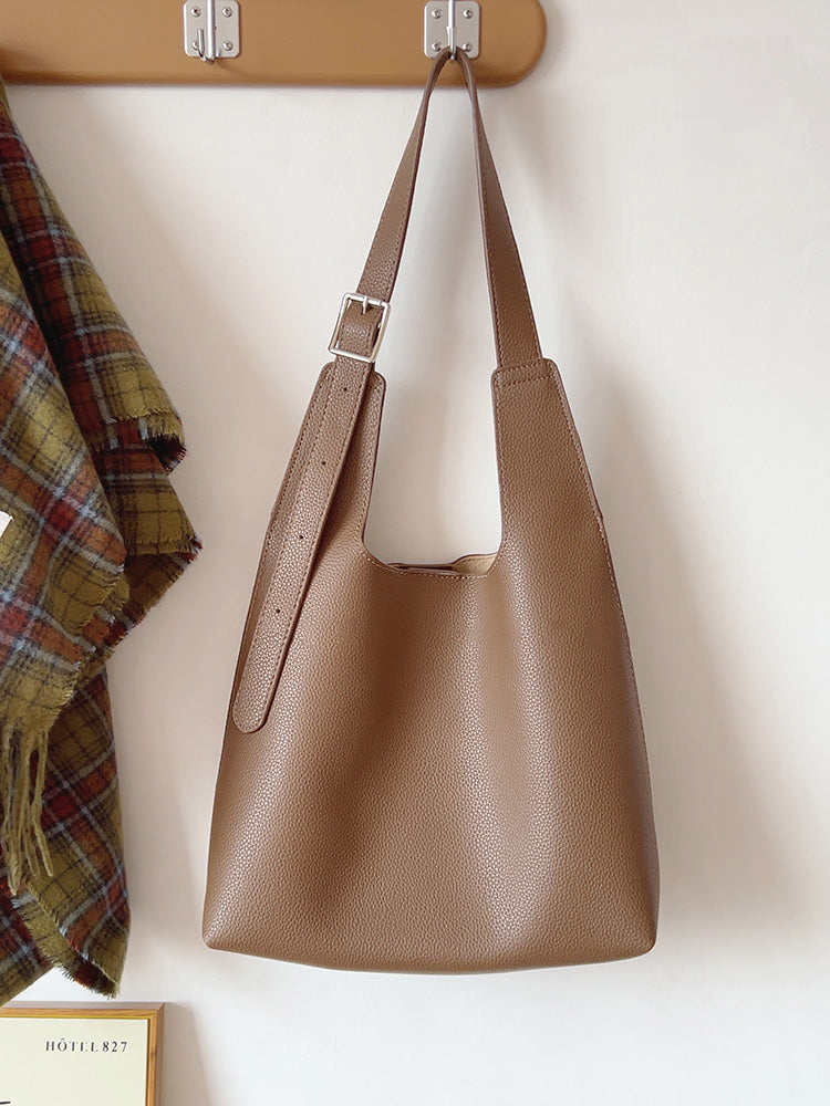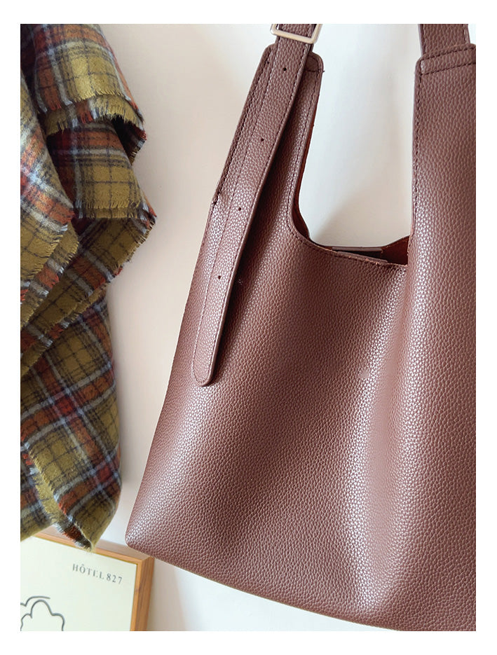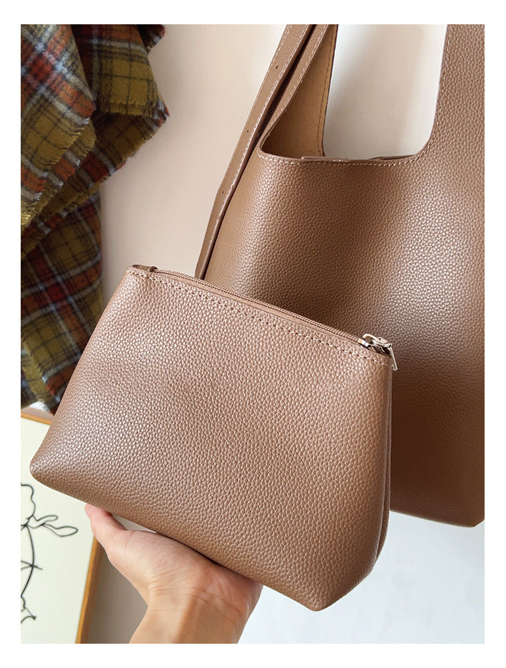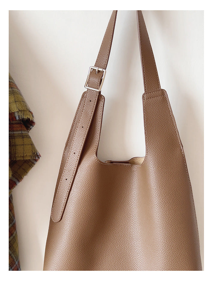 Leather Tote Bag with Shoulder Strap and Inner Pouch