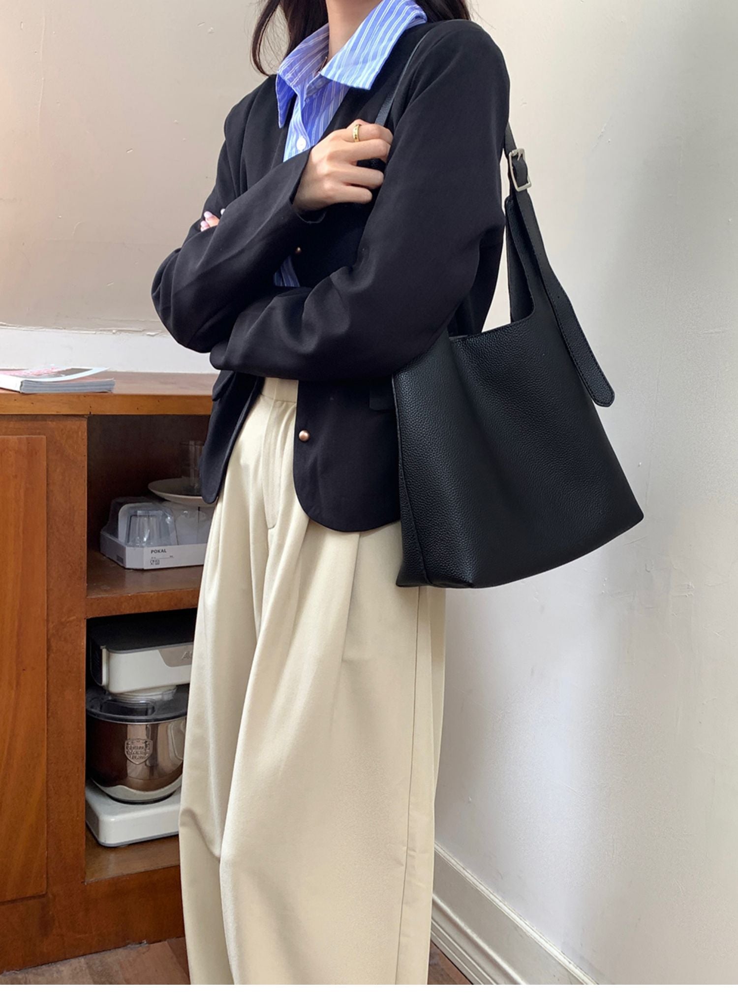 2024 new style. Simple leather tote bag.