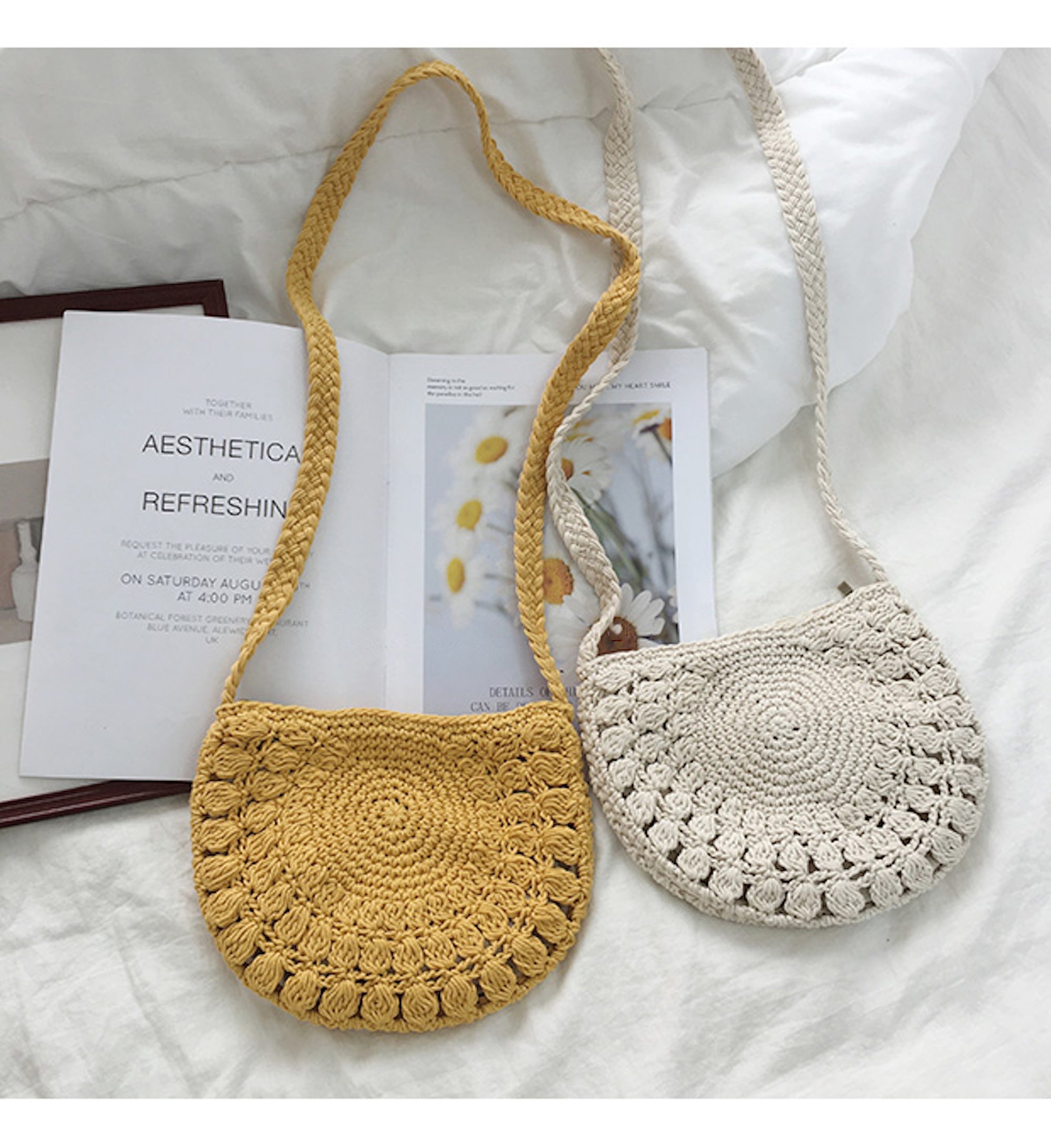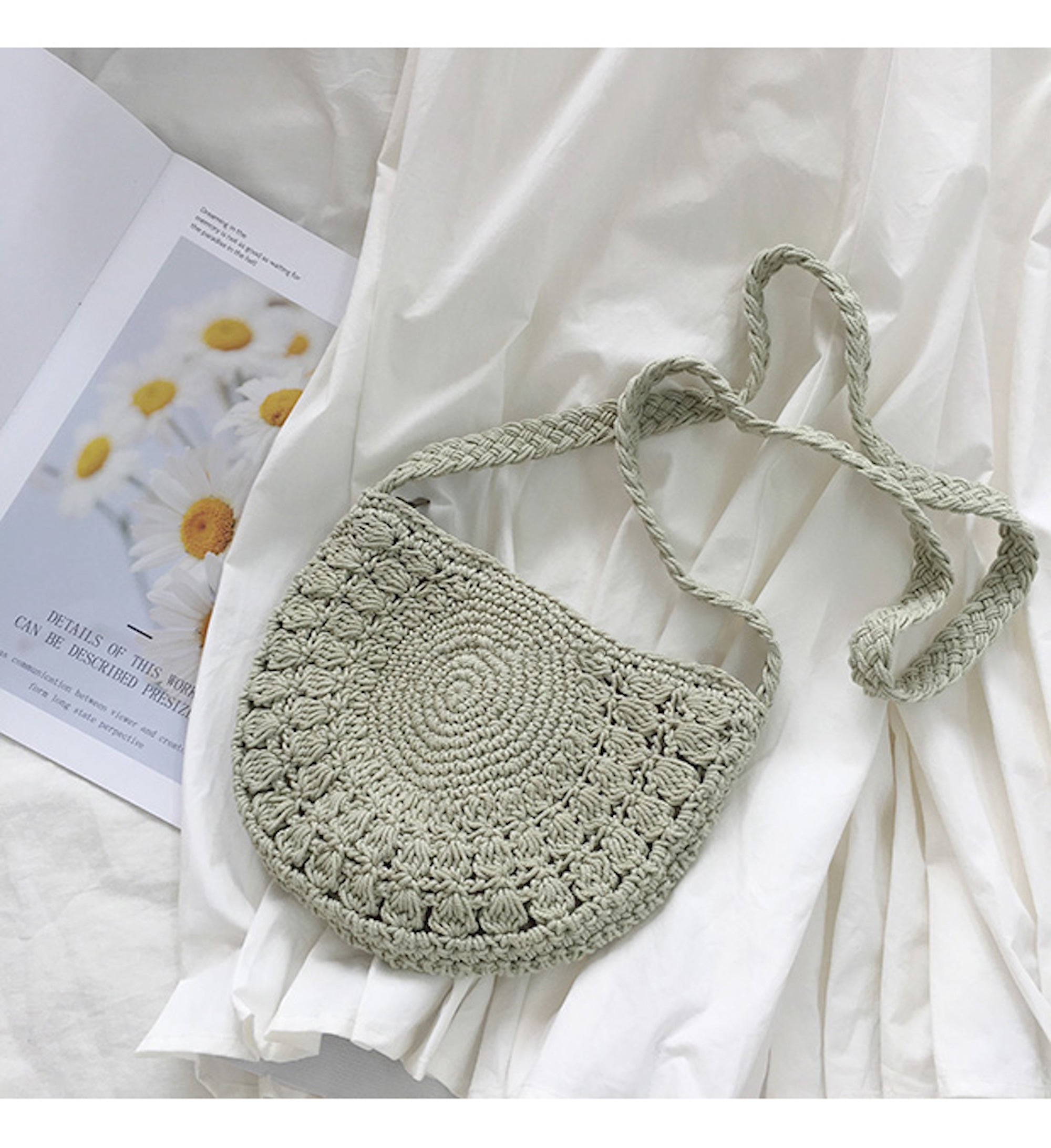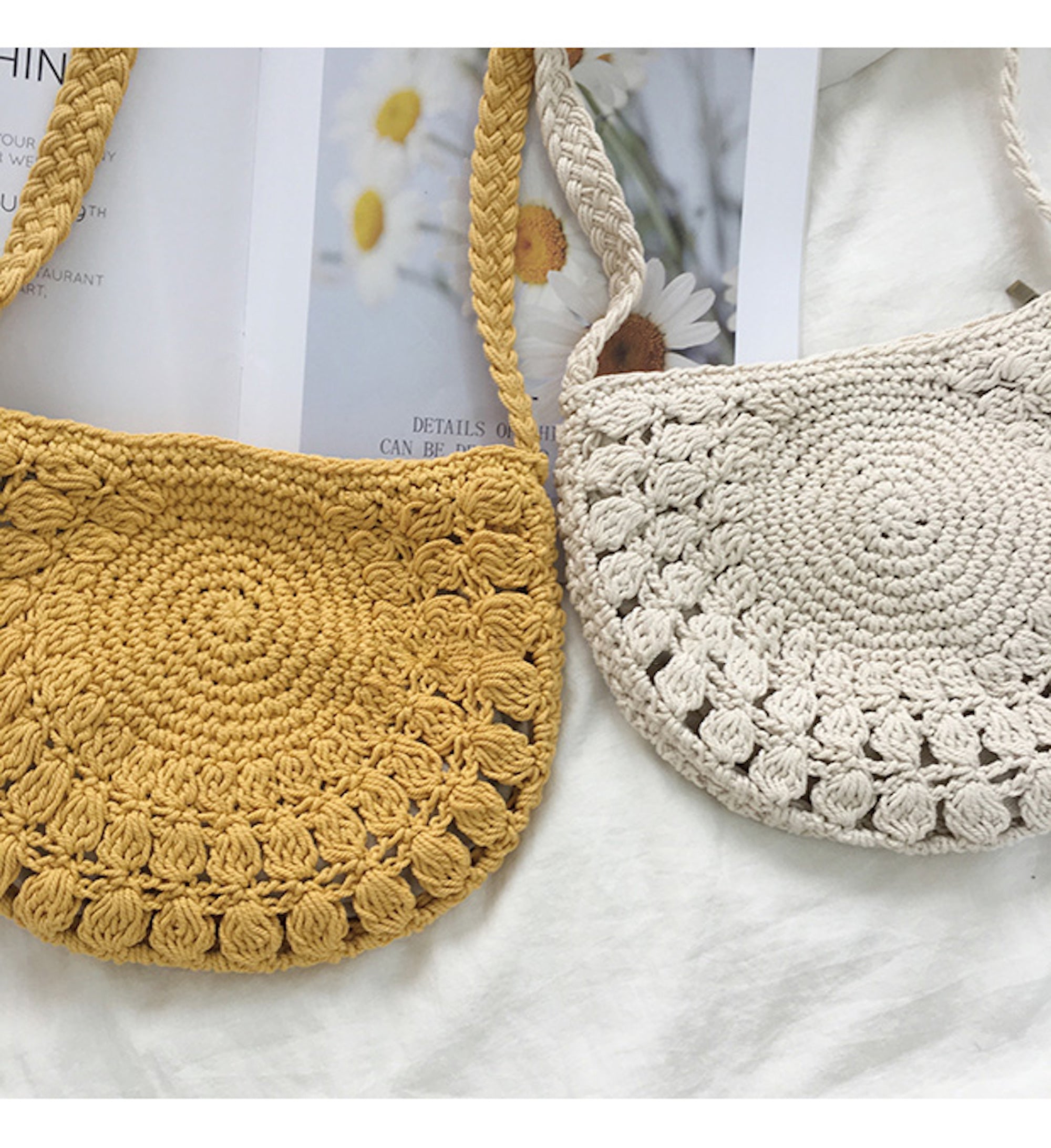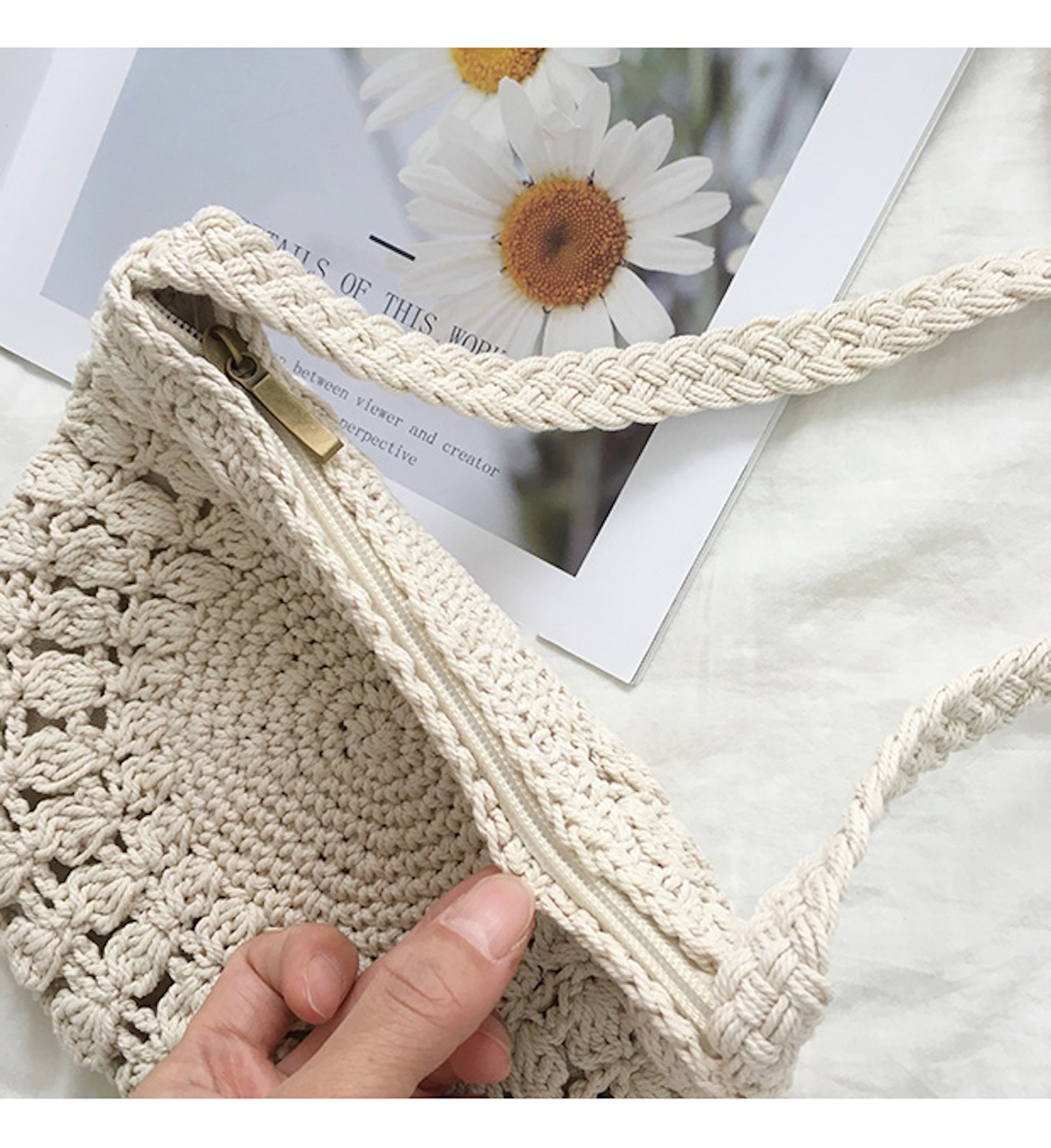Small Boho Cotton Knitted Shoulder Bag, Handmade Crochet Bag, Fashion Casual Bag, Gift for Her, Women's Woven Bag