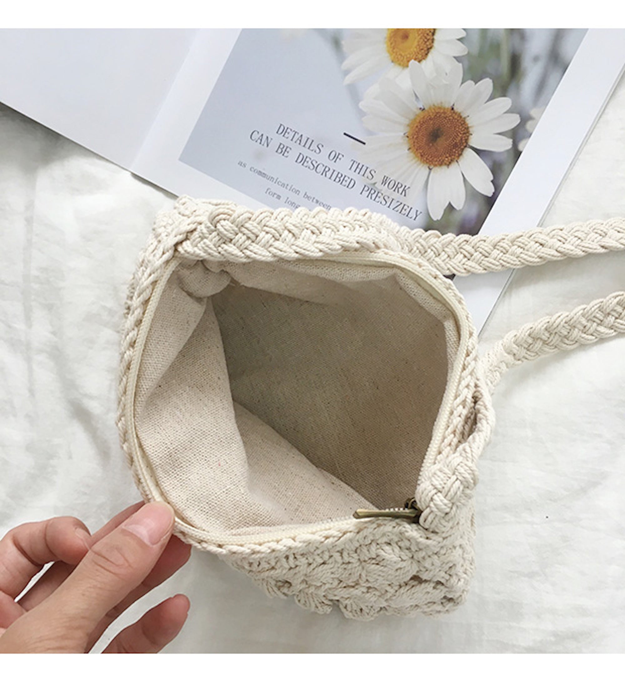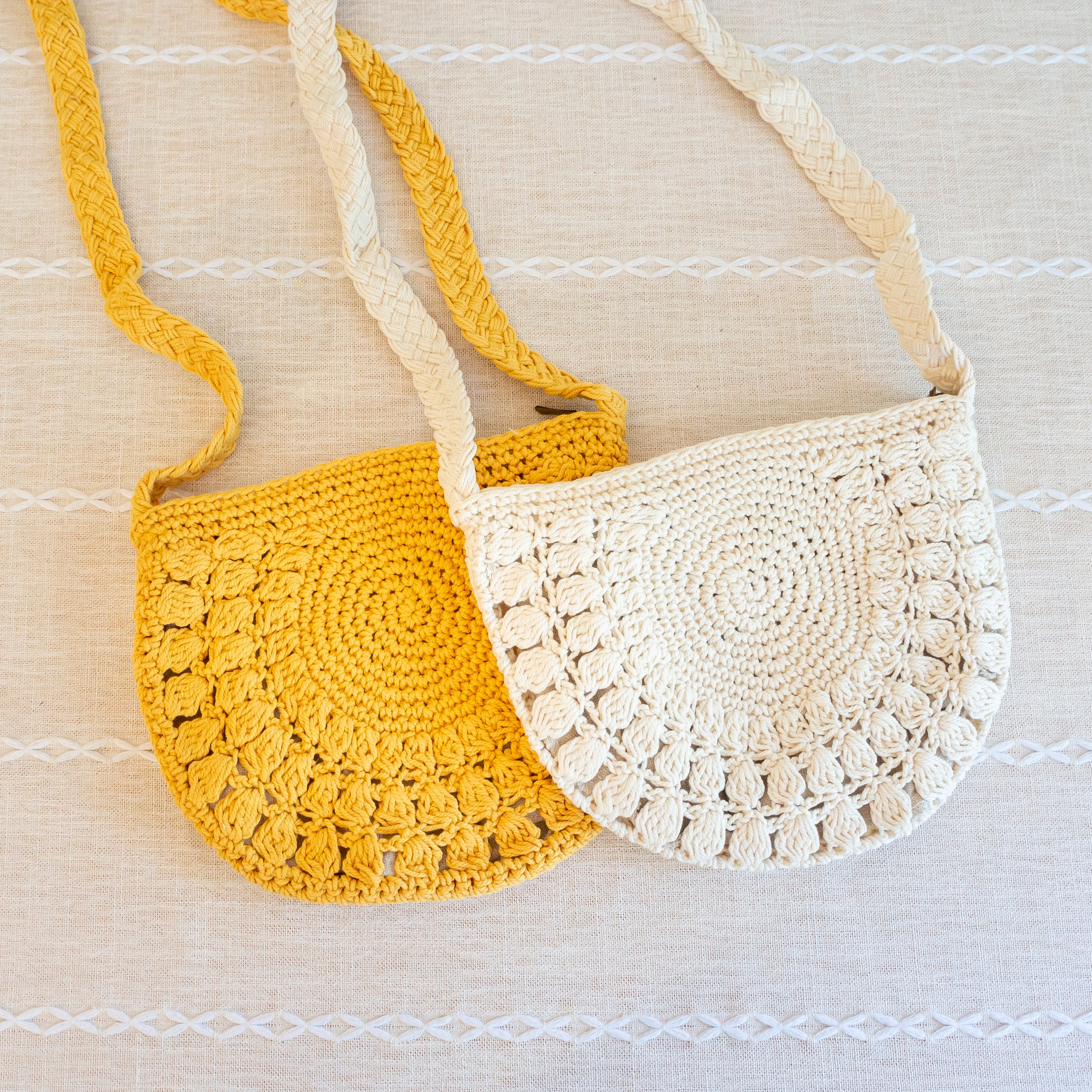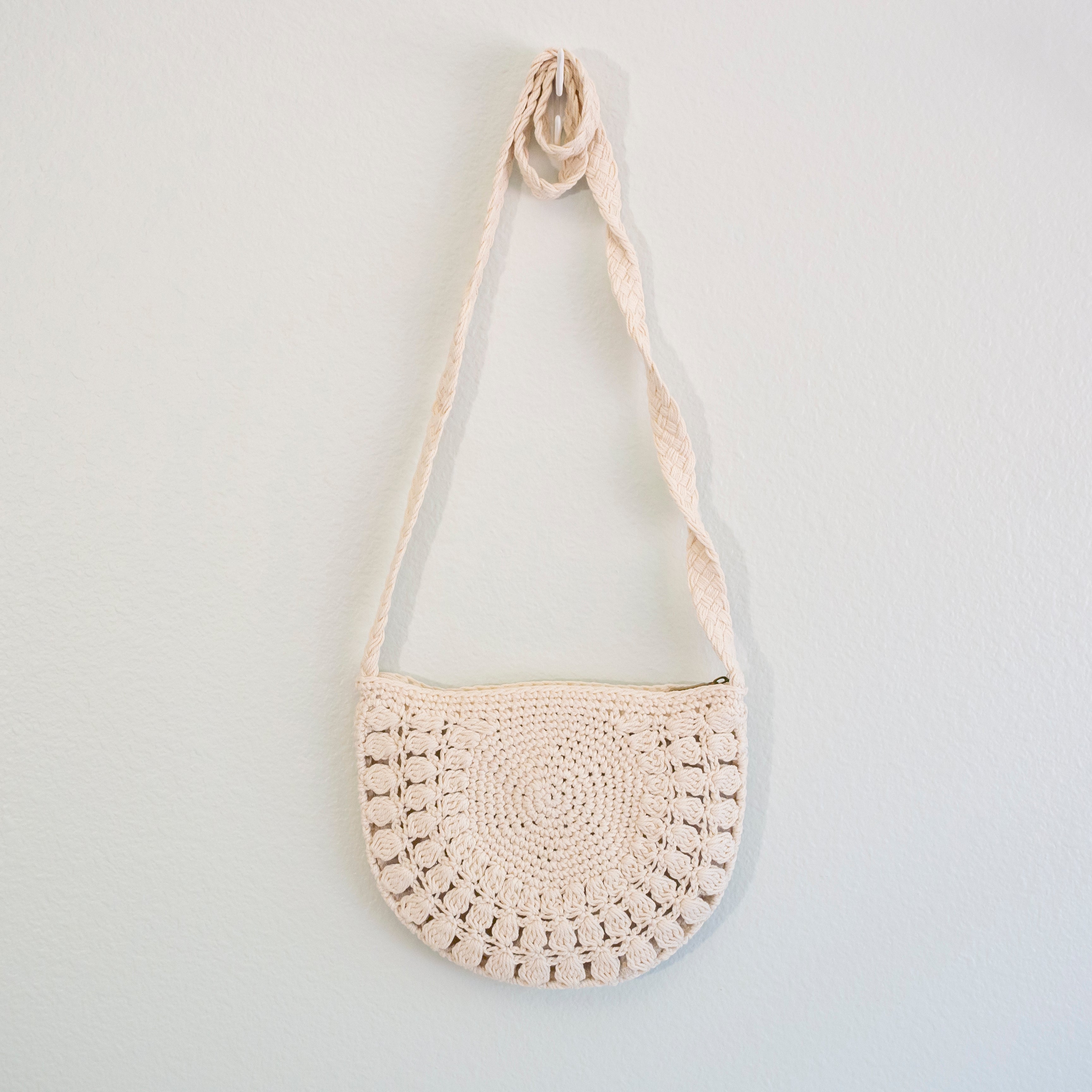 Handmade retro small everyday woven shoulder purse made with natural cotton.