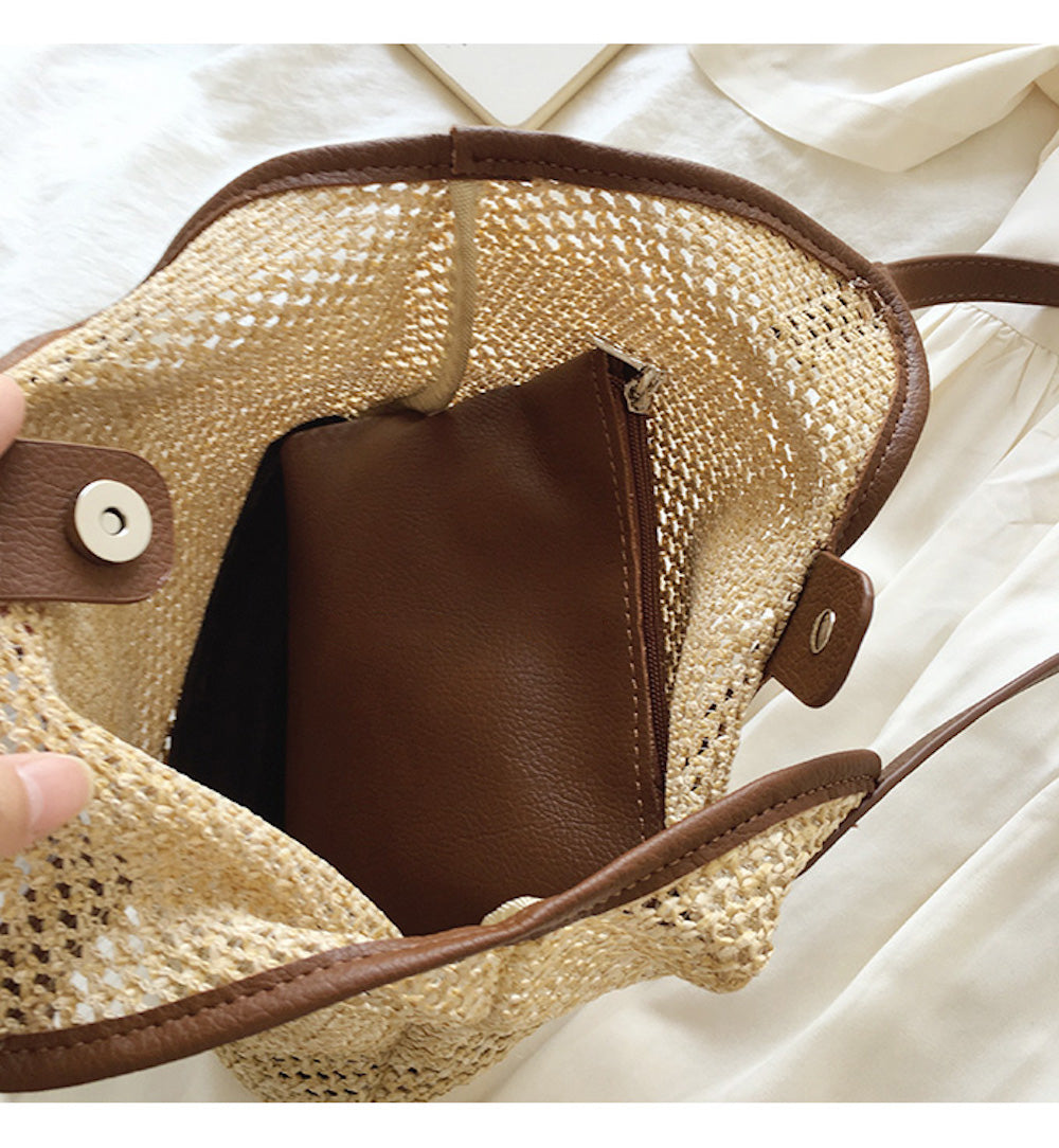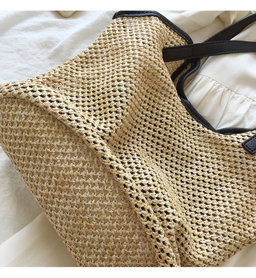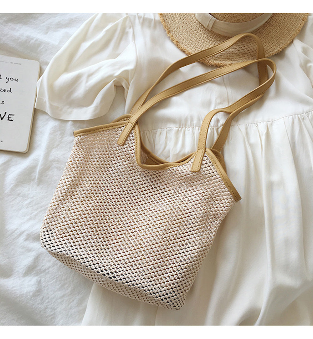 Straw Woven Fishnet Tote Bag with Inner Pouch, Retro Vibes, Summer Bag, Everyday Shoulder Bag, Beach Bag
