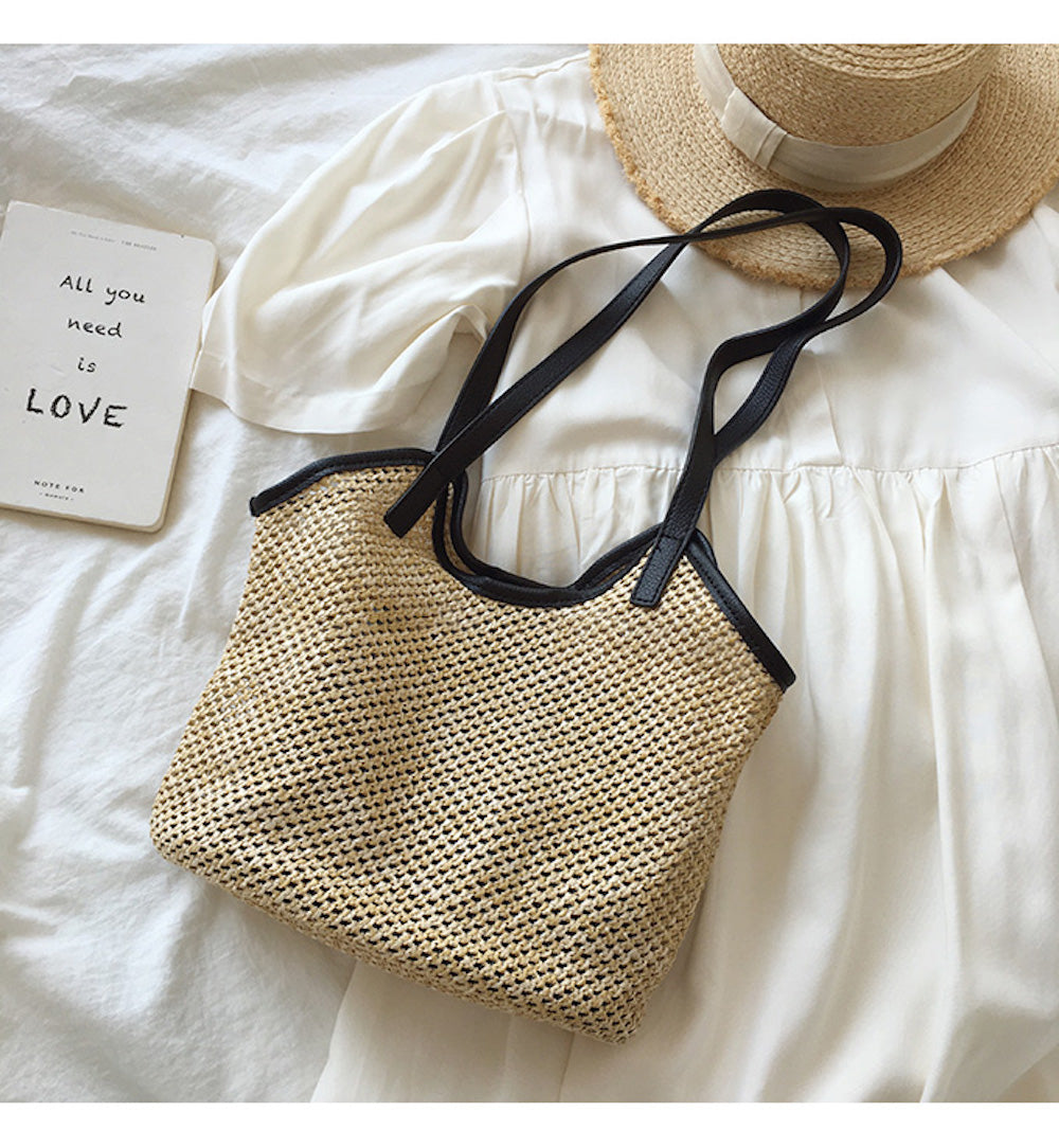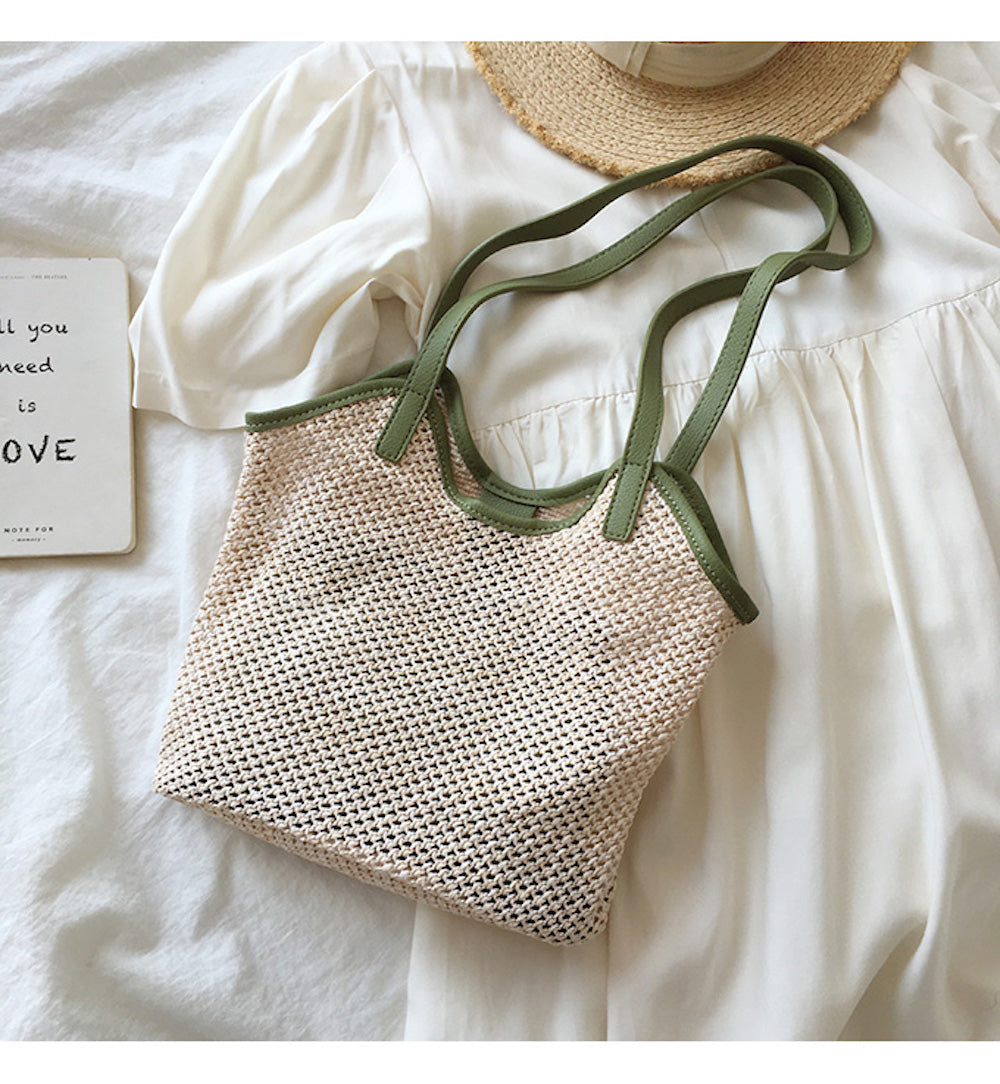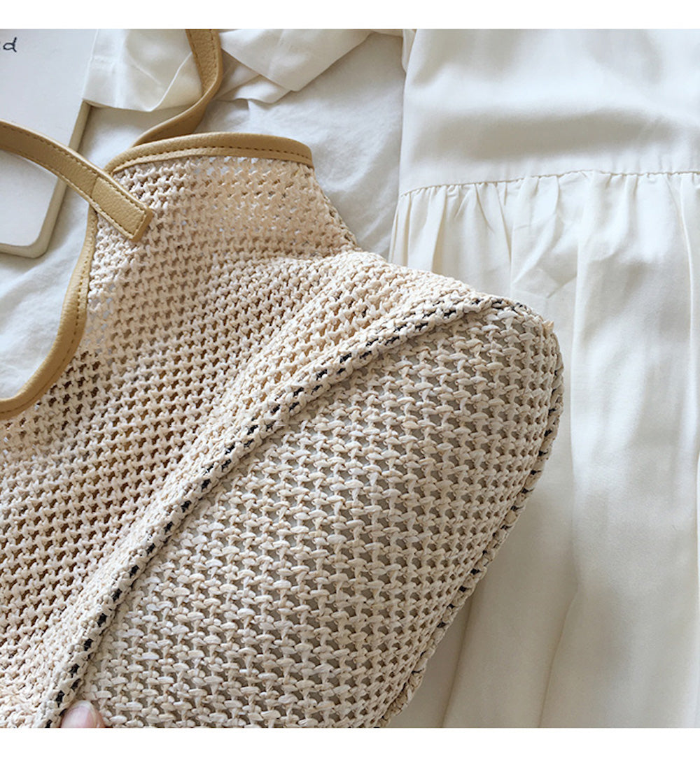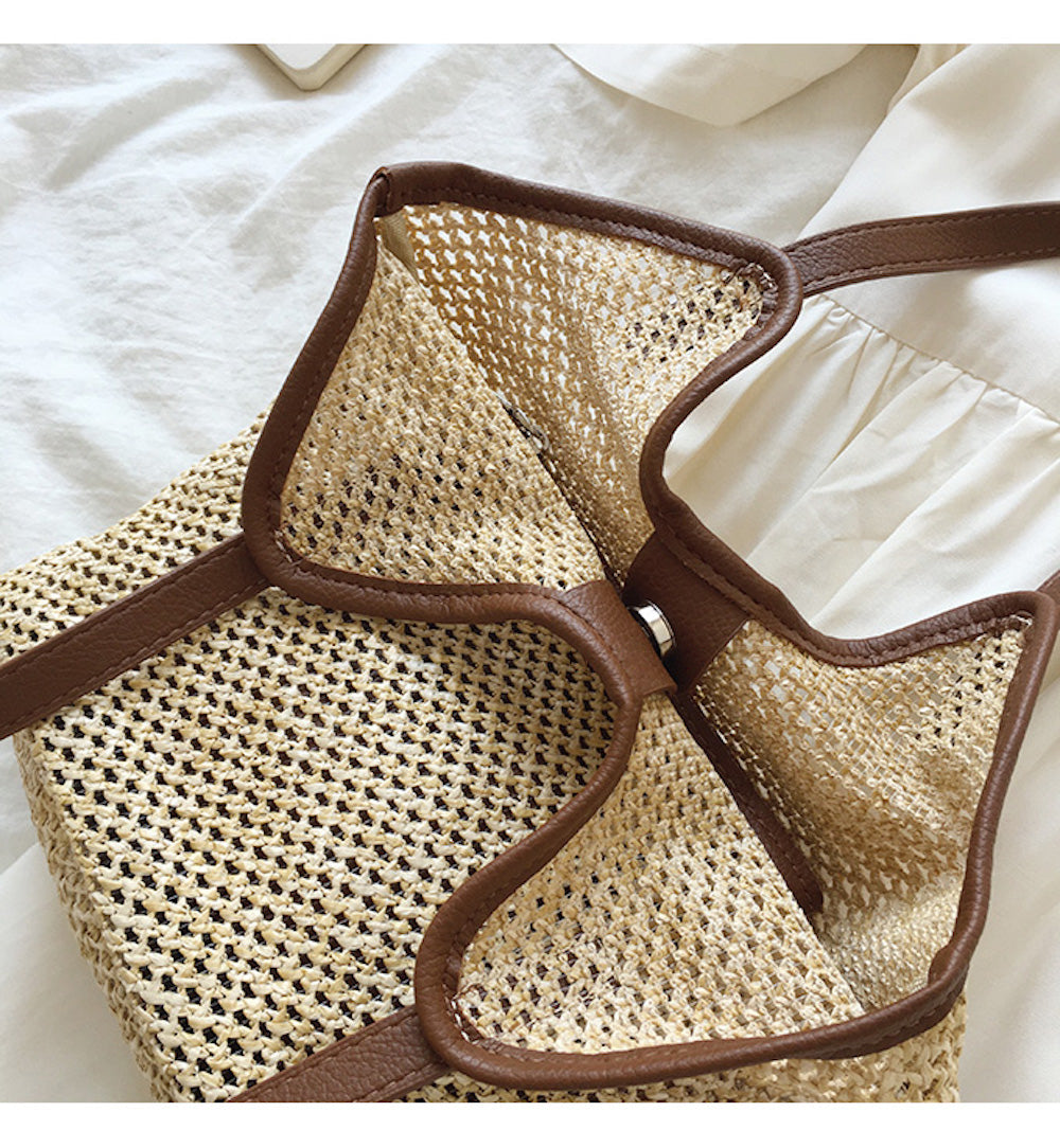 Straw Woven Fishnet Tote Bag with Inner Pouch, Retro Vibes, Summer Bag, Everyday Shoulder Bag, Beach Bag