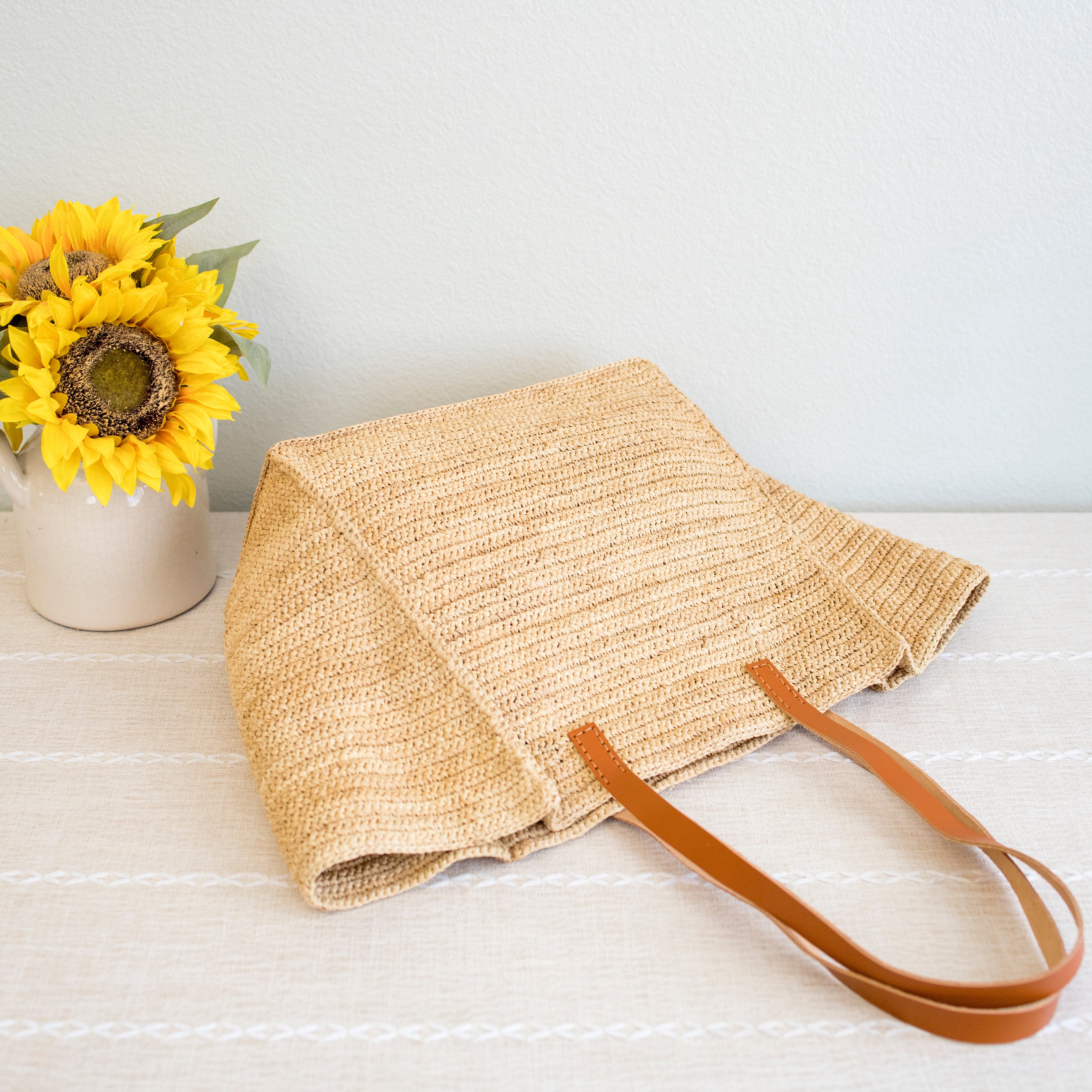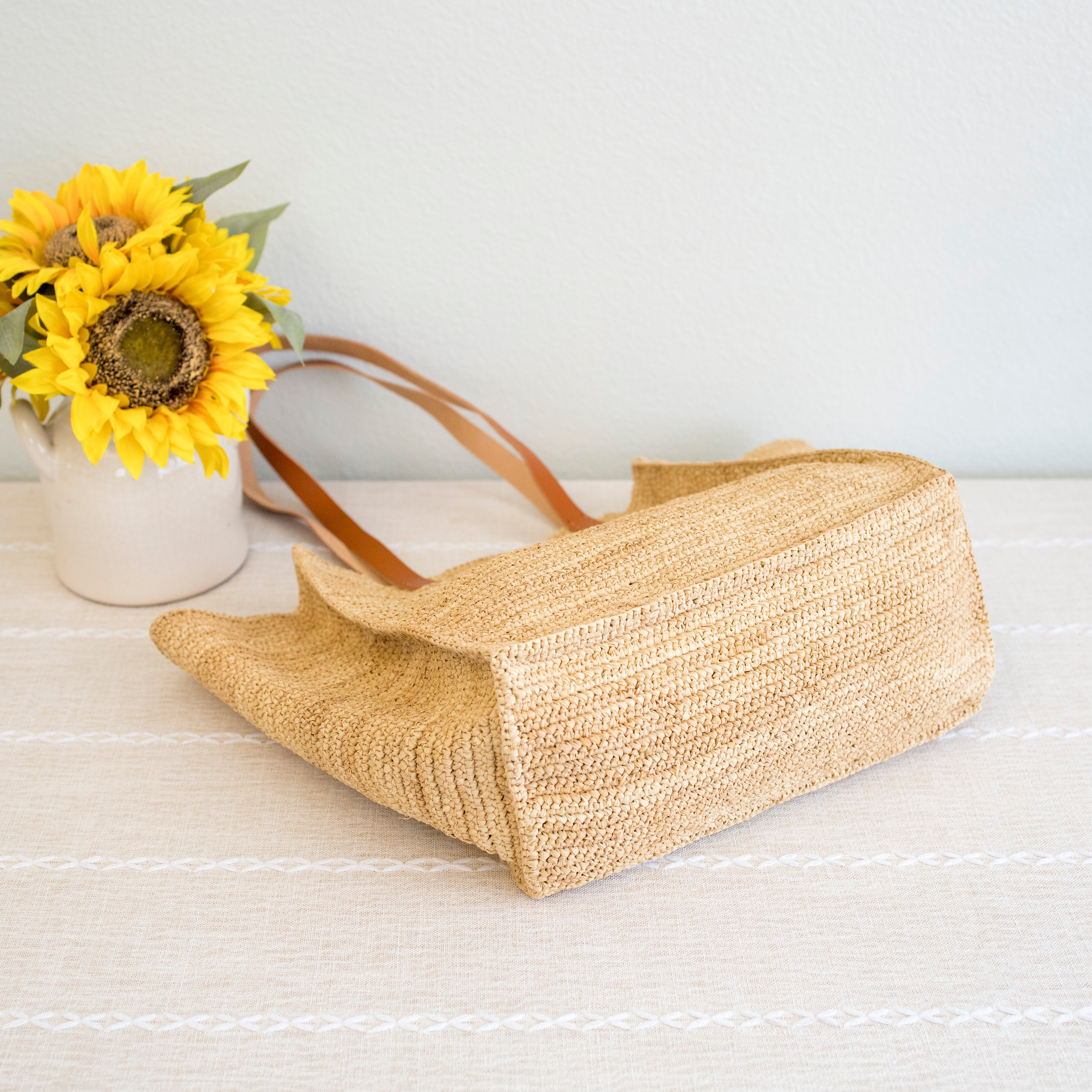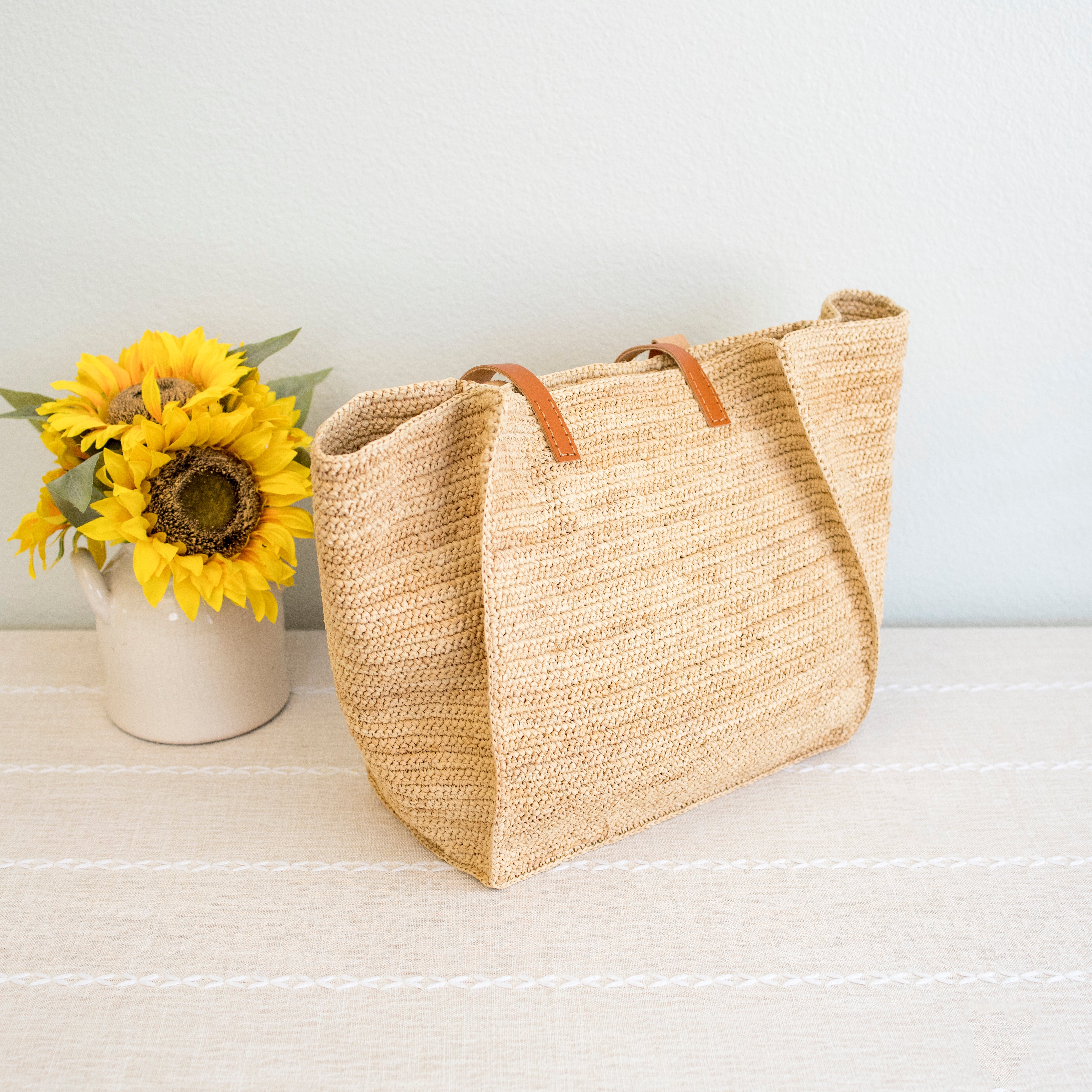 Chic large straw woven tote bag perfect for all occasions. This tote bag is sure to keep up with your busy lifestyle, providing a lightweight and durable design with a classic aesthetic. It’s the perfect way to stay organized while making a stylish statement. With this tote bag, you'll be ready to take on any adventure in style! Its lightweight and durable design holds up to any task while keeping your items organized. Stay on top of your game with its classic yet chic aesthetic.